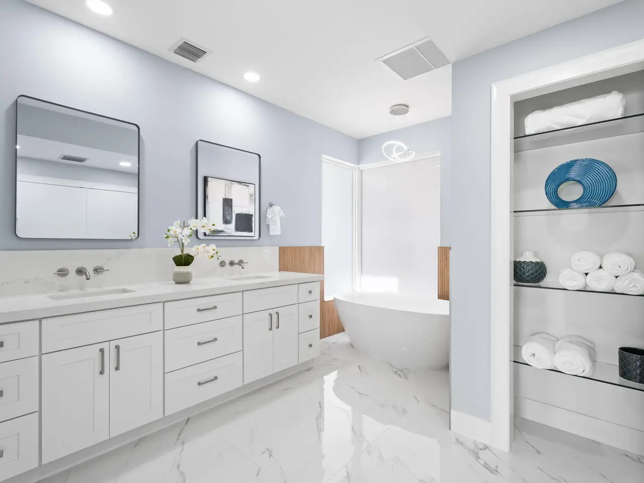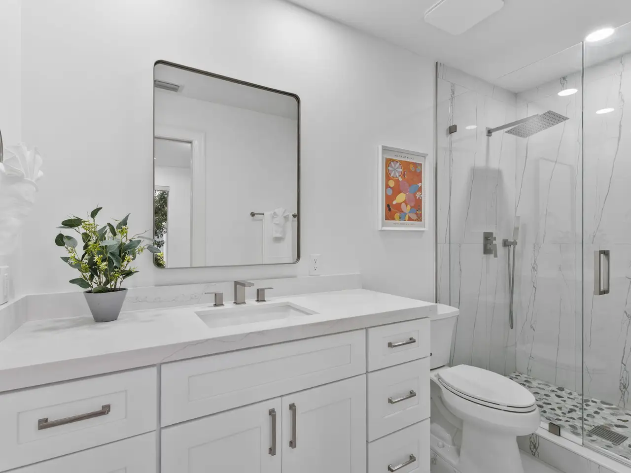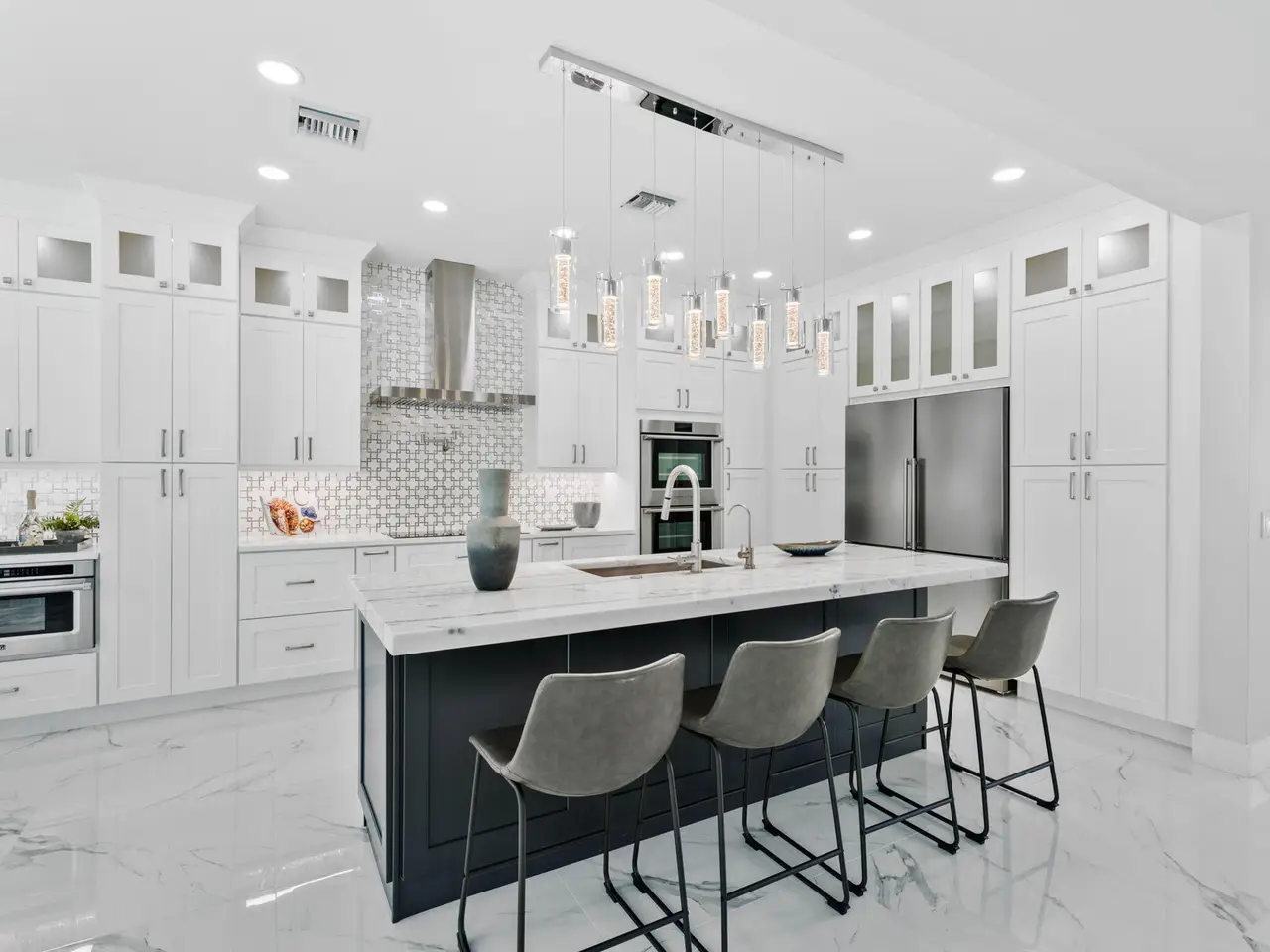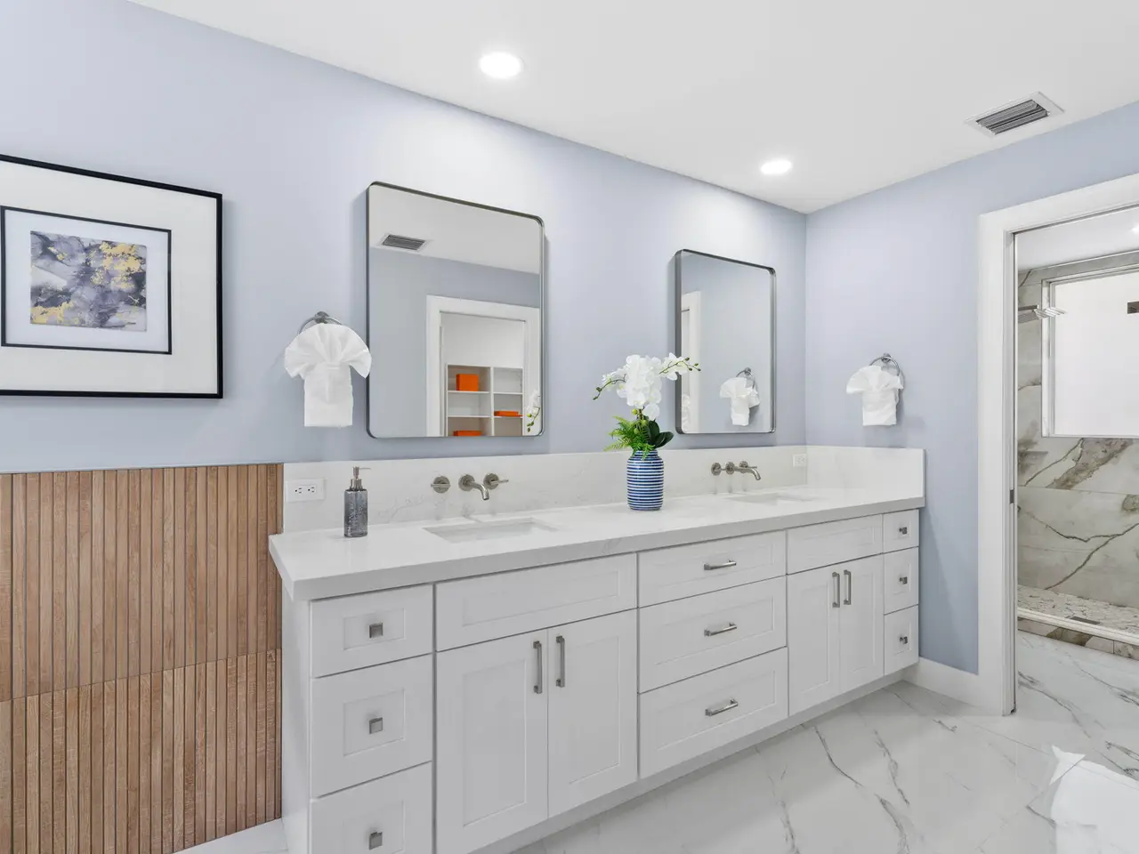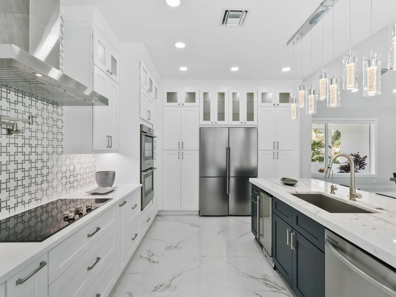 Masterfully modernized estate home in world-renowned PGA National. This stunning one-story CBS home spans over 3,800 sq. ft. of living space with 4 bedrooms & 4.5 baths. This residence features 2 large primary suites and a very private guest suite with its own entry & dry bar--perfect for in-laws or extended stays. Every detail has been upgraded: new roof, impact windows & doors, Lutron smart system, & imported porcelain floors from Spain throughout. The chef's kitchen includes double ovens, vented hood, standalone ice maker, & filtered water tap. All baths are newly redesigned with elegant finishes. Outside, enjoy a resurfaced pool, new heater, screen enclosure, & paver patio ideal for entertaining. This is your opportunity to live steps away from an internationally acclaimed golf resort.