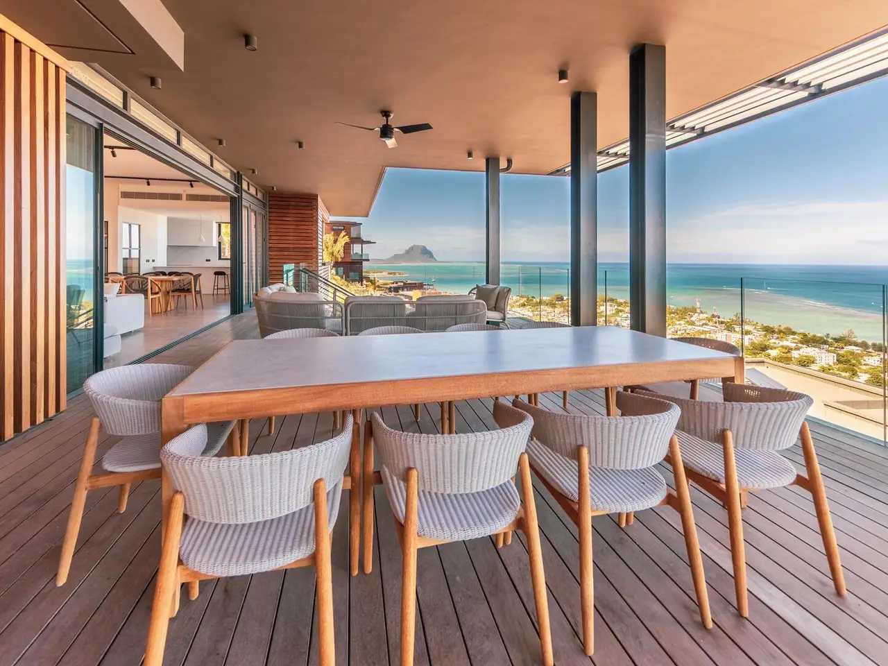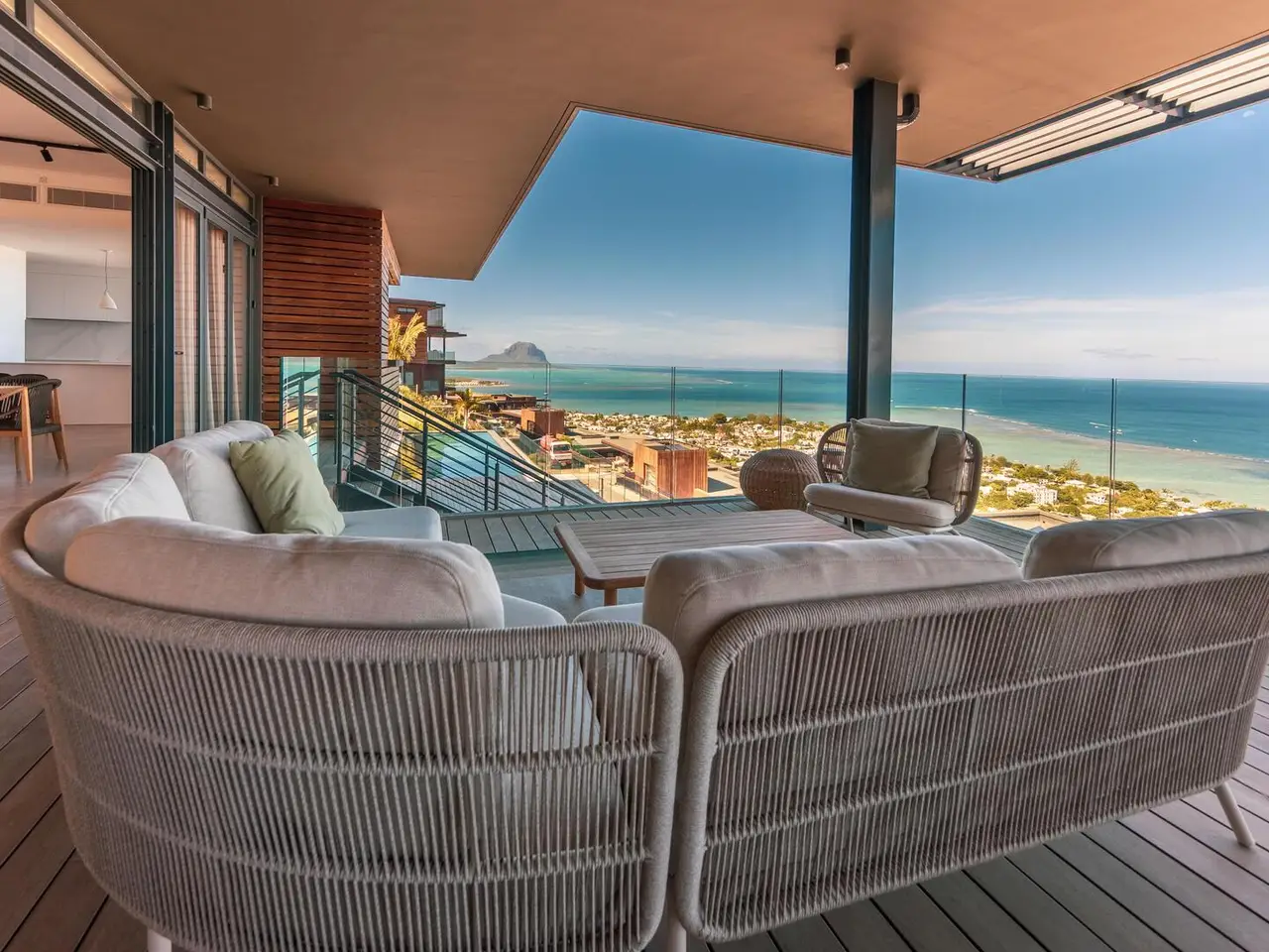 Perched high above Rivière Noire on the slopes of La Tourelle, Villa One stands as the crown jewel of the Legend Hill estate — a stunning architectural statement offering sweeping 180° views of the ocean lagoon, majestic mountain scenery, and complete privacy. Designed as a livable work of art, it delivers a rare blend of contemporary design, bold volumes, and immersion in nature, creating a truly incomparable lifestyle in one of the most prestigious settings in Mauritius. Bold Architecture, Infinite Horizon Villa One’s sleek design maximizes indoor-outdoor flow with full-height glazed facades, expansive living areas, and open terraces that dissolve into the breathtaking scenery. Every space is oriented to capture the natural beauty and draw in sunlight, air, and panoramic views. It features: A dramatic cathedral-ceiling living room, flooded with natural light, A designer open-plan kitchen, fitted with top-of-the-line appliances and a spacious scullery, A dining area that extends seamlessly to the covered terrace and pool deck, Elegant outdoor lounges perfect for entertaining, sunset dining, or tranquil relaxation. Exceptional Comfort and Bespoke Details Villa One is equipped with: 4 en suite bedrooms, each with private bathrooms, built-in wardrobes, and direct access to the garden or terrace, A magnificent master suite, more akin to a private apartment, featuring a private lounge, expansive dressing room, designer bathroom, and exclusive terrace with uninterrupted lagoon views, A long infinity pool with a hardwood deck and lounge area, A private landscaped garden, harmoniously integrated into the hillside, Central air conditioning, a wine cellar, laundry room, and secure parking. Every detail is curated for luxurious comfort, elegance, and serene living. 5-Star Resort Lifestyle, At Your Doorstep As a resident of Villa One, you enjoy full access to the exclusive 5-star resort services of Legend Hill: A Michelin-starred fine dining restaurant and relaxed bistronomic eatery, A panoramic lounge bar facing the ocean, The Salin de Biosel spa, wellness center, and gym, Dedicated concierge, in-villa dining, daily housekeeping, and 24/7 security. A Rare and Refined Island Home Villa One is the pinnacle of island living—a private, refined, and architecturally striking residence that delivers a lifestyle of peace, prestige, and beauty. It is a one-of-a-kind villa for those who seek excellence, freedom, and distinction in one of Mauritius’ most extraordinary settings.