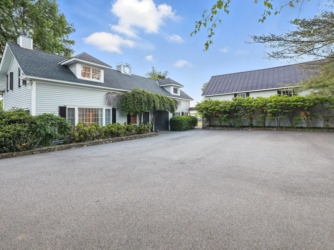 Longhouse Farm, a beautifully restored farmhouse with many designer upgrades, is absolutely breathtaking! Its 11+ acres of scenic beauty, historic elegance, and luxurious modern amenities, make it the perfect blend of sophistication and tranquility. This equestrian estate consists of the main house, a guest house, a 9-stall barn, 4 stall run-in overlooking a fountained pond and trout-fed stream, which all add a wonderful touch for those who appreciate country living. Plus, with the chef's kitchen that includes: a 6-burner LeCornue range, a Sub-Zero refrigerator, a huge quartz top island with a second sink, dual Bosch dishwashers, Miele espresso machine, and wine cooler, as well as the many beautiful spaces like the conservatory and library, make it an entertainers dream home for anyone who loves comfort and style. The newly built Hamptons-style heated pool with a pergola is incredible for entertaining or simply unwinding. And the wrap-around deck is perfect for taking in the sunsets. All of the window treatments are custom-made. There are fenced pastures in a bucolic setting. This amazing property was featured in Mansion Global and Cottages & Gardens. The proximity to NYC makes it even more desirable for a peaceful year-round getaway without being too far from the city.