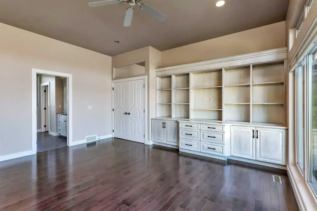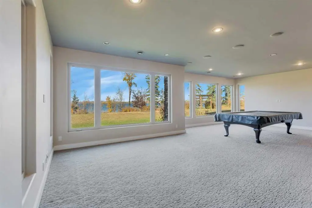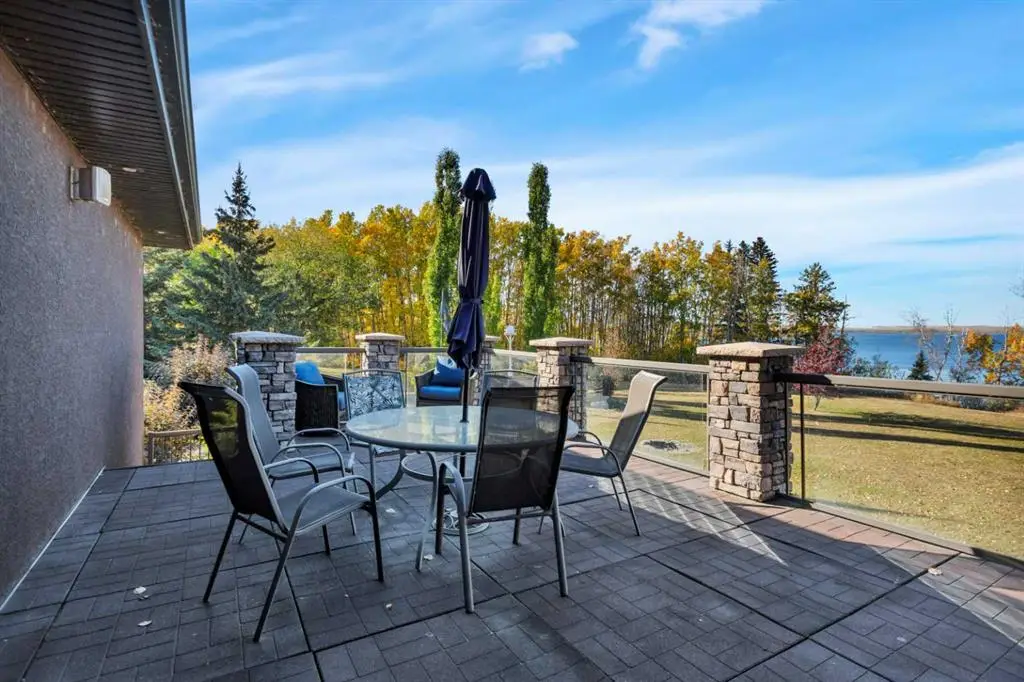 A rare opportunity to own an exceptional lakefront estate on 74 acres of prime Alberta countryside. This prestigious walkout bungalow offers an unmatched blend of luxury, privacy, and natural beauty, all with Riparian water rights. Located on 22108 Township Road 392 in Lacombe County, this residence exudes timeless elegance with custom finishes and breathtaking lake views throughout. Step inside to a chef-inspired kitchen, complete with granite countertops, custom cabinetry, and a layout designed for both daily living and entertaining. The expansive living room features coffered ceilings, a grand marble-faced fireplace, and floor-to-ceiling windows that showcase unobstructed water views. The primary retreat is a sanctuary of its own, with built-in cabinetry, panoramic lake-facing windows, a spa-inspired ensuite with walk-in shower, and an impressive walk-in dressing room. The lower level is built for entertaining, boasting a wet bar, spacious family room, and walk-out access to a covered patio, creating seamless indoor-outdoor living. Three large bedrooms downstairs offer comfort and scenic views. A bonus guest suite above the garage adds flexibility and privacy for visitors. The property includes a second home (not part of the listing) and is currently undergoing boundary adjustments, with new legal registration forthcoming. Whether you're dreaming of a private retreat, family estate, or a legacy property, this vacant, ready-for-viewing home offers unparalleled lifestyle potential.