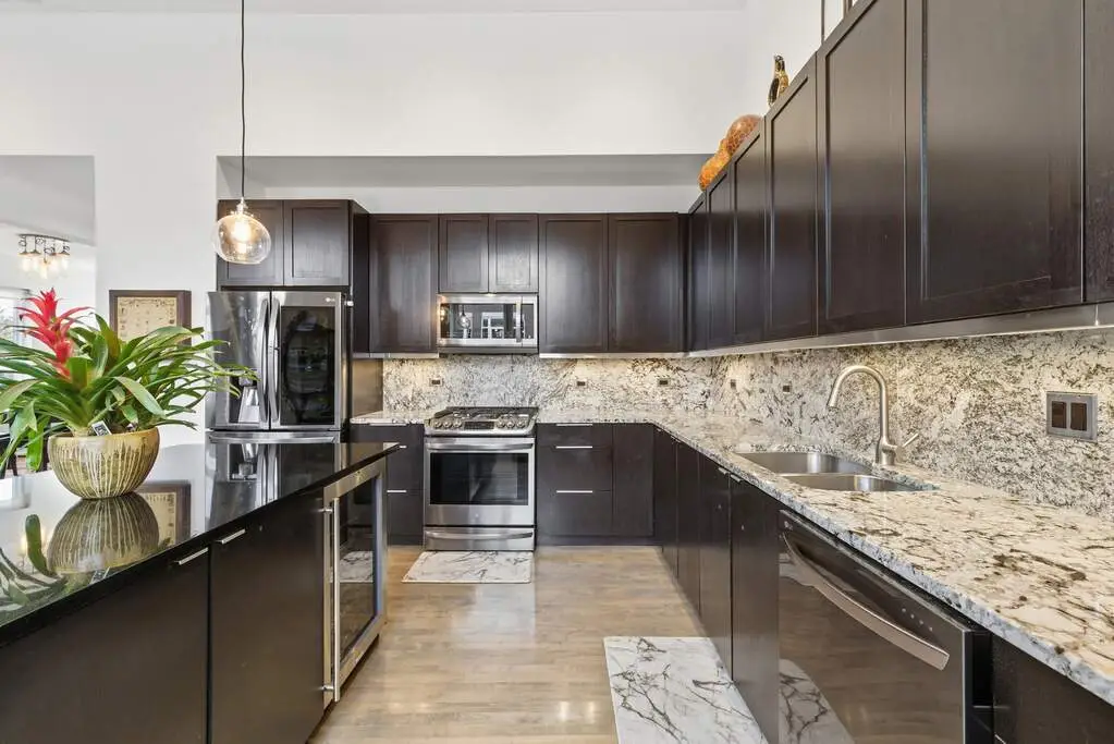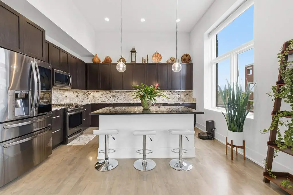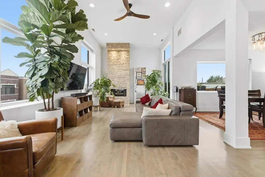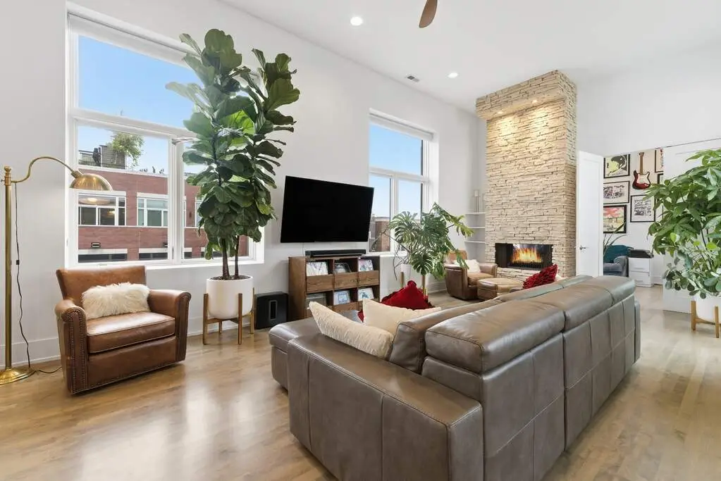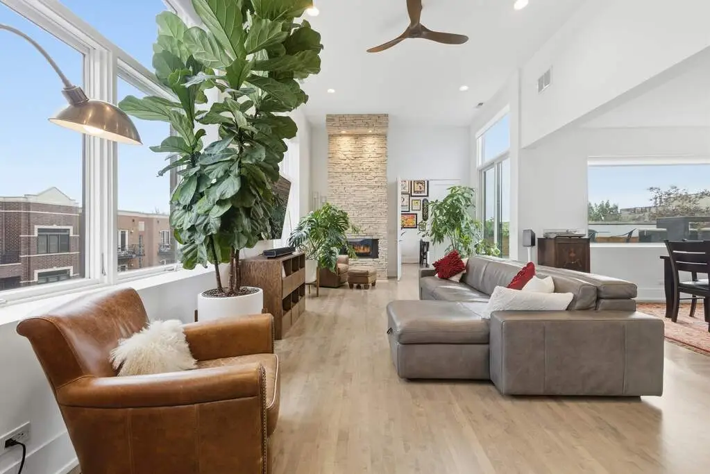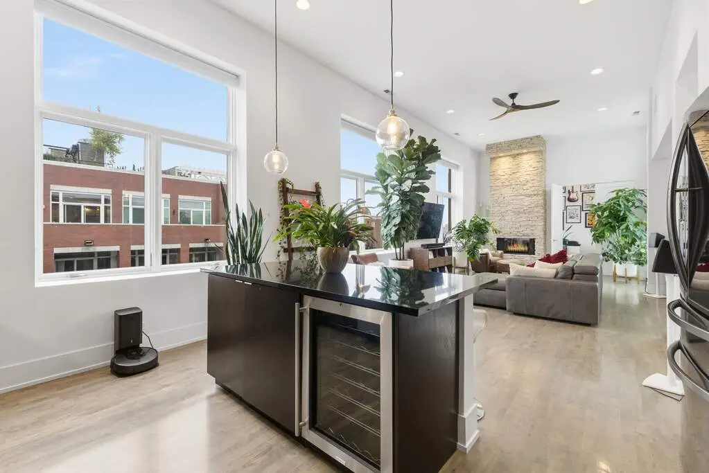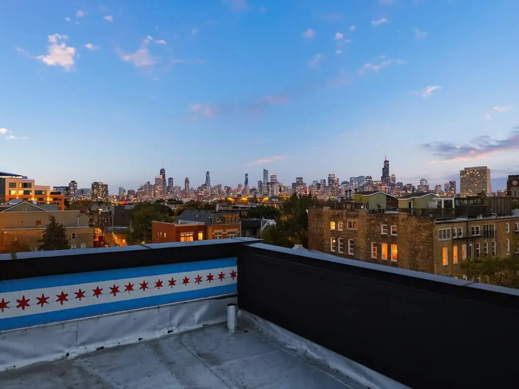 Sun 11/16 Yours Cancelled!! Don't miss this extraordinary full-floor 2 bedroom plus office/den/potential 3rd bedroom, 2 bathroom penthouse in the heart of Wicker Park/Bucktown. This chic boutique building offers easy elevator access directly into your unit and the most incredible skyline views! The wide, open concept floor plan is flooded with natural light, featuring 12'+ ceilings, hardwood floors, updated moldings, and so much more. The designer kitchen has granite countertops, a huge island with stainless steel appliances, a wine fridge, and opens up to the large living room with an incredible floor-to-ceiling fireplace and separate dining room with stunning views. Access to the 745 sqft private roof deck is available through 2 separate doors allowing for easy indoor/outdoor living from your main living area. Relax under the beautiful pergola and enjoy the composite decking and built in planter boxes while you take in the fabulous views of the city skyline. Plus you get a second upper rooftop deck displaying even more exceptional views. Retreat indoors to the generously sized main bedroom equipped with a walk-in closet with custom organizers, a private balcony and an en-suite main bathroom with custom tile work, a steam shower and a whirlpool tub. A second bedroom and newly renovated bathroom completes this perfect package. This amazing penthouse includes an attached 2-car garage plus additional tandem spots. Truly a rare find in a fabulous location - just steps from North/Damen, many restaurants and nightlife, public transportation and 90/94.