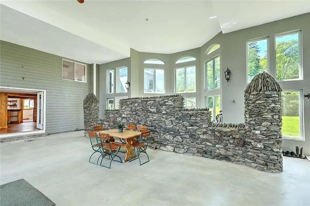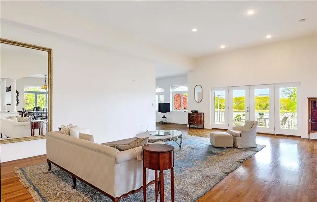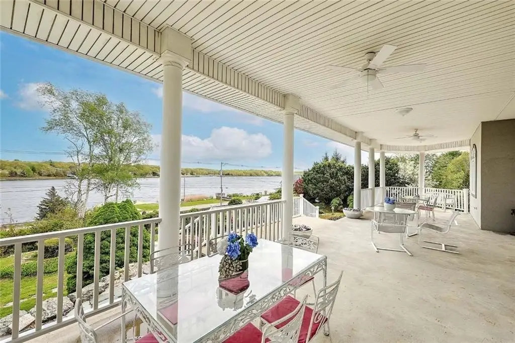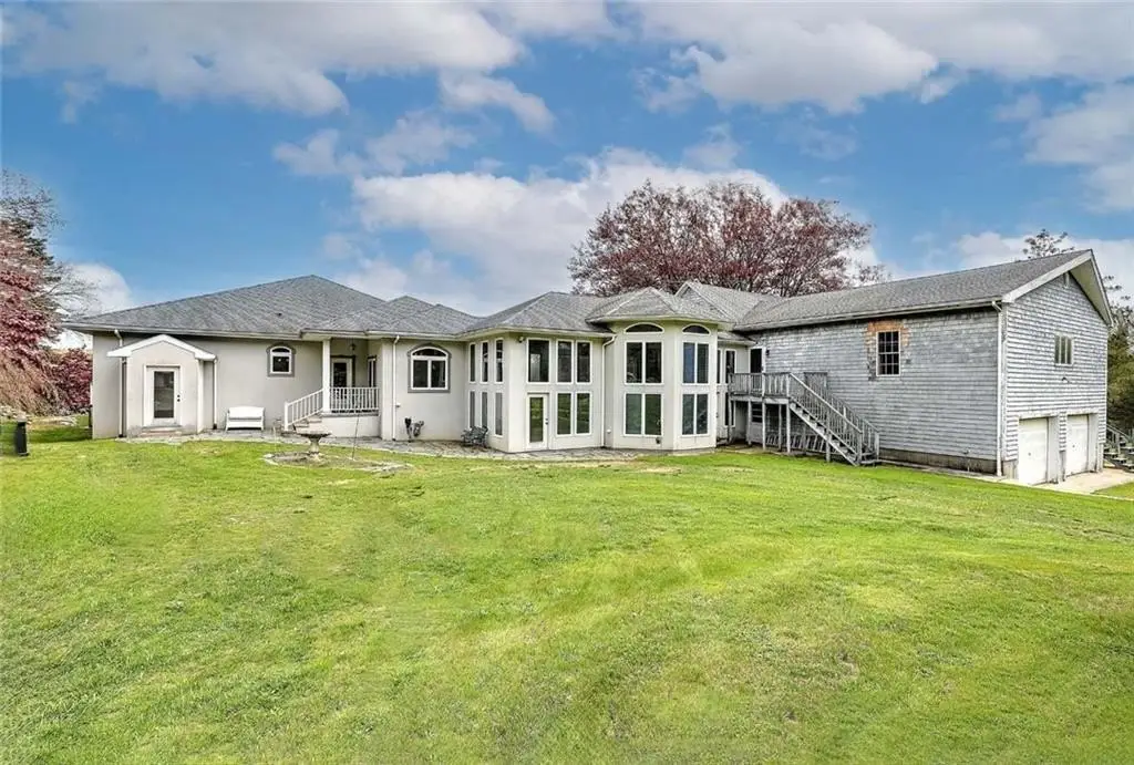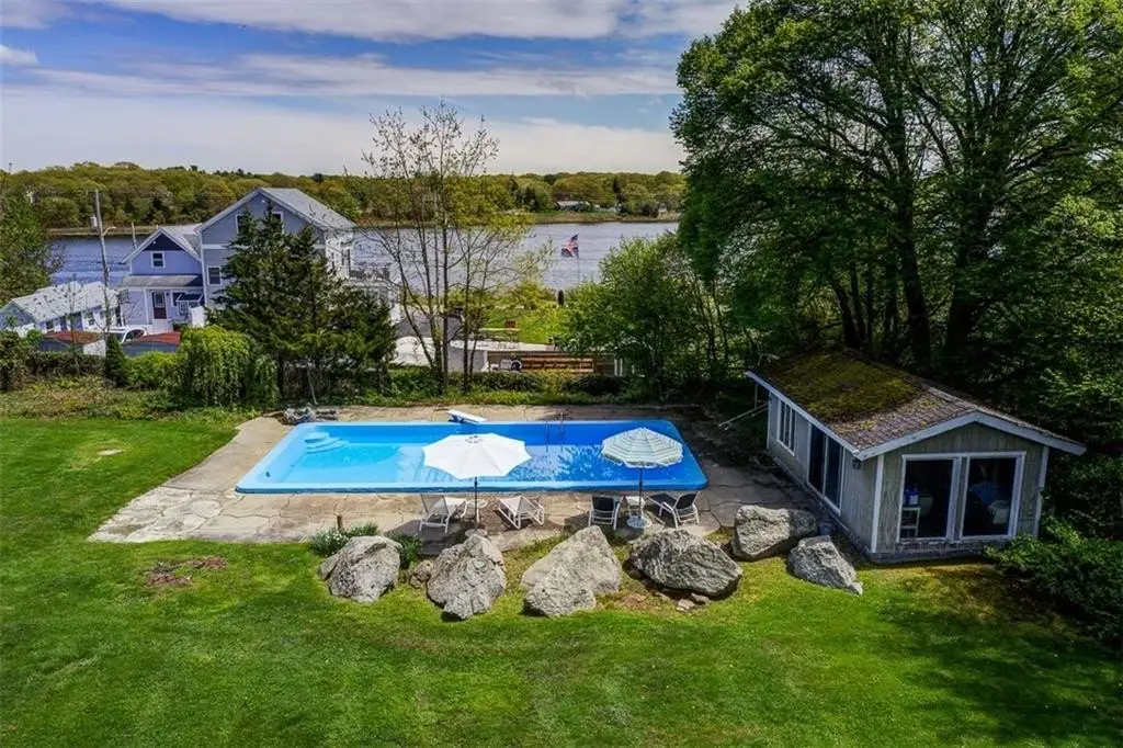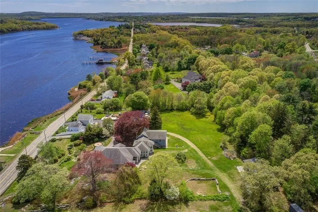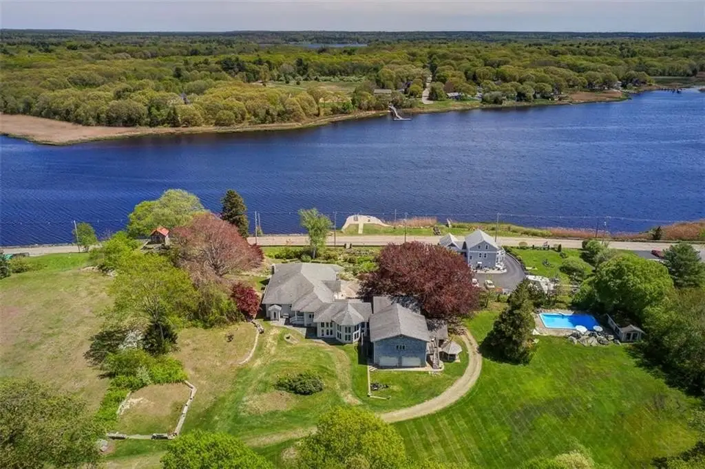 Perched on 3.8 acres of direct waterfront, this magnificent home blends privacy, natural beauty and comfort! Soaring ceilings, panoramic vistas and open-concept layout radiate warmth and sophistication. This retreat has added beauty of a historic stone gazebo with river views as well! Inground pool, four garage spaces for the car collector and stunning copper beech trees lining the property are just a few of the many surprises found truly making this a hidden gem! Direct river access to your private pier with deep water dock further sets this property apart from most! Swim, fish, boat or cruise to waterfront dining is awaiting the new Buyers! The acreage lends itself to accommodating large family gatherings, class reunions or even wedding venues!! Though it feels worlds away, this property offers quick access to Boston via the newly extended commuter rail, Providence and Cape Cod ... a rare mix of peaceful, WATERFRONT seclusion and metropolitan living!