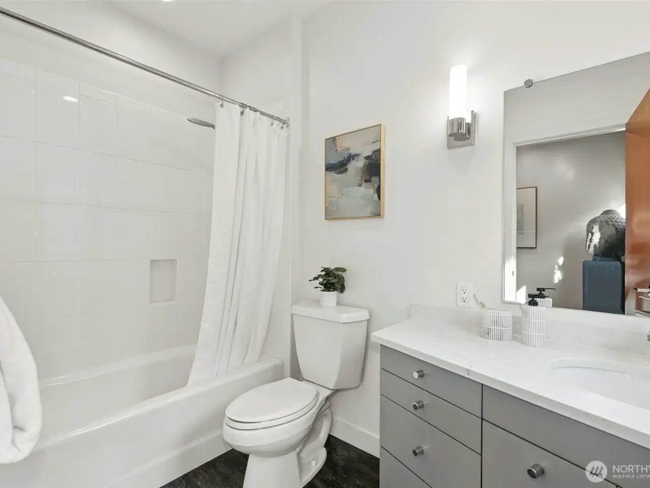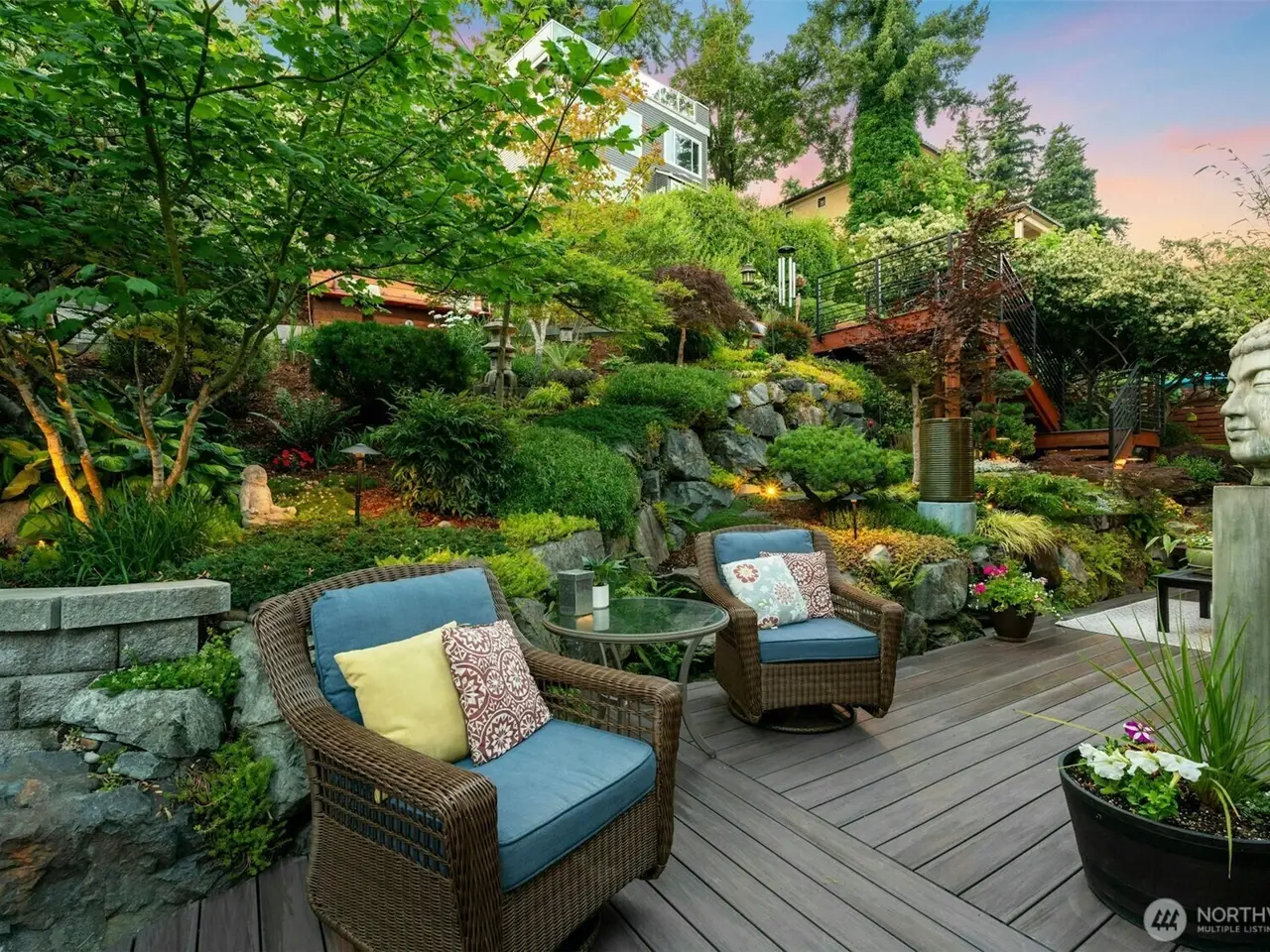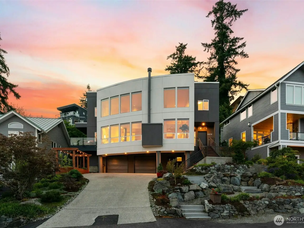 Architecturally stunning immaculate contemporary sitting above Juanita Bay with spectacular views of Mount Rainier, Bellevue skyline, and the sparkling waters of Lake Washington! Built in 1997, this newly updated 3,290 square foot, 4 bedroom, 2.5 bathroom home features a magnificent 2 story living room with soaring ceilings & walls of glass framing the lake & mountain views beyond. Light-filled chef’s kitchen with new quartz counters & designer backsplash, new high-end stainless steel appliances, walk-in pantry, and wet bar. Elegant dining room flows out onto the view deck & path to the backyard, perfect for entertaining! Sophisticated primary bedroom with magnificent views, private balcony, walk-in closet & 5-piece bath. Lower level features a bonus room / gym, oversized second pantry, and 2-car garage with ample storage. Professionally landscaped backyard with spacious deck & walking path to multiple built-in seating areas, all surrounded by lush & mature plantings. Completed this year, the meticulous updates include new carpet throughout, interior & exterior paint, new bathroom sinks, counters & fixtures, and completely reimagined landscape design. Near perfect location, just steps from Juanita Bay Park and vibrant Juanita Village, 5 minutes to downtown Kirkland’s eclectic shops and restaurants and I-405. With mesmerizing southerly views of Mount Rainier, rose colored sunrises, golden sunsets and never-ending maritime performances, don’t miss this incredible opportunity!