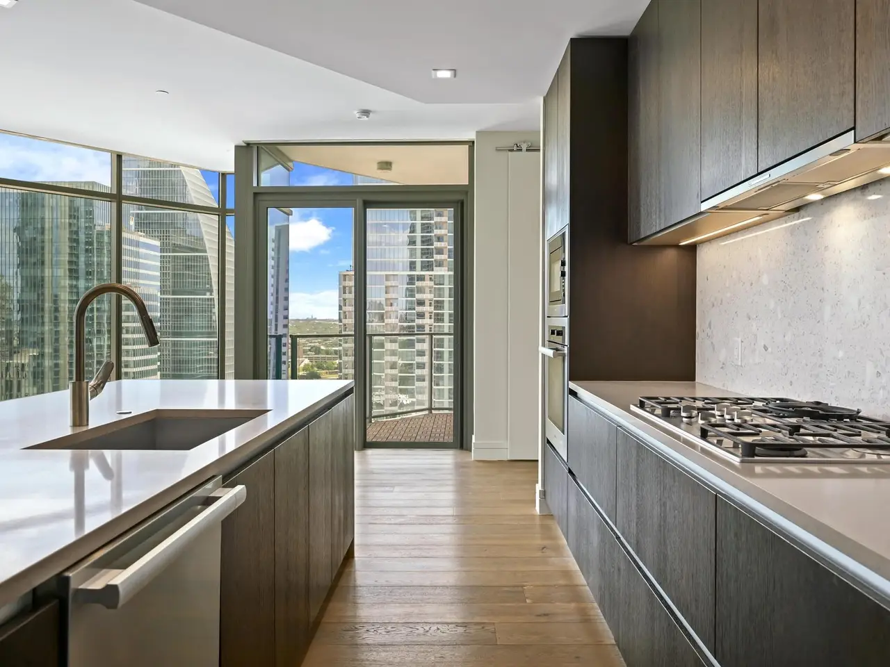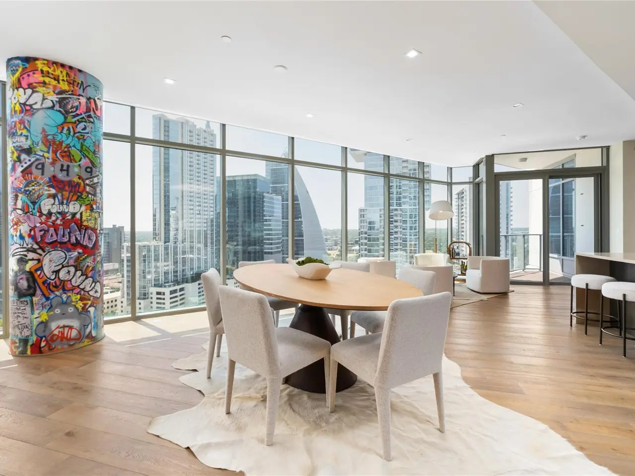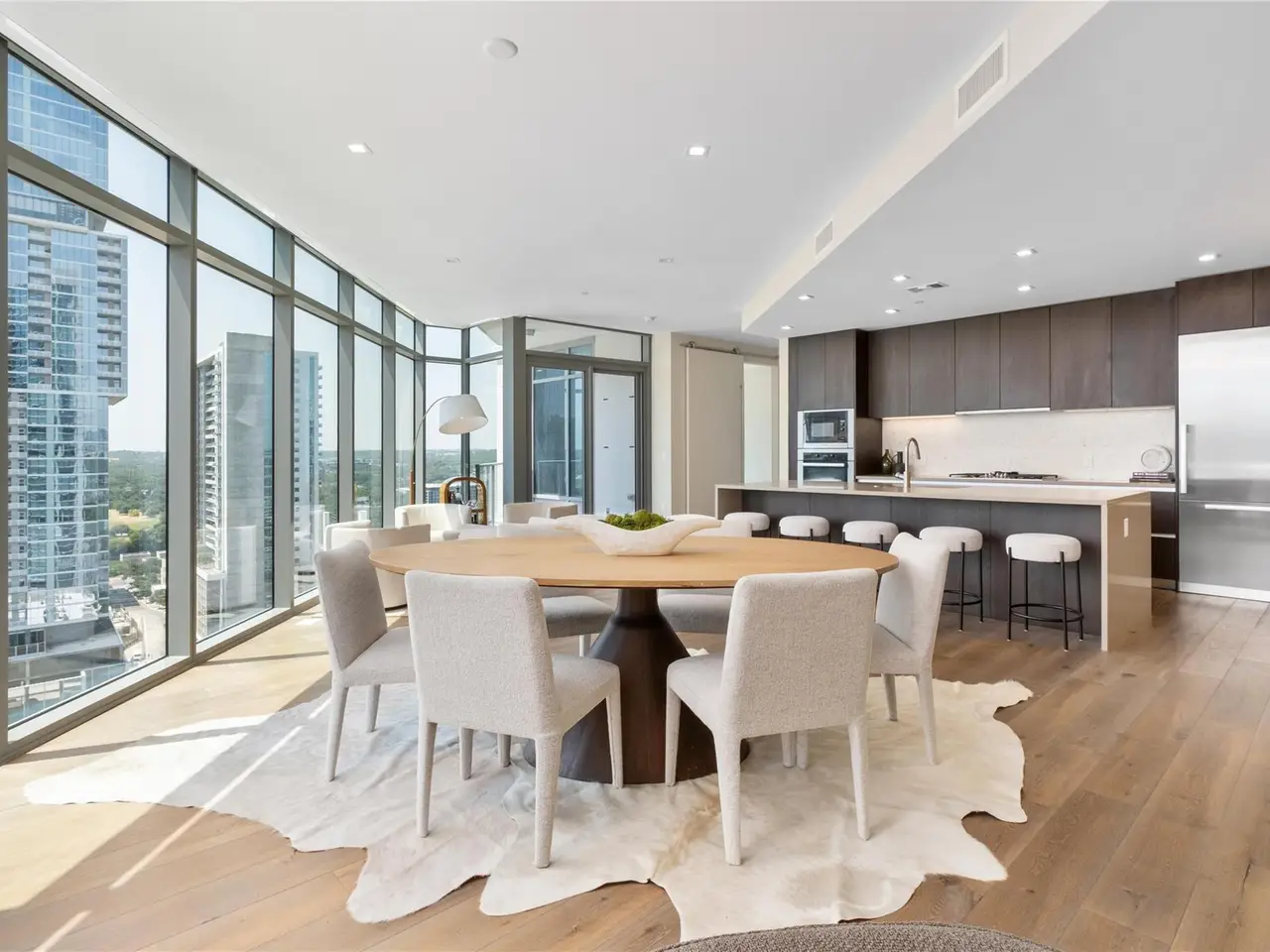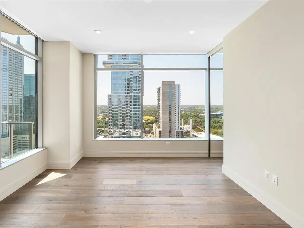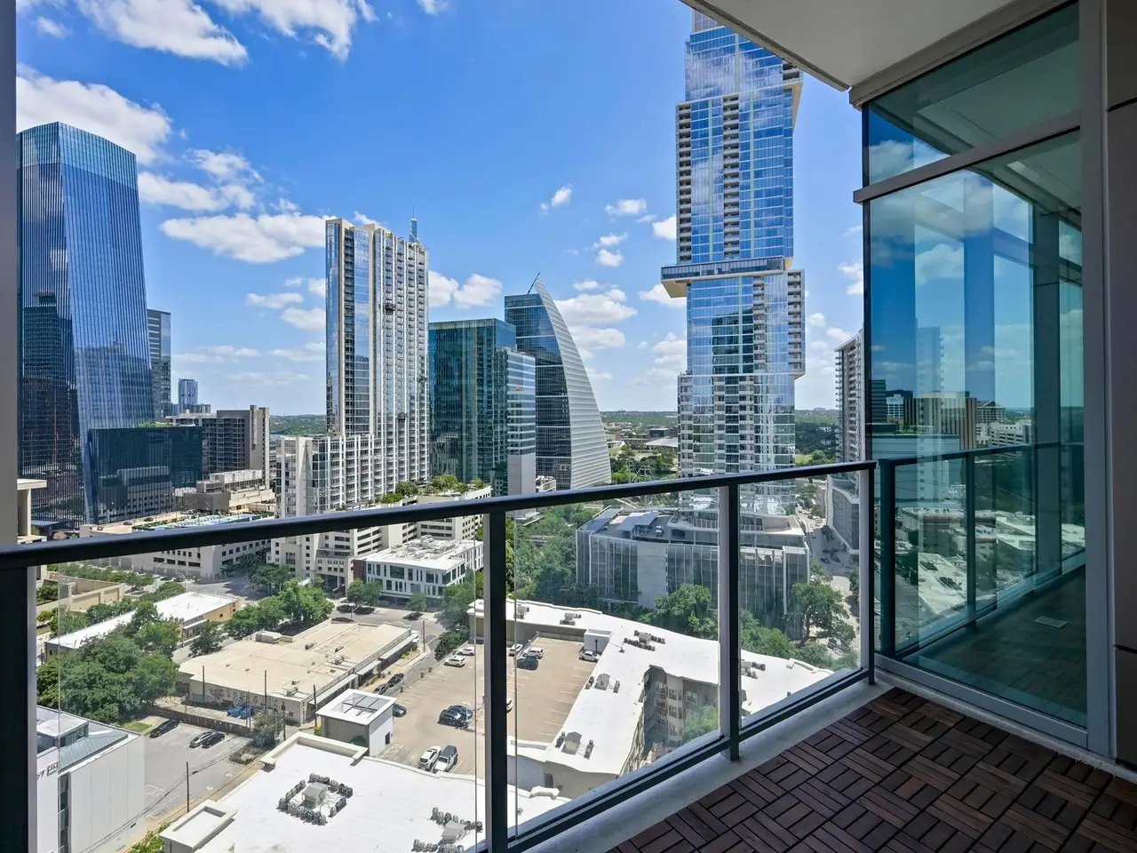 Desirable 3 bedroom residence at the prestigious Fifth & West--offering exceptional scale, privacy, and design pedigree at the best price for this floor plan and SE view orientation. This 3-bedroom + study, 3-bath unit showcases sweeping southeast-facing views of the Austin skyline and Lady Bird Lake through floor-to-ceiling, UV-filtering windows. Designed for both entertaining and everyday living, it features two private terraces, a chef's kitchen with a 10-ft quartz waterfall island, custom Italian cabinetry, Miele appliances, and a walk-in pantry. The dedicated study and sunlit primary suite include dual walk-in closets and a spa-inspired bath. Wide-plank white oak floors, motorized shades, Hansgrohe and Kohler fixtures, and keyless smart-home technology enhance the refined interior. Includes full-size laundry room, two premium parking spaces, and private storage. Fifth & West residents enjoy resort-style amenities including 24-hour concierge, pool, yoga and fitness studio, guest suites, pet park, and conference room. Designed by an award-winning team, this residence delivers the best of downtown living--panoramic views, thoughtful design, and timeless sophistication.