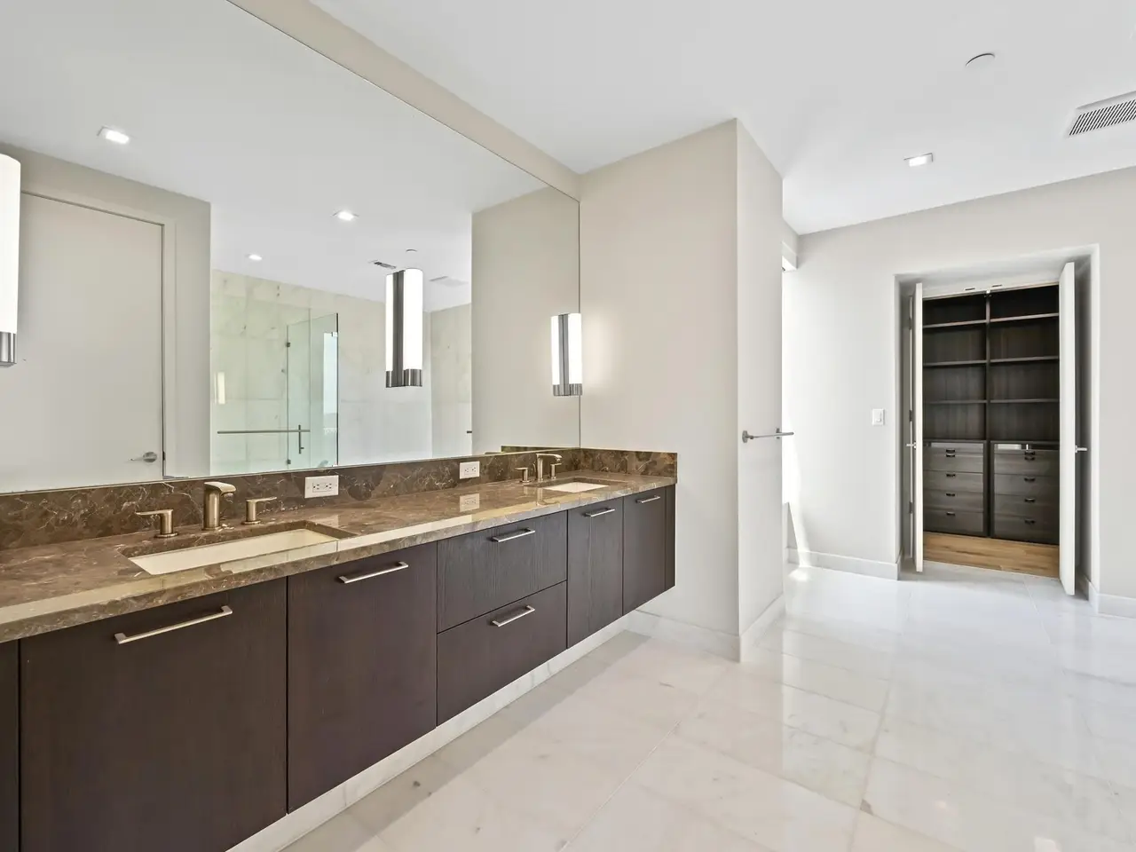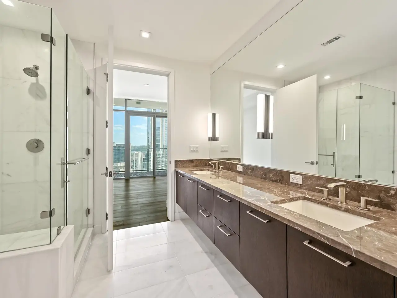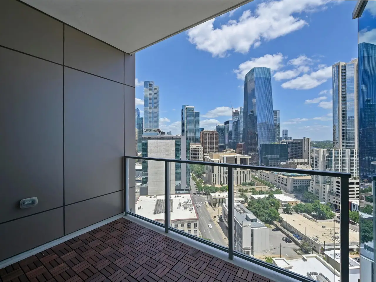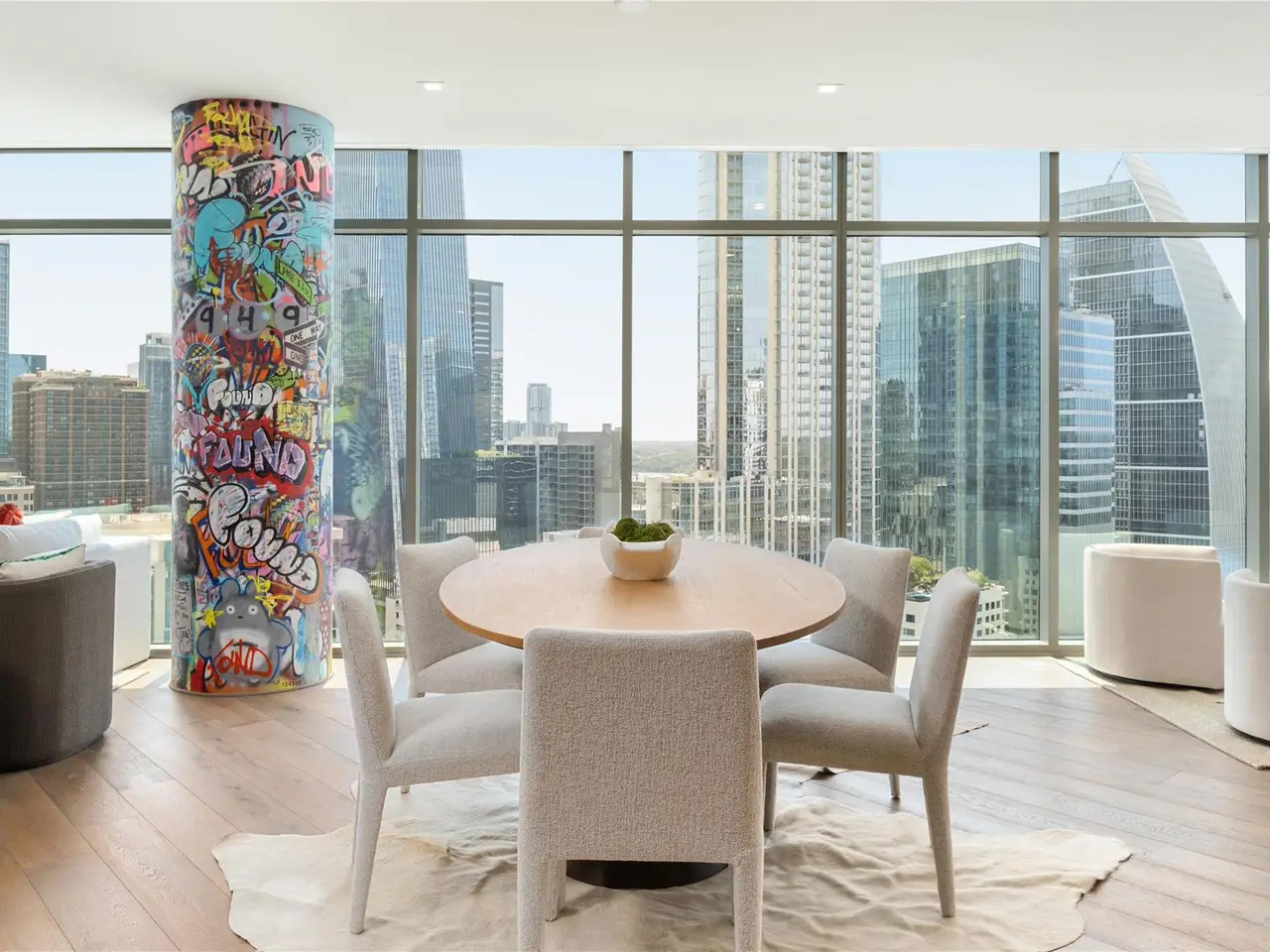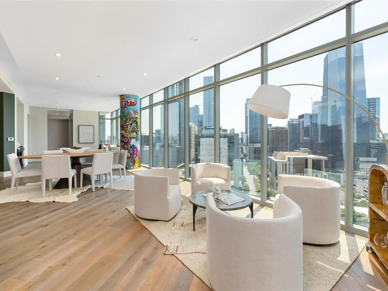 Desirable 3 bedroom residence at the prestigious Fifth & West--offering exceptional scale, privacy, and design pedigree at the best price for this floor plan and SE view orientation. This 3-bedroom + study, 3-bath unit showcases sweeping southeast-facing views of the Austin skyline and Lady Bird Lake through floor-to-ceiling, UV-filtering windows. Designed for both entertaining and everyday living, it features two private terraces, a chef's kitchen with a 10-ft quartz waterfall island, custom Italian cabinetry, Miele appliances, and a walk-in pantry. The dedicated study and sunlit primary suite include dual walk-in closets and a spa-inspired bath. Wide-plank white oak floors, motorized shades, Hansgrohe and Kohler fixtures, and keyless smart-home technology enhance the refined interior. Includes full-size laundry room, two premium parking spaces, and private storage. Fifth & West residents enjoy resort-style amenities including 24-hour concierge, pool, yoga and fitness studio, guest suites, pet park, and conference room. Designed by an award-winning team, this residence delivers the best of downtown living--panoramic views, thoughtful design, and timeless sophistication.
