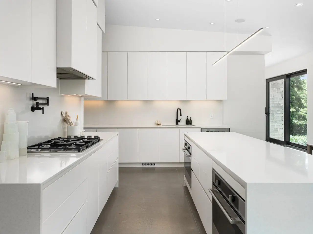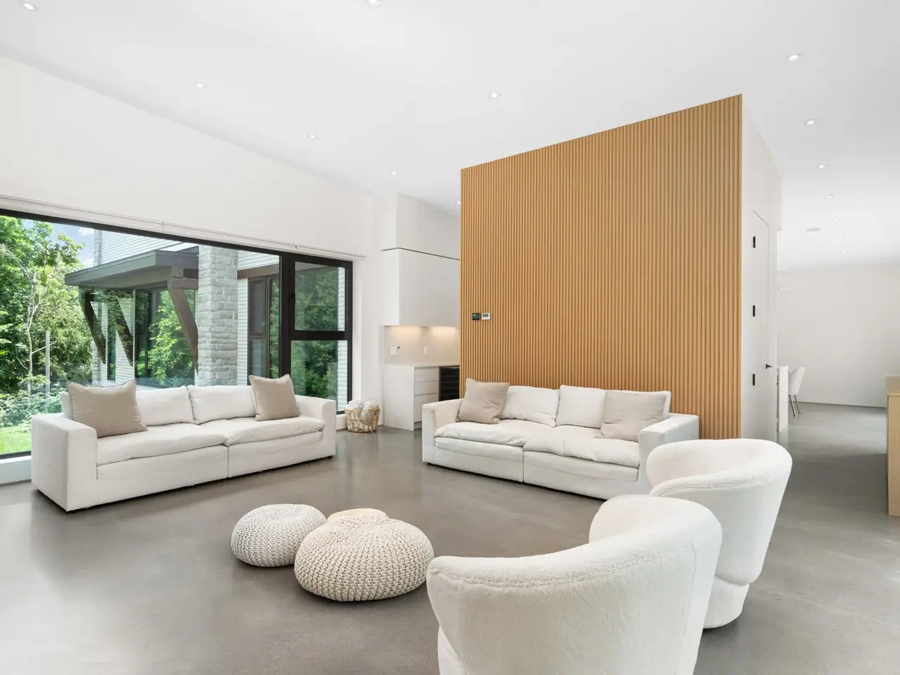 Welcome to 95 Upper Cambridge. This newly constructed 3+1 bedroom, 3+1 bathroom home is located on a sought-after street in Baie d'Urfe. Beautifully landscaped and situated on over 20,000 sq ft of property. This 2021 bungalow was meticulously crafted with cutting-edge contemporary architecture. You will find polished concrete floors with built-in hydronic radiant heating throughout the entire home. Ceiling heights vary from 9 to 12.5 ft on the main floor and 9 feet high in the basement.