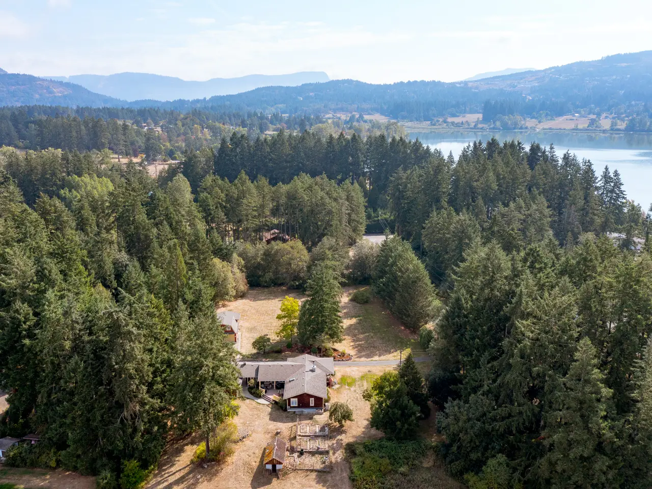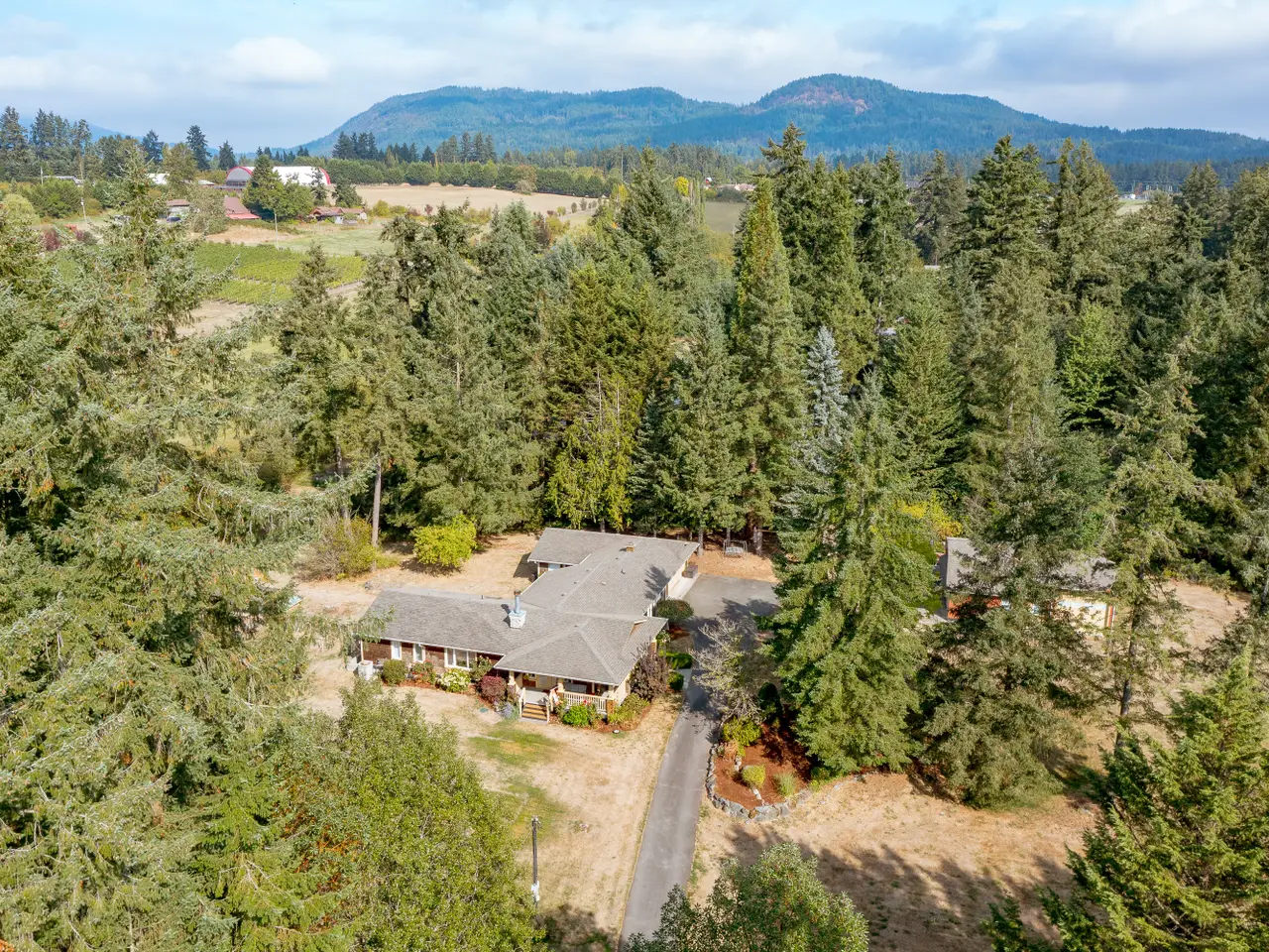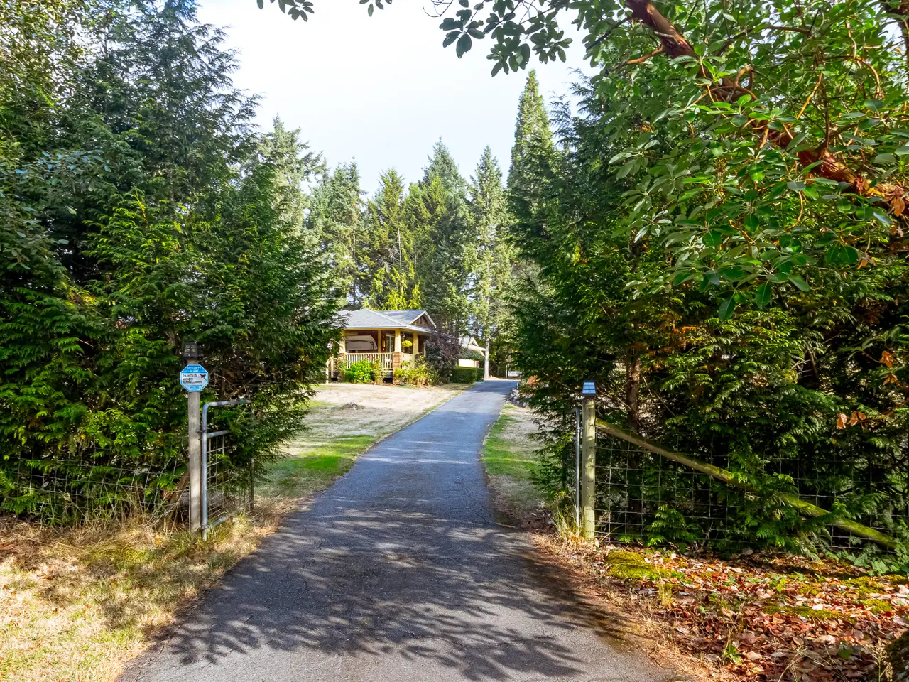 Step into your new home with over 3,000 sq. ft. of finished living space on a fully fenced 2.1-acre estate. The rancher-style residence offers 4 bedrooms, 3 bathrooms and a den with a bright primary suite opening to a deck overlooking fruit trees, gardens and vineyard views. The open kitchen and dining area are perfect for gatherings, while a heat pump, newer dishwasher and water heater provide practical convenience. Separate from the main home is your private home theatre, perfect for cozy nights in. The cold room stores your wine or harvest and the garage features an over-height ceiling ideal for your RV, boat or creative pursuits. A charming 1 bedroom, 1 bathroom carriage house with kitchen, living area and in-suite laundry welcomes family or guests. Located in a peaceful, pastoral neighbourhood just steps from Quamichan Lake and 10 minutes to Duncan, this rare offering blends tranquility, convenience, and idyllic country charm.