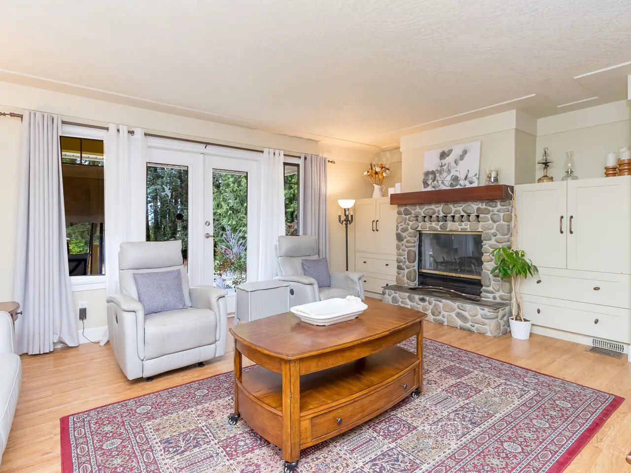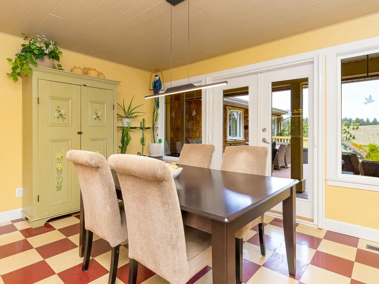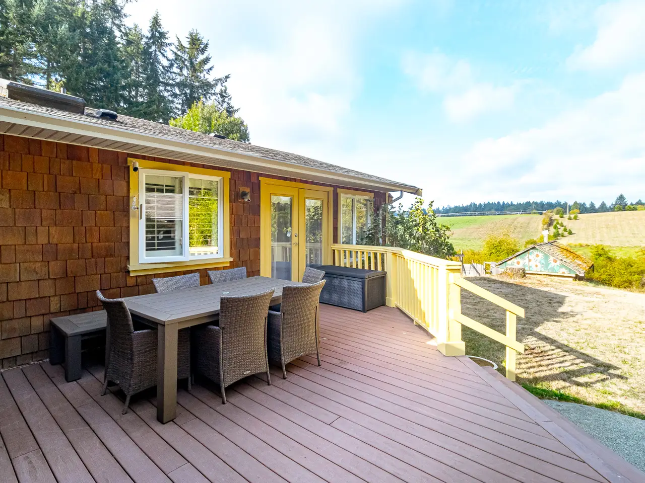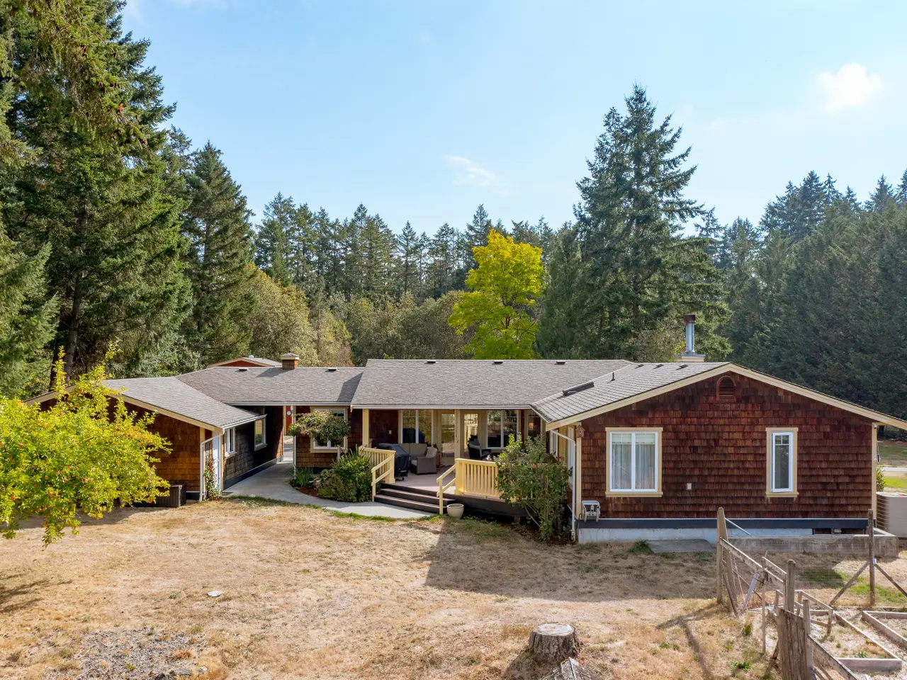 Step into your new home with over 3,000 sq. ft. of finished living space on a fully fenced 2.1-acre estate. The rancher-style residence offers 4 bedrooms, 3 bathrooms and a den with a bright primary suite opening to a deck overlooking fruit trees, gardens and vineyard views. The open kitchen and dining area are perfect for gatherings, while a heat pump, newer dishwasher and water heater provide practical convenience. Separate from the main home is your private home theatre, perfect for cozy nights in. The cold room stores your wine or harvest and the garage features an over-height ceiling ideal for your RV, boat or creative pursuits. A charming 1 bedroom, 1 bathroom carriage house with kitchen, living area and in-suite laundry welcomes family or guests. Located in a peaceful, pastoral neighbourhood just steps from Quamichan Lake and 10 minutes to Duncan, this rare offering blends tranquility, convenience, and idyllic country charm.