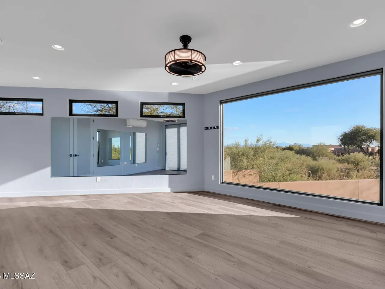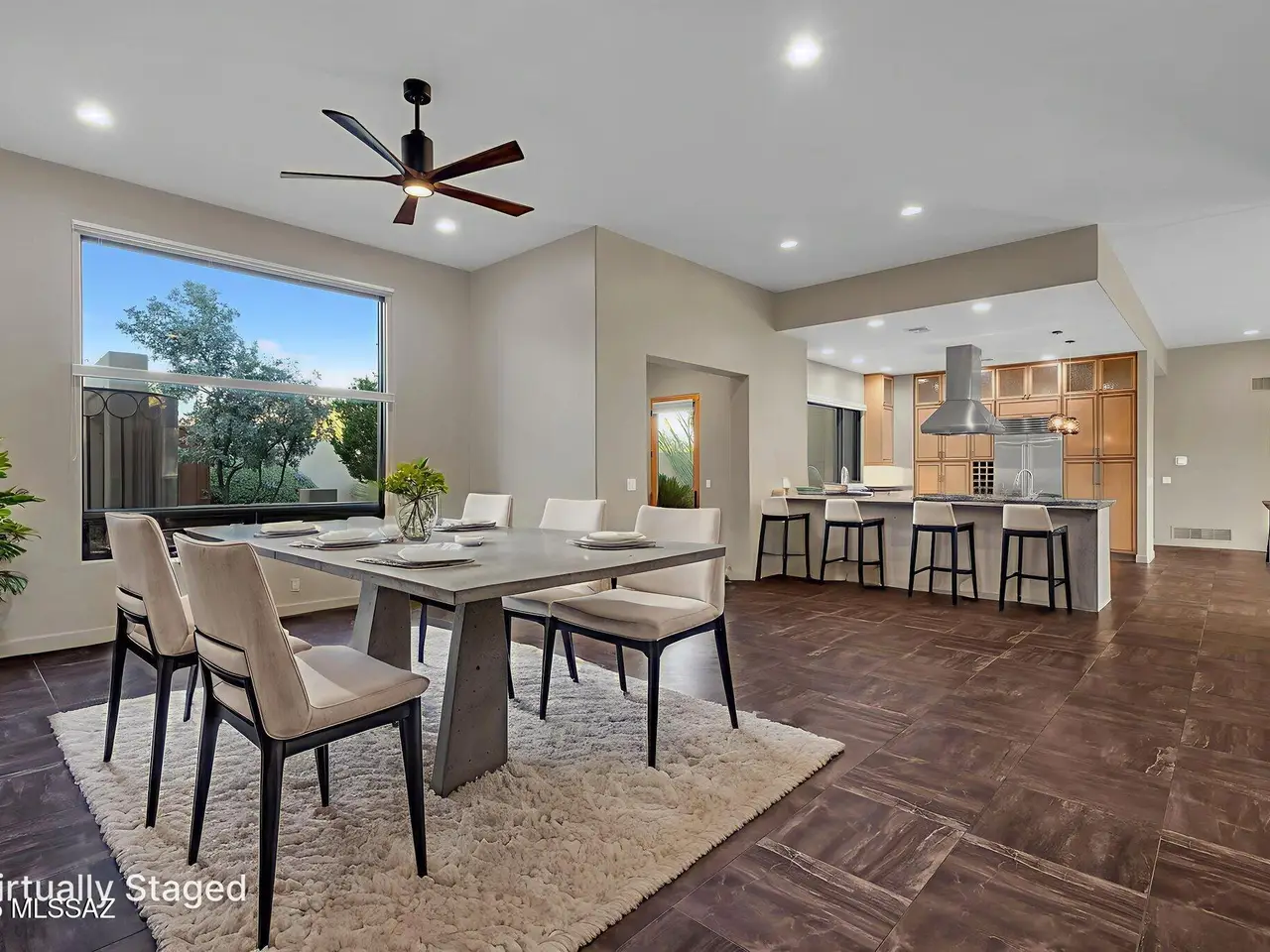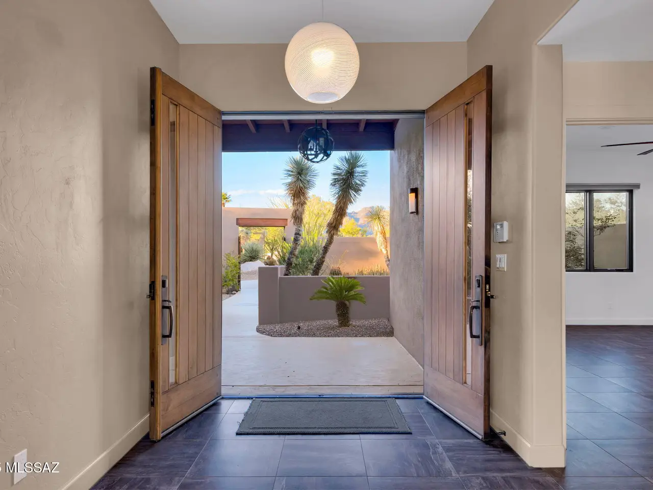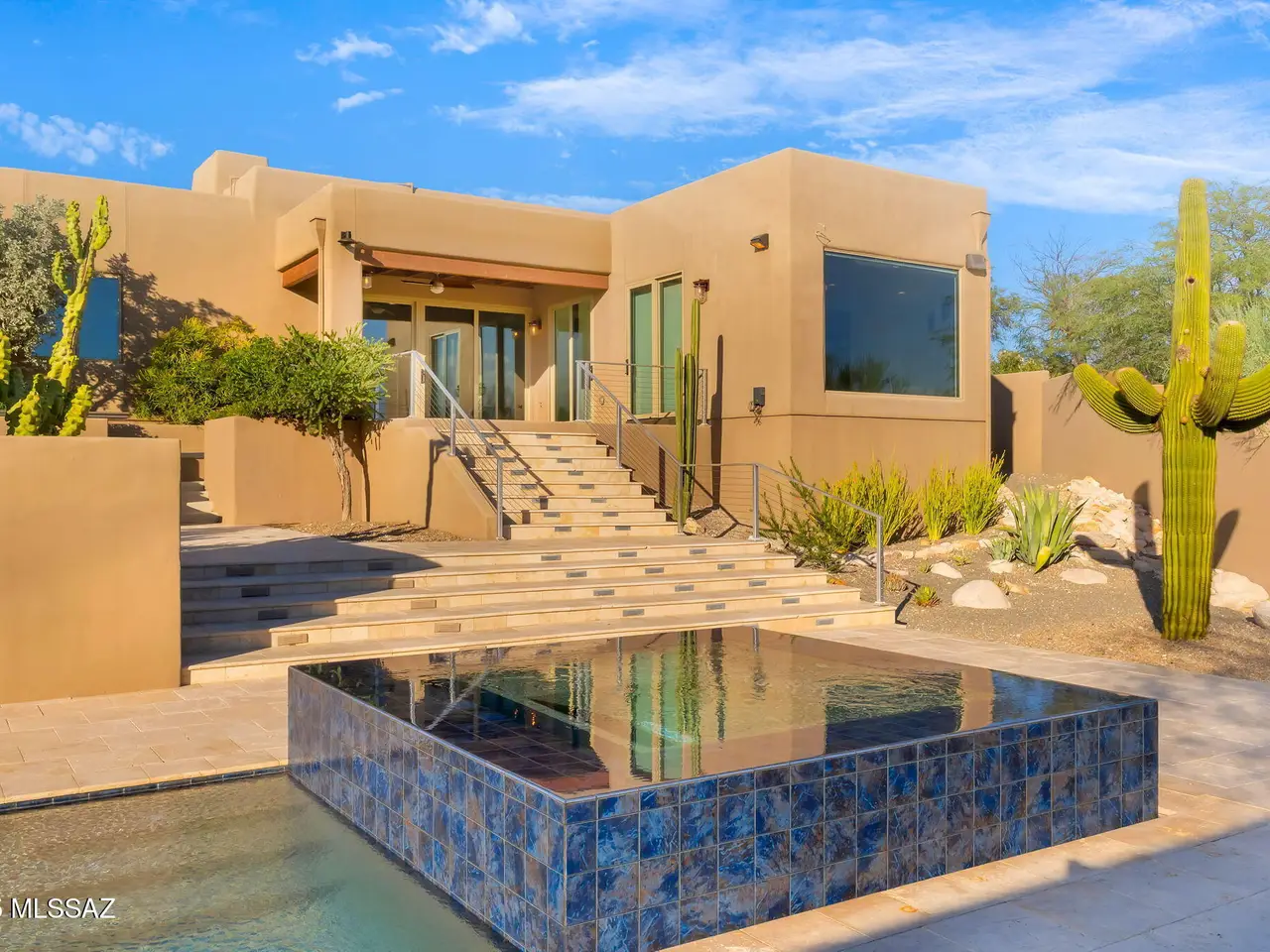A superb blend of southwestern and contemporary architecture and design makes this an ideal retreat on the grounds of, the recipient of Michelin Guide honors, Canyon Ranch Health and Fitness Resort. The current improvements, additions, and remodeling done with delicate simplicity and quality construction adhering to minute details in its functionality. A comfortable open floor plan flows seamlessly from the living room through the kitchen and the dining area into the rest of this 4 bedrooms and 4 bathroom house. A wide streamlined 10 ft electric fireplace adds soothing warmth to the space. Fine quality of the custom-designed kitchen cabinets, granite tops and the high-end appliances is immediately apparent. Primary Suite includes a workout studio, floor to ceiling windows inviting in landscape and the Rincon Mountain views. Second and third bedrooms enjoy ensuite bathrooms and spacious walk-in closets. High-end porcelain tiles flooring, except for the fitness room, laid with special luxury vinyl plank flooring recommended for heavy workouts and waterproof surfaces provides comfort, safety and flexibility. Enjoy the views while entertaining friends on your multi-level travertine tiled patio descending towards a custom designed pool and spa. Desert plants and mature saguaro cacti breathe life into these immaculately landscaped grounds. The detached pool house/studio has full bathroom and a closet. Enjoy total immersion into Canyon Ranch healthy living philosophy and recharge and rejuvenate. Start your early morning walk on the iconic 2 mile loop followed by plethora of group fitness classes, meditation, yoga, pilates, aerobics and strength at the spa and gym facilities. Treat yourself to a massage, consult with expert practitioners, counselors and physicians in areas of nutrition, integrative and traditional medicine. Enjoy organized desert and mountain hikes and cycling. Build an appetite for healthy, delicious meals at one of the two dining venues. All at your fingertips.