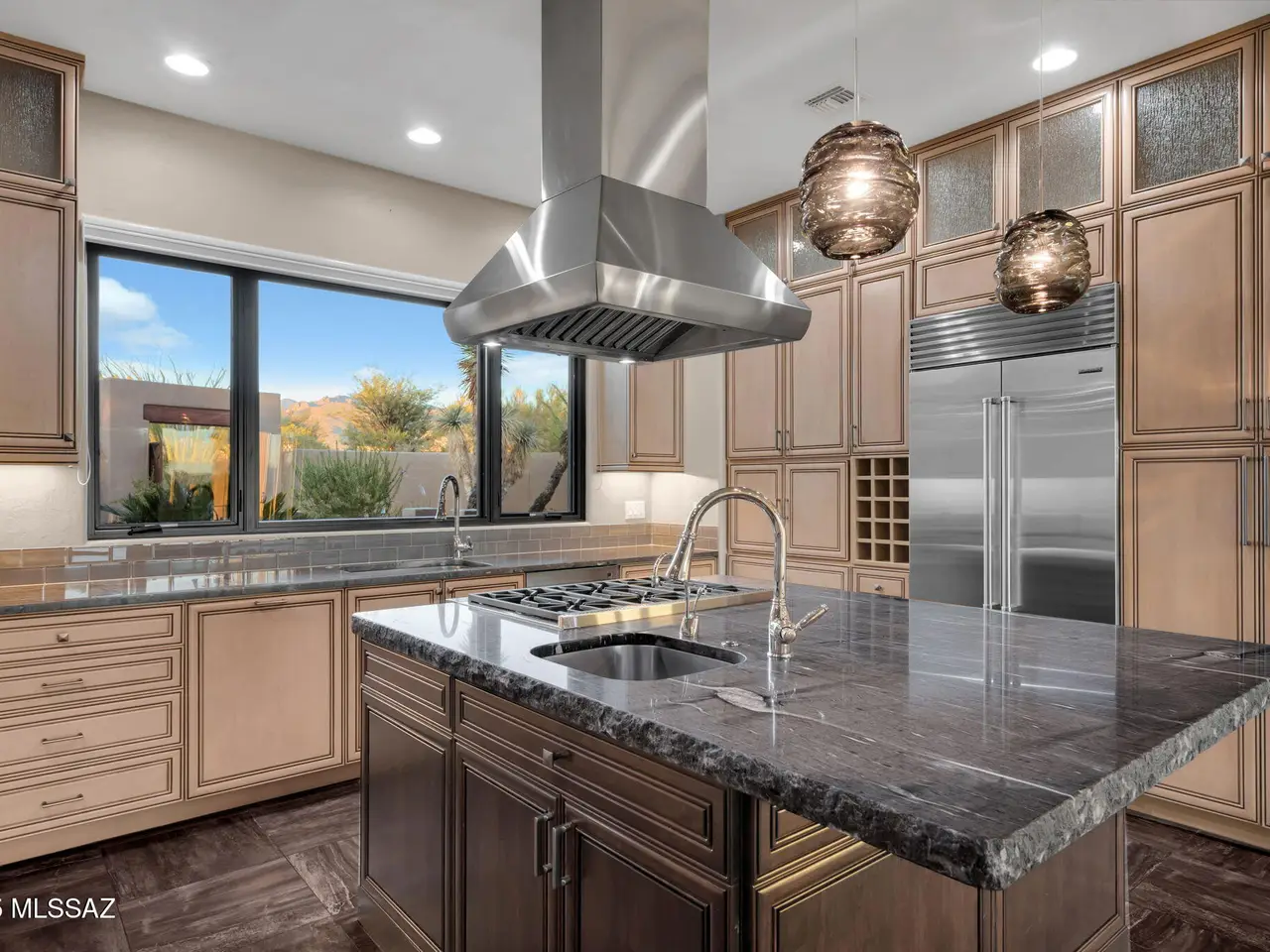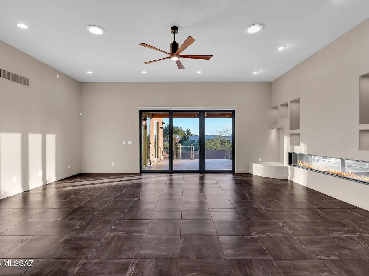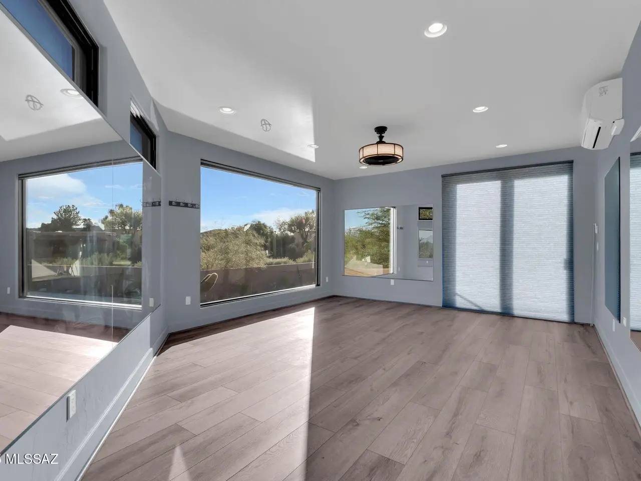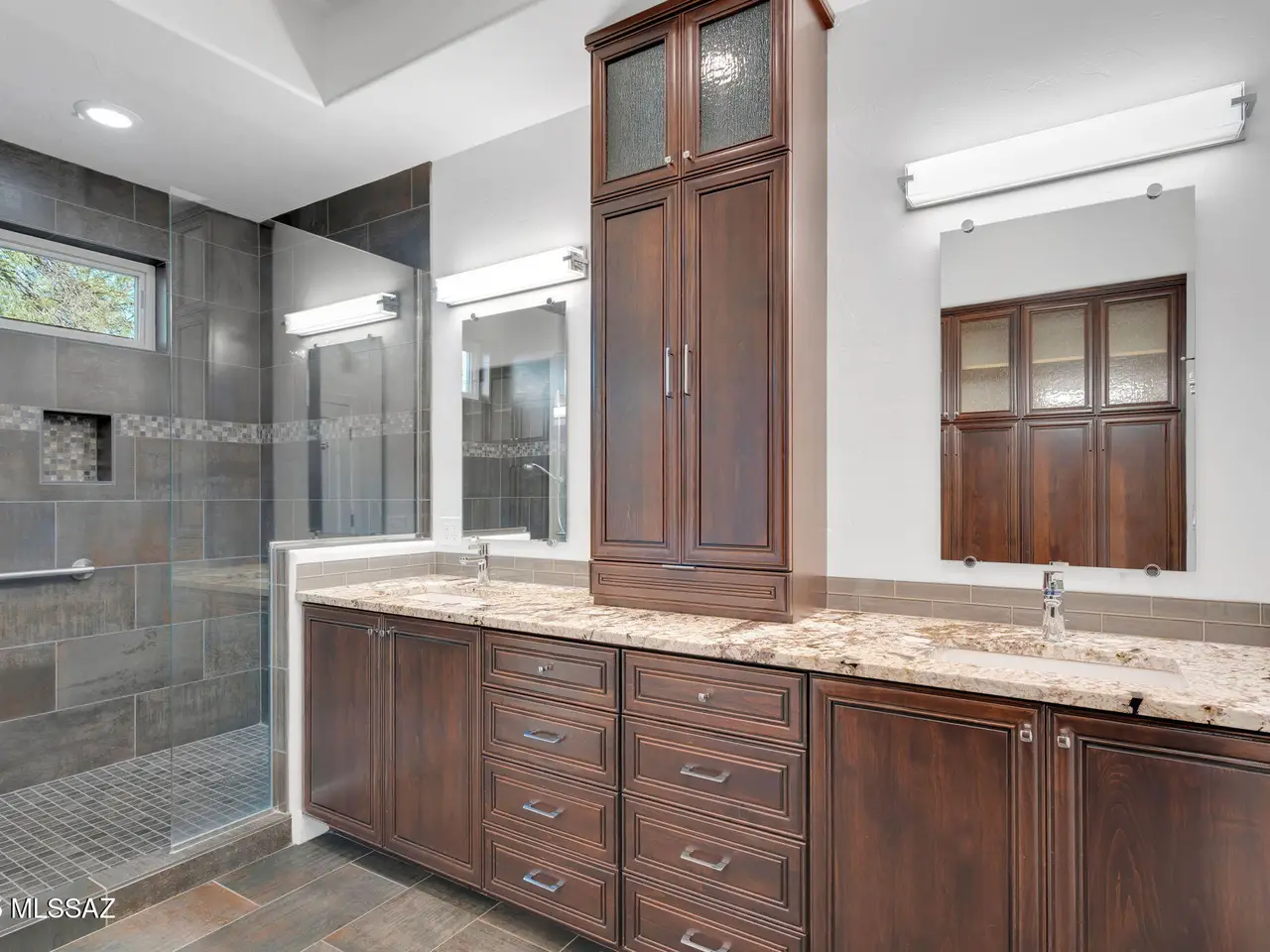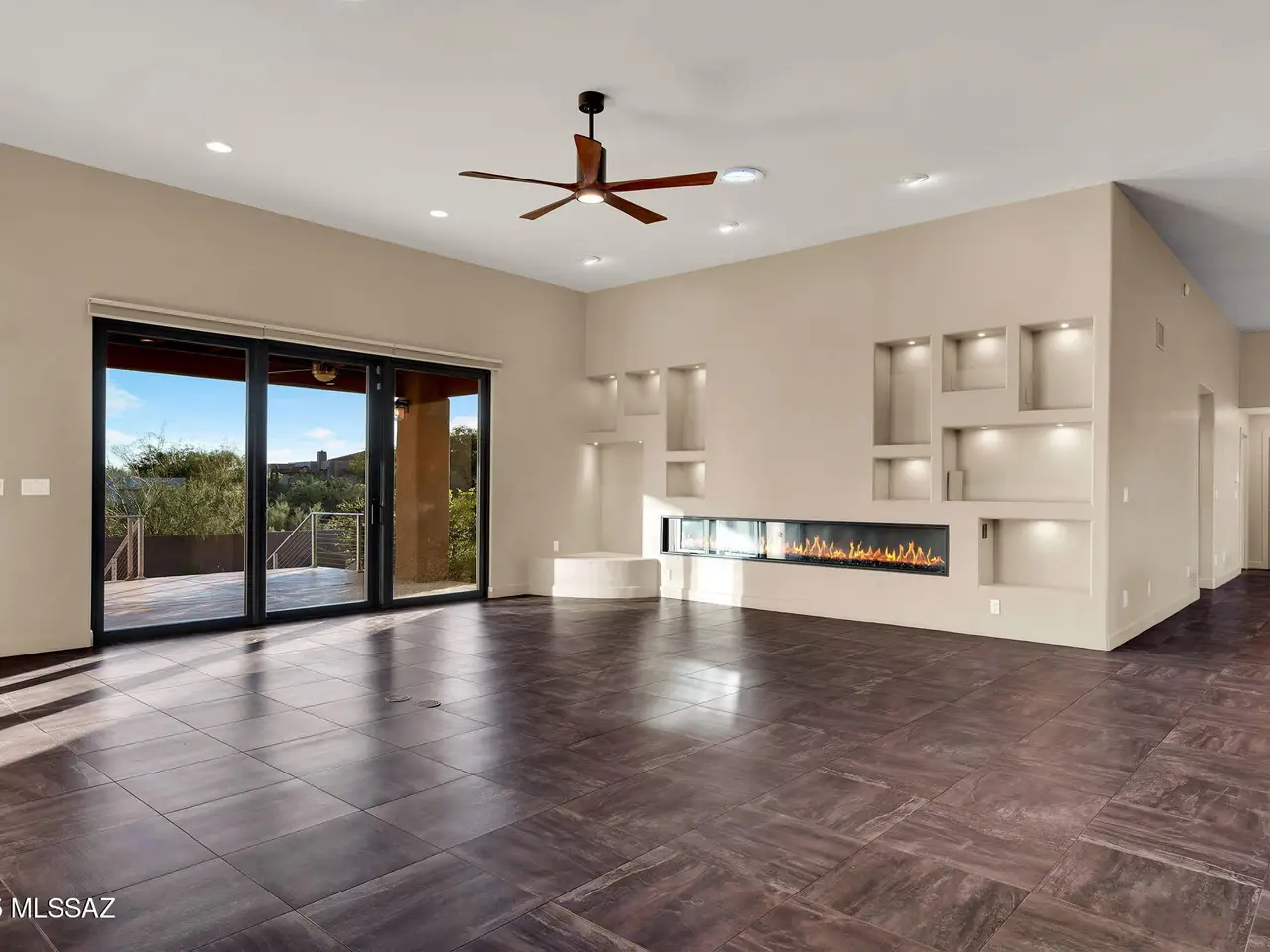 A superb blend of southwestern and contemporary architecture and design makes this an ideal retreat on the grounds of, the recipient of Michelin Guide honors, Canyon Ranch Health and Fitness Resort. The current improvements, additions, and remodeling done with delicate simplicity and quality construction adhering to minute details in its functionality. A comfortable open floor plan flows seamlessly from the living room through the kitchen and the dining area into the rest of this 4 bedrooms and 4 bathroom house. A wide streamlined 10 ft electric fireplace adds soothing warmth to the space. Fine quality of the custom-designed kitchen cabinets, granite tops and the high-end appliances is immediately apparent. Primary Suite includes a workout studio, floor to ceiling windows inviting in landscape and the Rincon Mountain views. Second and third bedrooms enjoy ensuite bathrooms and spacious walk-in closets. High-end porcelain tiles flooring, except for the fitness room, laid with special luxury vinyl plank flooring recommended for heavy workouts and waterproof surfaces provides comfort, safety and flexibility. Enjoy the views while entertaining friends on your multi-level travertine tiled patio descending towards a custom designed pool and spa. Desert plants and mature saguaro cacti breathe life into these immaculately landscaped grounds. The detached pool house/studio has full bathroom and a closet. Enjoy total immersion into Canyon Ranch healthy living philosophy and recharge and rejuvenate. Start your early morning walk on the iconic 2 mile loop followed by plethora of group fitness classes, meditation, yoga, pilates, aerobics and strength at the spa and gym facilities. Treat yourself to a massage, consult with expert practitioners, counselors and physicians in areas of nutrition, integrative and traditional medicine. Enjoy organized desert and mountain hikes and cycling. Build an appetite for healthy, delicious meals at one of the two dining venues. All at your fingertips.