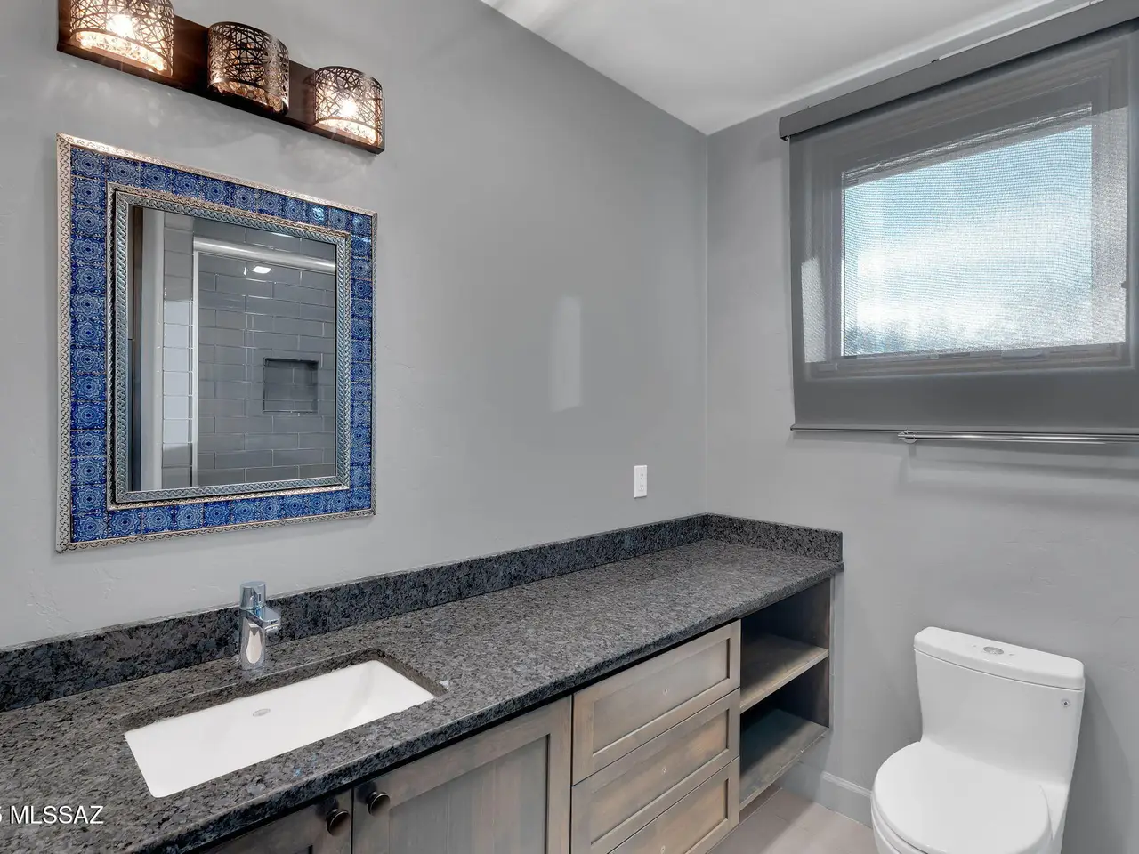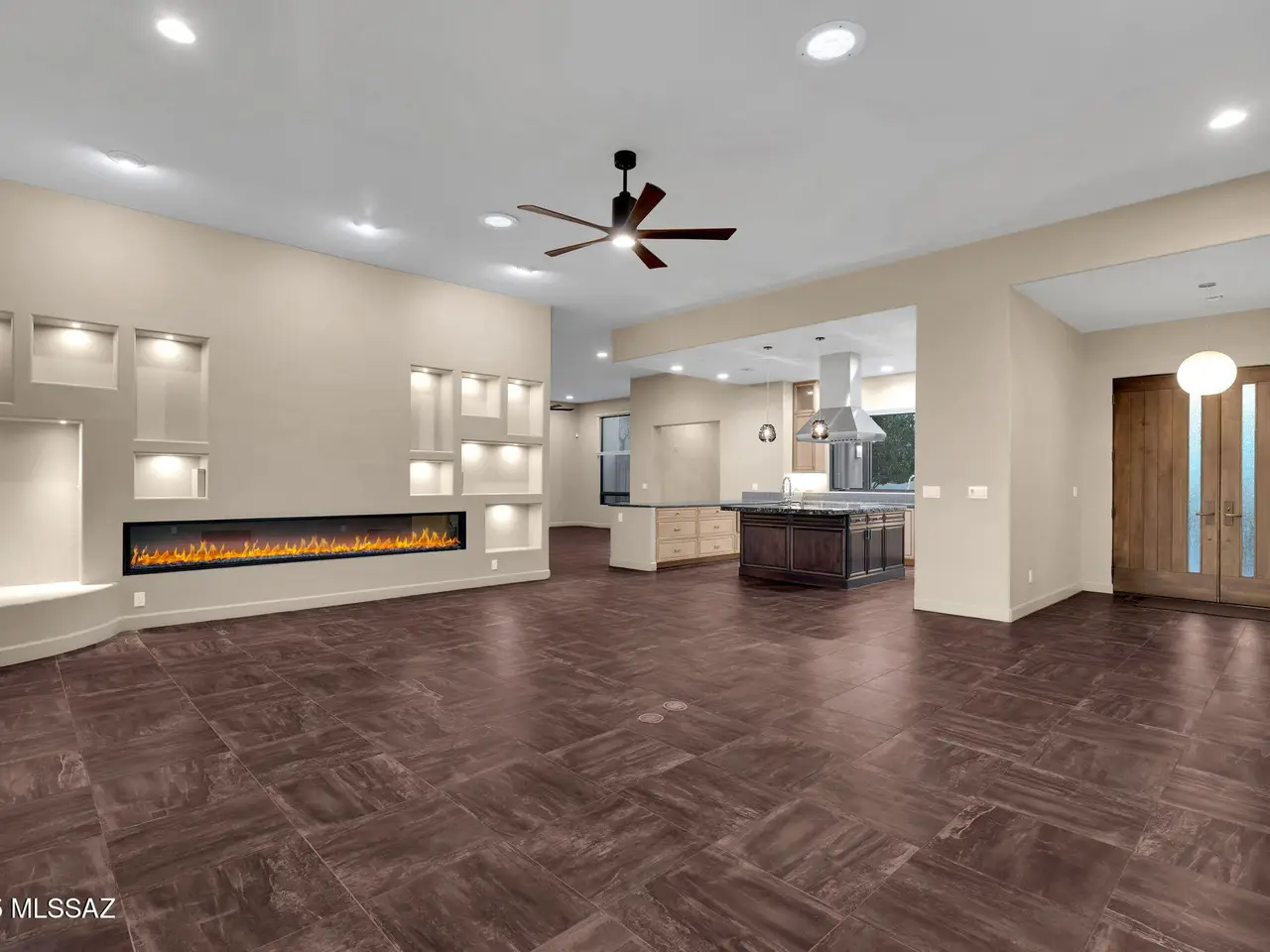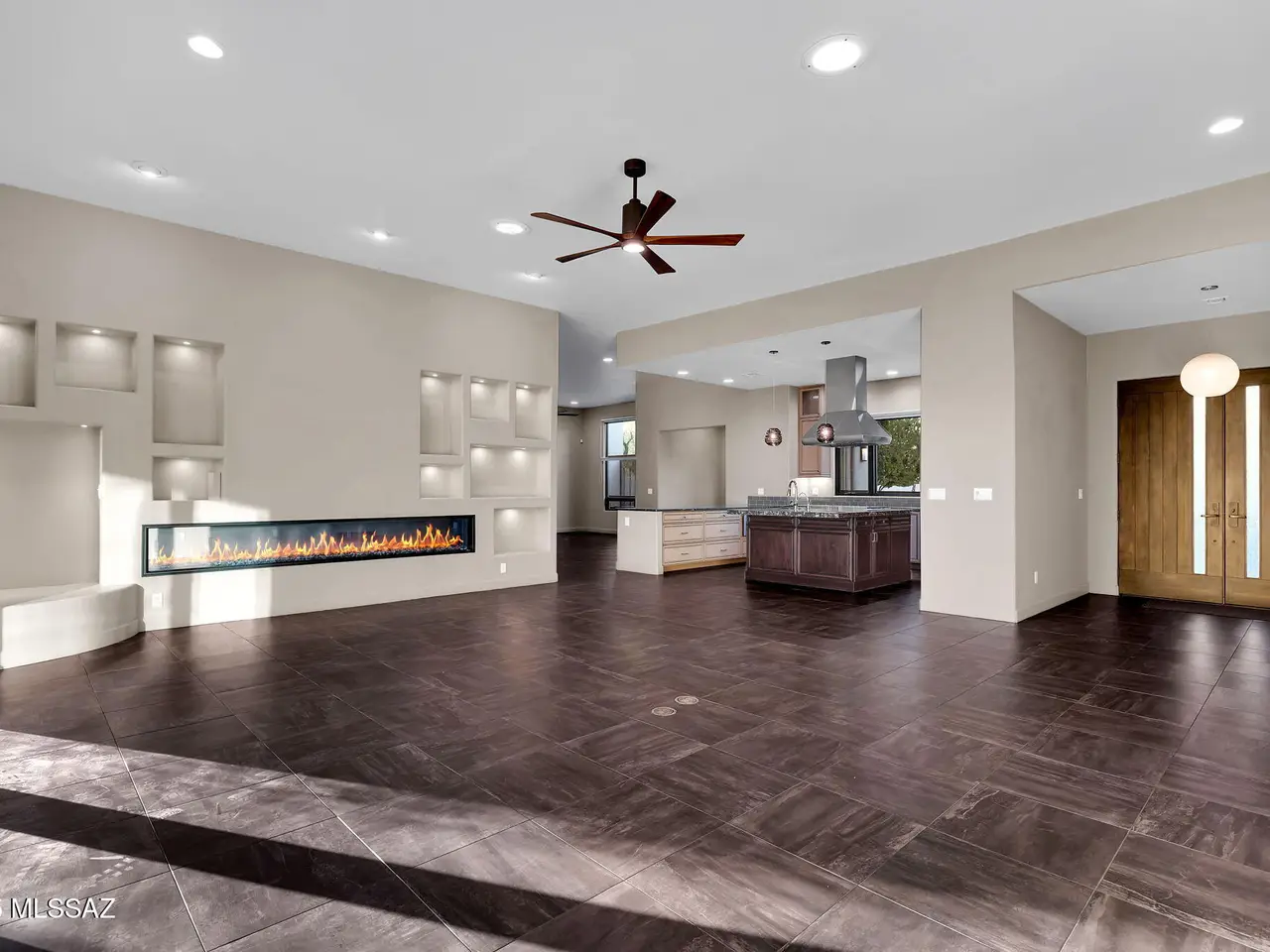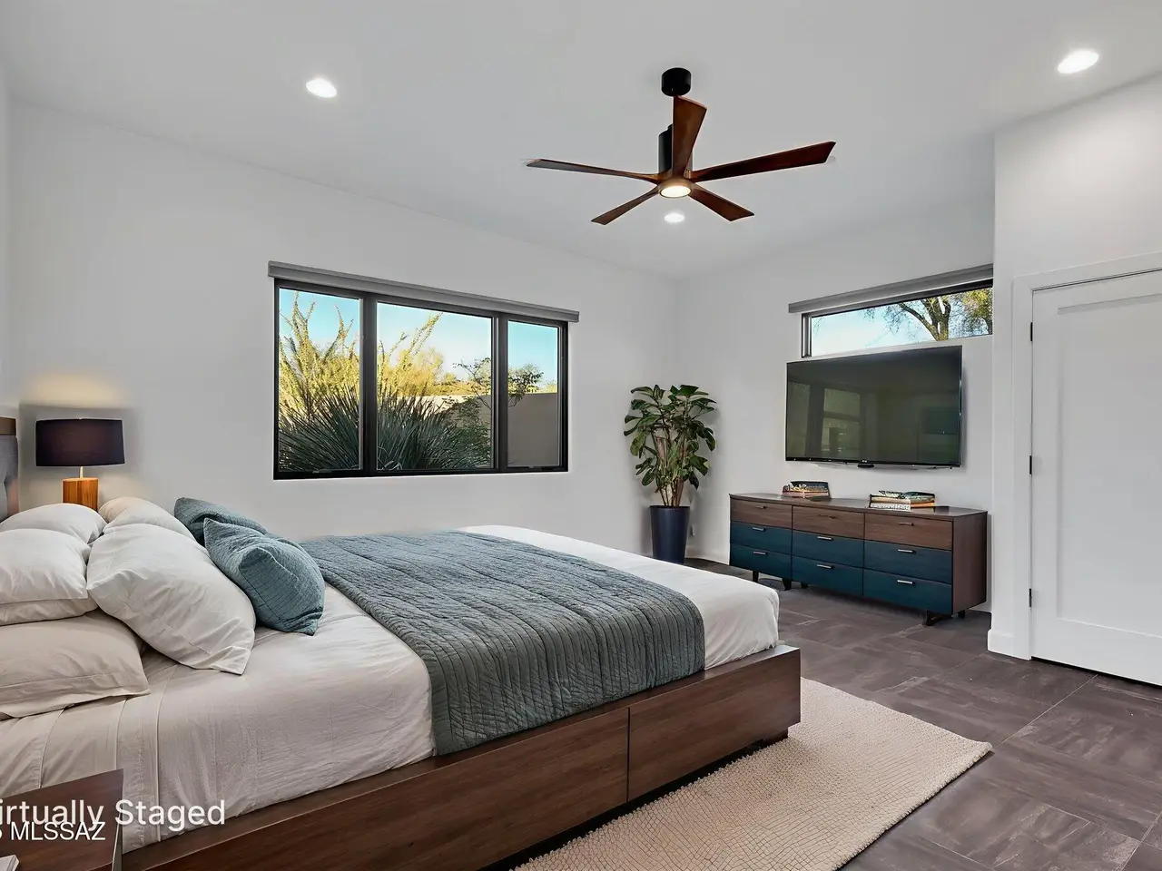 A superb blend of southwestern and contemporary architecture and design makes this an ideal retreat on the grounds of, the recipient of Michelin Guide honors, Canyon Ranch Health and Fitness Resort. The current improvements, additions, and remodeling done with delicate simplicity and quality construction adhering to minute details in its functionality. A comfortable open floor plan flows seamlessly from the living room through the kitchen and the dining area into the rest of this 4 bedrooms and 4 bathroom house. A wide streamlined 10 ft electric fireplace adds soothing warmth to the space. Fine quality of the custom-designed kitchen cabinets, granite tops and the high-end appliances is immediately apparent. Primary Suite includes a workout studio, floor to ceiling windows inviting in landscape and the Rincon Mountain views. Second and third bedrooms enjoy ensuite bathrooms and spacious walk-in closets. High-end porcelain tiles flooring, except for the fitness room, laid with special luxury vinyl plank flooring recommended for heavy workouts and waterproof surfaces provides comfort, safety and flexibility. Enjoy the views while entertaining friends on your multi-level travertine tiled patio descending towards a custom designed pool and spa. Desert plants and mature saguaro cacti breathe life into these immaculately landscaped grounds. The detached pool house/studio has full bathroom and a closet. Enjoy total immersion into Canyon Ranch healthy living philosophy and recharge and rejuvenate. Start your early morning walk on the iconic 2 mile loop followed by plethora of group fitness classes, meditation, yoga, pilates, aerobics and strength at the spa and gym facilities. Treat yourself to a massage, consult with expert practitioners, counselors and physicians in areas of nutrition, integrative and traditional medicine. Enjoy organized desert and mountain hikes and cycling. Build an appetite for healthy, delicious meals at one of the two dining venues. All at your fingertips.