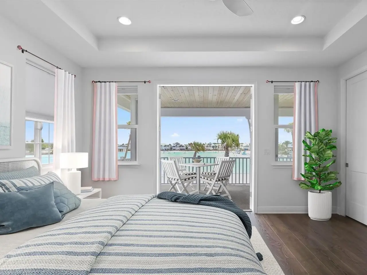 One or more photo(s) has been virtually staged. Welcome to Paradise at the Beachwalk! This is more than just a home — it’s a front-row seat to the ultimate lagoon lifestyle. Perfectly positioned on a premium corner lot with direct waterfront views and access. This is the only true 4-bedroom home on the lagoon, offering an unbeatable blend of luxury, comfort, and thoughtful upgrades throughout. Step inside and you’ll be greeted by extra-large windows that frame breathtaking views of the turquoise lagoon. The chef-inspired kitchen features soft-close cabinets, pull-out drawers, quartz countertops, stainless steel appliances, and an oversized walk-in pantry that provides all the storage you could ever need. The primary suite is a true retreat with a rainfall shower and an added window that brings in peaceful lagoon views. The home is wired for electric vehicle charging (50 amp), includes automatic stair lighting, and additional R19/30 insulation between floors for added privacy and soundproofing. Living in Beachwalk means every day feels like a vacation. Enjoy private beach access, a state-of-the-art fitness center, on-site dining, tennis, pickleball, paddleboarding, waterslides, and so much more. If you're looking for unbeatable views, the best location, and a home that checks every box — this is it. Schedule your private showing today and experience the Beachwalk lifestyle for yourself.