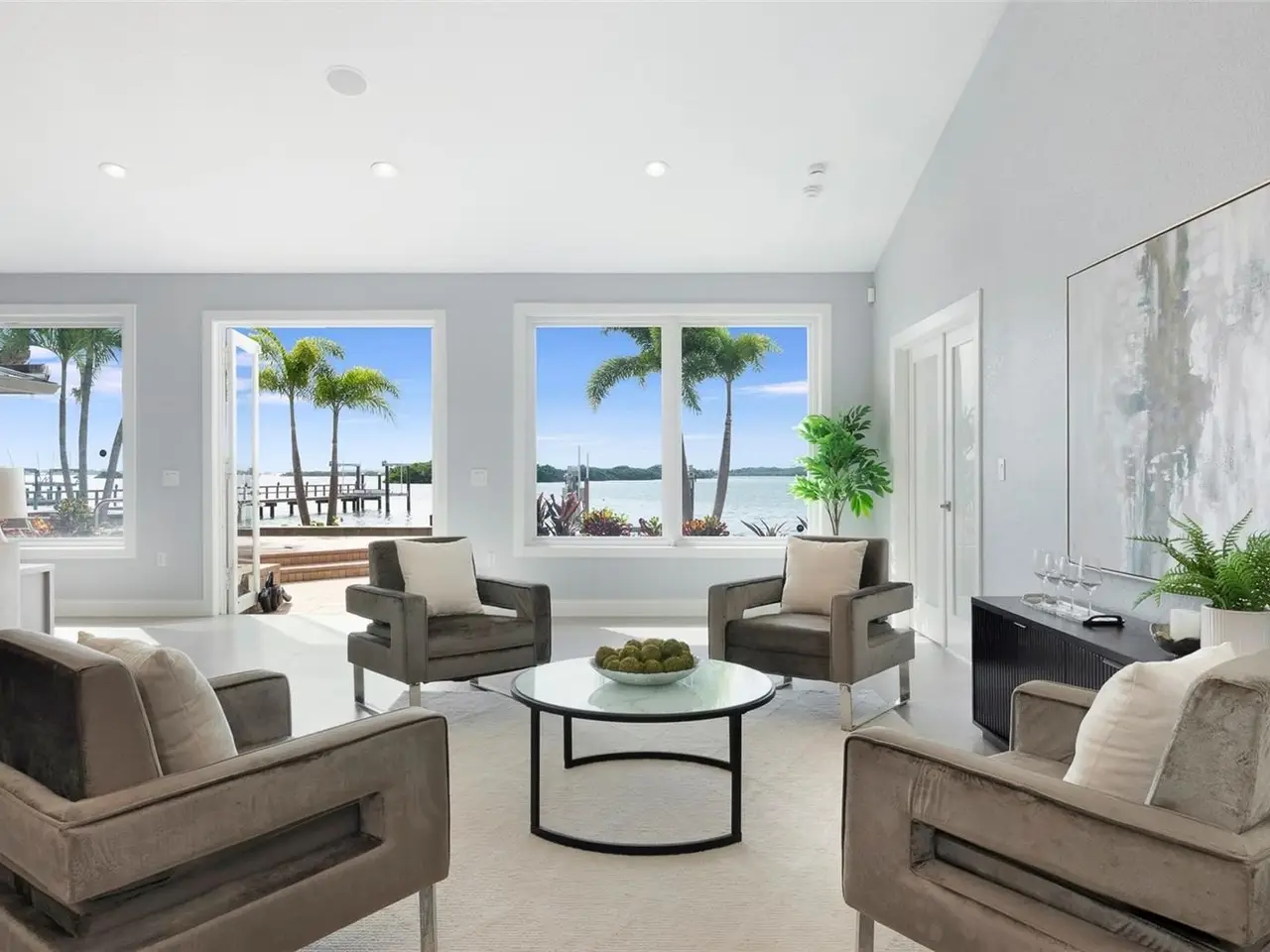One or more photo(s) has been virtually staged. Motivated Seller! Welcome to your Waterfront Oasis at 8400 35th Avenue N in St. Petersburg—a blend of timeless elegance, cutting-edge engineering, and effortless coastal living. This fully reimagined 3-bedroom, 3-bath residence on 1.51 acres offers the sophistication of new waterfront construction without the wait. Meticulously rebuilt from the ground up, this home features a state-of-the-art whole-home FLOOD PROTECTION SYSTEM by Garrison Flood Systems—the same advanced technology trusted by Tampa General Hospital—providing unmatched confidence and storm security. Inside, every detail has been curated for luxury, from the ceramic porcelain tile flooring throughout to the open-concept living spaces framed by expansive water views. The chef’s kitchen is a showpiece, complete with JennAir appliances, dual dishwashers, and a built-in espresso machine designed for effortless entertaining. The primary suite is a true retreat, offering panoramic bay views, a custom walk-in closet, and a spa-inspired bath with designer finishes. A split floor plan ensures privacy for guests, while one bedroom easily flexes as a home office or creative studio. Outdoors, Florida living unfolds in full color! Seamless indoor/outdoor living allows you to entertain your guests while you enjoy the breathtaking sunsets over the Boca Ciega Bay! Designed for enduring beauty and function, the fiberglass waffle decking (dock 2023) carries a 50-year warranty and allows water to pass through naturally during high tides and features a SwingStopper lift system for your boat with new cables, adjusted bunk boards, and serviced motors. Enjoy quick Gulf access through Johns Pass or head to Treasure Island! A standing seam steel roof (2018) offers long-lasting durability, while a partial Generac system with all electronic controls in place adds convenience and future upgrade potential. The property’s protected, unobstructed views stretch across VA-owned parkland and a state bird sanctuary, ensuring your serene waterfront outlook will remain forever preserved. From its world-class flood protection and curated finishes to its seamless indoor-outdoor flow and commanding bay views, this home defines luxury coastal living at its finest.