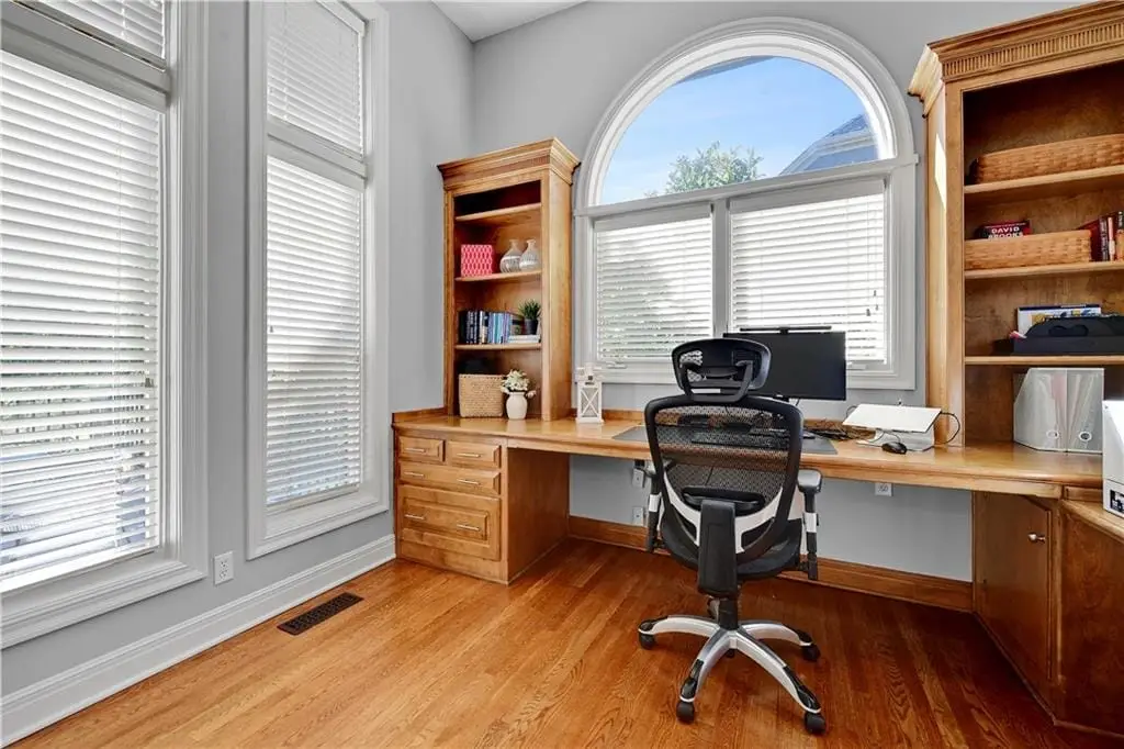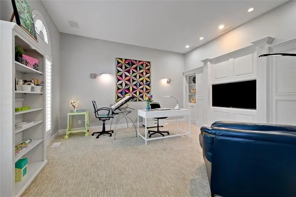 Enjoy the sweeping fairway views of Iron Horse Golf Course from your gorgeous, sprawling, Don Julian built home. From the moment you enter, you’ll feel the welcoming design meant for gathering with friends and family. The main level boasts two offices, a spacious primary suite with a spa-like updated bath, and an open-concept layout where the updated kitchen, with its large walk-in pantry, newer appliances, and casual dining area flows effortlessly into the great room, all framed by golf course views. Upstairs, dual stairways lead to a loft and three large bedroom suites, each with impressive closets and updated ensuite bathrooms. Two offices, two stairways, two primary suites, two dining spaces, two great rooms, and two laundry areas, this home offers a multigenerational floorplan with versatility rarely found. The lower level walkout was designed for entertaining and comfort, with luxury vinyl plank flooring, a spacious rec room, and a large second primary suite overlooking the course. Step outside to enjoy both a deck and a patio, plus a manicured lawn that provides front-row views of Iron Horse Golf Course.
