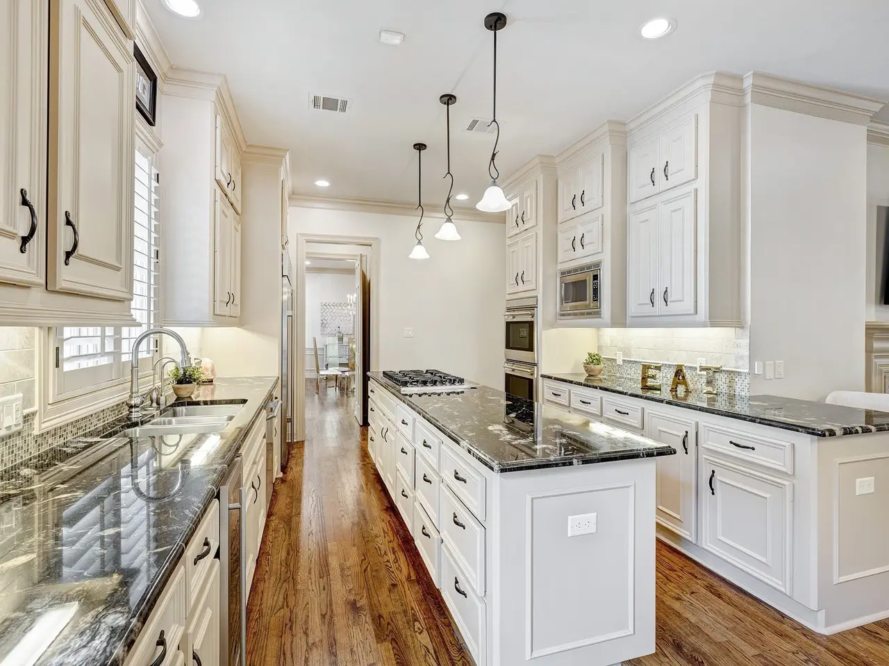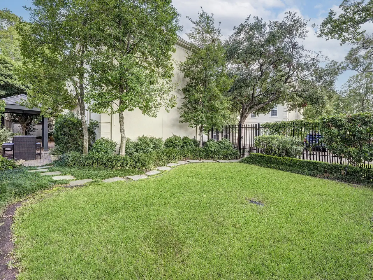 Only three homes in this lovely gated enclave—offering unmatched privacy, exceptional green space, and rare additional parking. Rich hardwood floors grace both the first and second levels. Features include an elevator, whole-house generator, mosquito misting system, and numerous tasteful updates. The kitchen boasts an expanded island, butler’s pantry, and walk-in pantry. The primary suite offers a fireplace, private sitting room with custom built-ins, two large closets, and a renovated spa-like shower. One secondary bedroom doubles as a sophisticated study with built-ins, private bath, and walk-in closet. Three bedrooms on the 2nd floor. The spacious 3rd-floor suite includes a full bath and closet. A charming pergola sits just beyond the kitchen, overlooking a curated yard—ideal for pets or a future cocktail pool. All info per Seller.