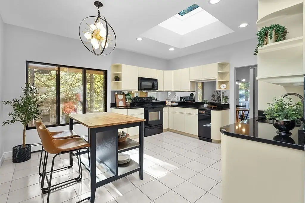 • Skylit kitchen and living room