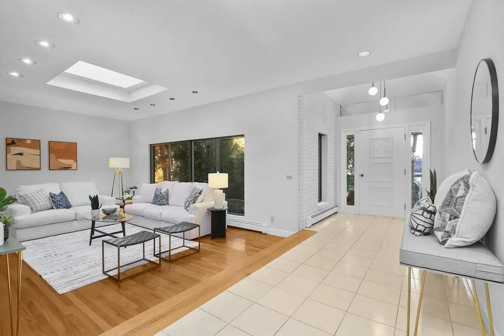 Tucked away in one of WellesleyÆs popular Hardy School neighborhoods is this California-designed, custom built, spacious 4 Bdrm home w/flexible floorplan perfect for those seeking private office, in-law/guest or teen suite. 3 bdrms & 2 baths on one level & 4th bdrm or multi-purpose rm on the 1st fl near laundry rm & bath. Fieldstone fplÆd family rm leads to a generous yard. Bright, skylit eat-in kitchen w/newer applÆs. FplÆd, skylit living rm-off a generous entry, is flooded w/natural light from oversized windows offering lovely, private views. Formal dining rm opens to spacious deck for easy entertaining. Newer cedar roof & 4-zone central a/c. Brick-solid exterior is neutral & easy-care. Large two-car ground-level garage.This striking interior has been beautifully updated for pristine, move-in convenience. Avoid congested traffic from this most accessible, quiet location w/easy access to shopping, commuting & dining. Come inside to fully appreciate all this family home has to offer.