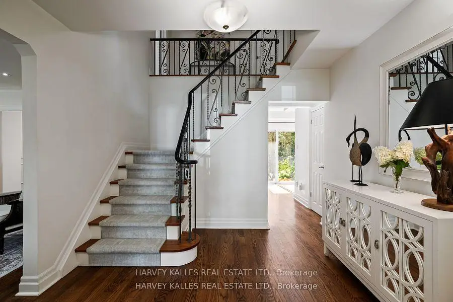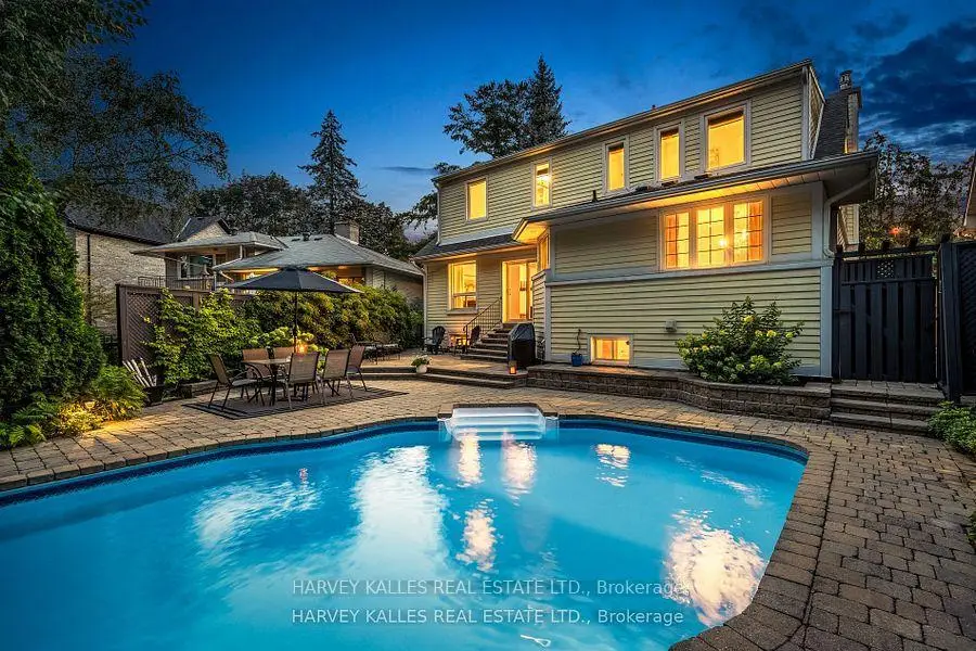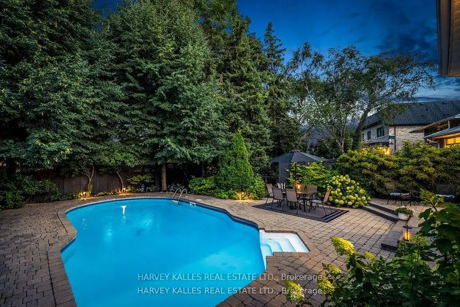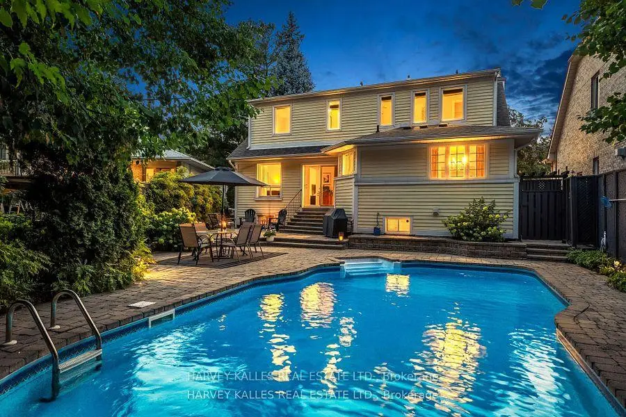 Welcome to 17 Elstree Rd, a stunning home set on one of the most coveted & tranquil tree-lined streets in Humber Valley Village. With over 81 ft of frontage on a lush, mature lot, this residence combines timeless elegance w/modern comfort in a truly unbeatable location. Step onto the covered front porch & into a sun-filled foyer featuring custom closets & gleaming hrdwd flrs. The L/R offers a wall of windows O/L the front gardens & a custom Rumford fireplace w/stone surround - perfect for both entertaining & quiet evenings. The formal D/R impresses w/hrdwd flrs, bespoke millwork, & a statement chandelier, all O/L the priv backyard.The kit features hrwd flrs, stone counters & backsplash, 6 s/s appliances,abundant cabinetry, a breakfast area, & a w/o to the backyard oasis. A main-flr F/R completes the flow, offering a warm space to gather & relax. Upstairs, you'll find 3 spacious bdrms, a primary retreat w/a w-in closet, custom b/ins, & a spa-inspired 5pc ens w/garden views. The L/L expands the living space w/a generous rec room,gas fireplace, above-grade windows, & a dedicated guest br or office paired w/a nearby 3pc bath - ideal for a nanny or in-law suite. A bright laundry area, ample storage, & a cold rm add convenience & function. Outside, the inground salt water pool, landscaped gardens, & towering trees create a private sanctuary, complemented by a dbl-car garage & driveway prkg for four. This home represents an exceptional opportunity to live on one of the best streets in Humber Valley Village, surrounded by top-ranked schools, incl Humber Valley Village JMS, Richview Collegiate Institute & All Saints Catholic School. Walk to the newly renovated Humbertown Shopping Centre & James Gardens. Renowned golf clubs, incl St. George's Golf & Country Club, Islington Golf Club & Weston Golf Club, are nearby. W/quick access to the Bloor St Subway line, Pearson Int Airport, and major hwys, 17 Elstree Rd offers the perfect balance of serene living & city convenience.
