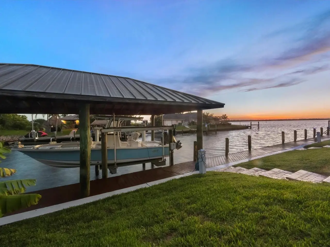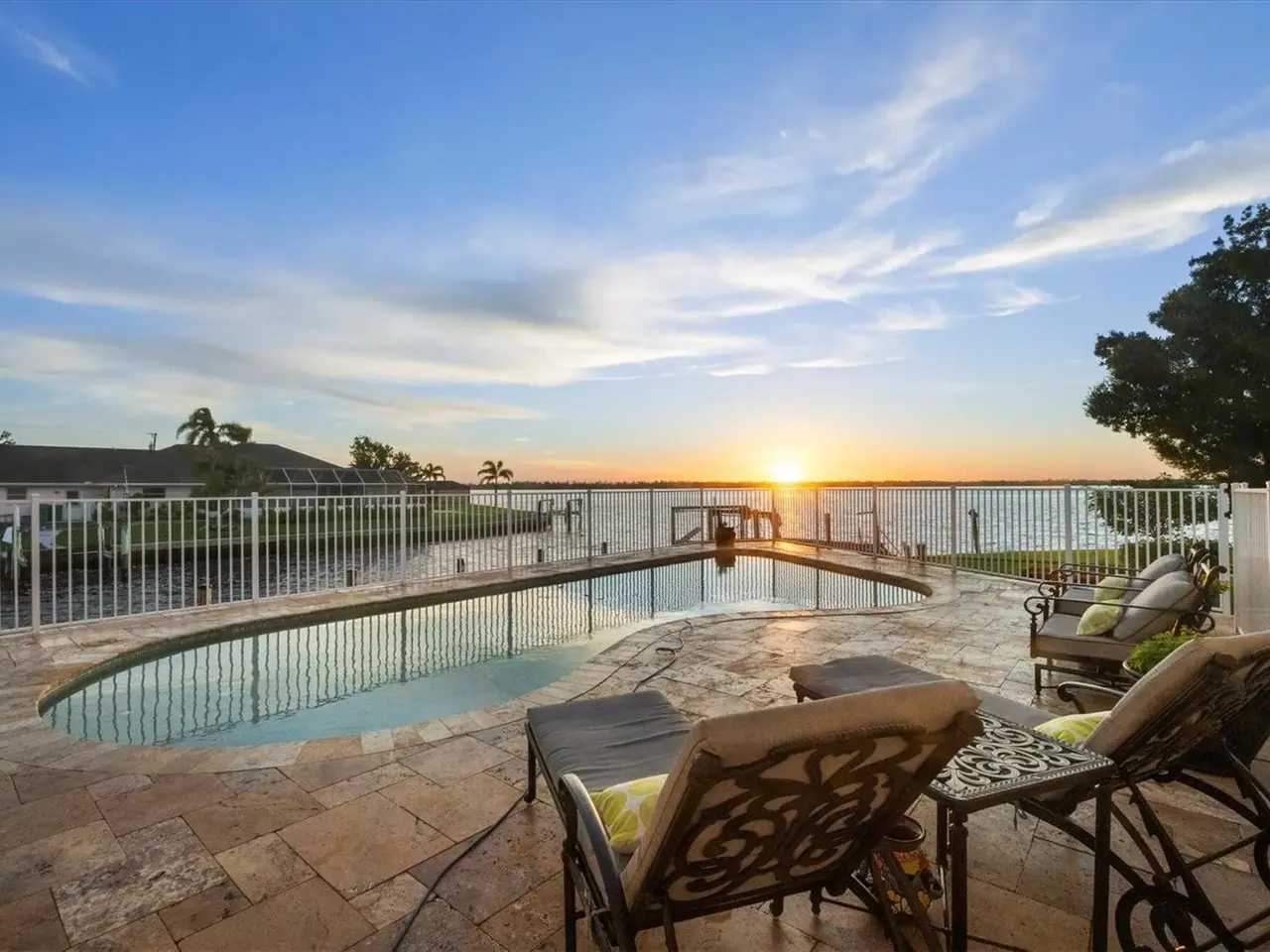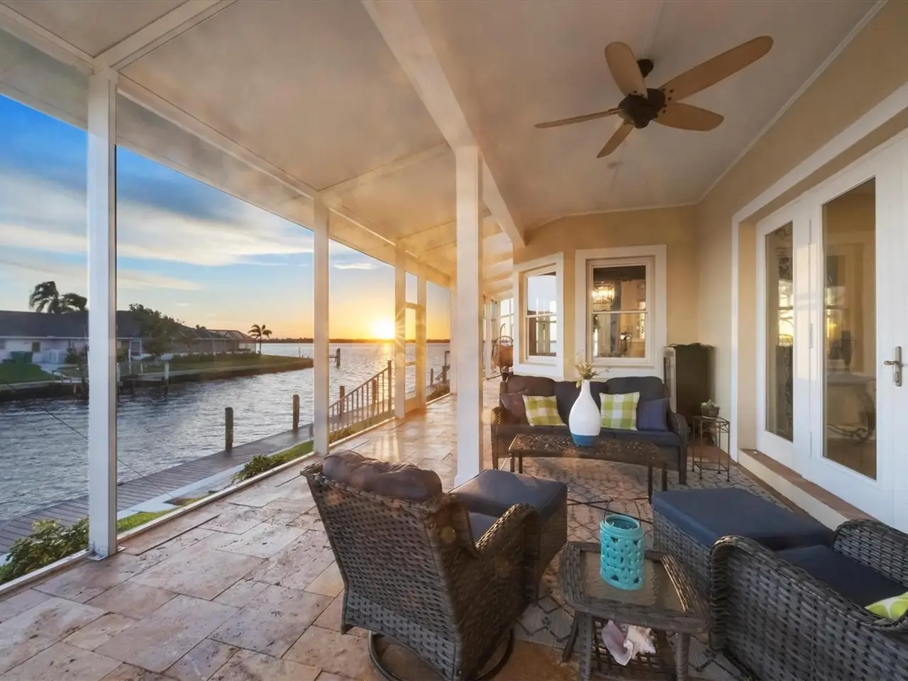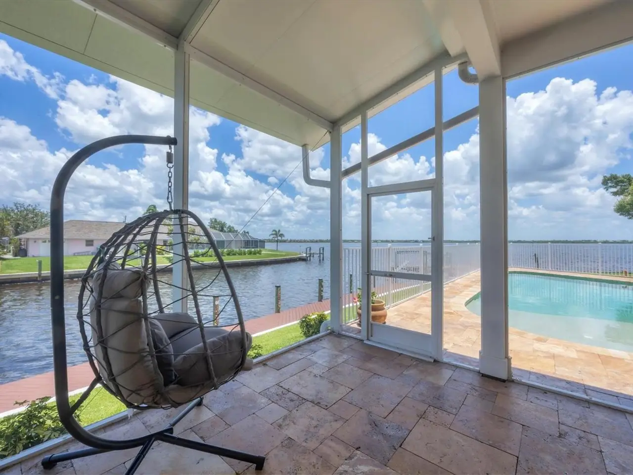 Introducing "River Breeze at Paradise Point" the whimsical name of this breathtaking property, affectionately bestowed by the current owners. This stunning waterfront estate, stretching across 0.39 acres, is perched along the Myakka River with quick access to Charlotte Harbor and a 30-minute boat ride to the Gulf. It's every boater's dream to the best fishing in Southwest Florida, featuring 185 feet of concrete seawall, a 167-foot captain's walk, and a 2023 metal-roofed boathouse with a 16,000 lb remote-controlled boat lift. Enjoy dolphin, manatee, and bald eagle sightings, or cast a line for record snook, world-renown tarpon, and redfish all from your backyard. The home offers 3,825 sq ft of living space and a spacious, well-organized 1,327 sq ft 4+ car garage with 10.5-foot ceilings. Inside, the soaring 20-foot foyer with a sweeping staircase leads into a bright music room with 12-foot bamboo tray ceiling, and an entertainer's dream kitchen featuring a massive quartz island, updated cabinetry, stainless appliances, and three built-in dishwashers. The kitchen flows seamlessly into the dining and bar areas and out to a 56-foot screened patio and extended lanai perfect for year-round indoor-outdoor living. Step out to the heated saltwater pool, surrounded by open-air lounge space ideal for relaxing in the Florida sunshine. The primary suite is a private retreat with a sitting area, two walk-in closets, a luxurious 14x14 bathroom with a 5x7 glass shower, and direct access to a private waterfront balcony. The primary guest suite also features a private balcony and river views. Every bedroom is en suite, ensuring comfort and privacy for guests. Throughout the home, enjoy travertine and engineered wood flooring with porcelain tile in 2nd level bathrooms, detailed crown molding, and abundant storage including multiple custom closets. Additional recent upgrades include a new standing seam metal roof (house and boathouse), two new A/C units with whole-home UV filtration, spray foam insulation, PECS plumbing system, impact-resistant windows and doors throughout, and fresh interior/exterior paint. The pool features a new heat pump, chlorine generator, and variable-speed pump, while rebuilt decks and upgraded kitchen and baths further elevate the home's quality and style. Tucked away in Gulf Cove, a hidden gem community known for its quiet streets, friendly neighbors, and walkable, bike-friendly atmosphere, this exceptional home offers luxury, comfort, and breathtaking water views delivering unmatched waterfront living in a peaceful coastal setting.