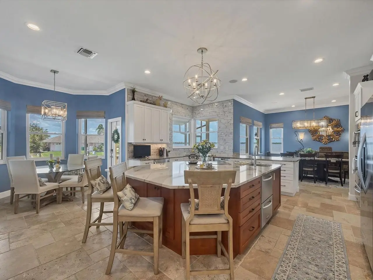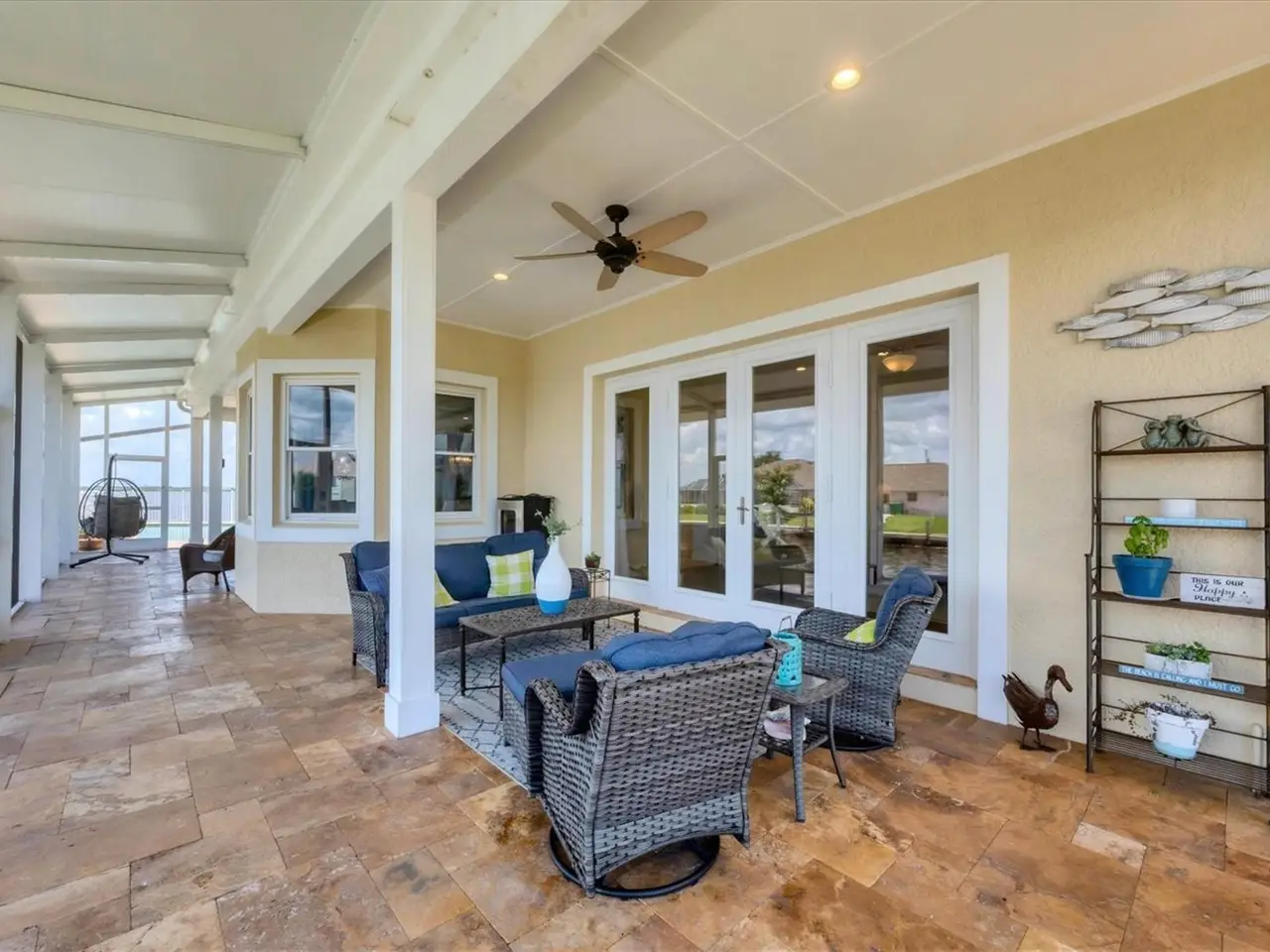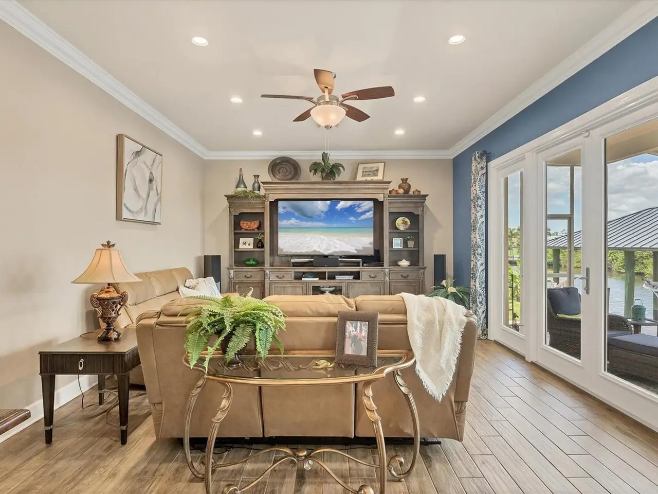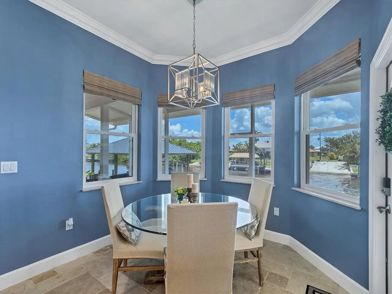 Introducing "River Breeze at Paradise Point" the whimsical name of this breathtaking property, affectionately bestowed by the current owners. This stunning waterfront estate, stretching across 0.39 acres, is perched along the Myakka River with quick access to Charlotte Harbor and a 30-minute boat ride to the Gulf. It's every boater's dream to the best fishing in Southwest Florida, featuring 185 feet of concrete seawall, a 167-foot captain's walk, and a 2023 metal-roofed boathouse with a 16,000 lb remote-controlled boat lift. Enjoy dolphin, manatee, and bald eagle sightings, or cast a line for record snook, world-renown tarpon, and redfish all from your backyard. The home offers 3,825 sq ft of living space and a spacious, well-organized 1,327 sq ft 4+ car garage with 10.5-foot ceilings. Inside, the soaring 20-foot foyer with a sweeping staircase leads into a bright music room with 12-foot bamboo tray ceiling, and an entertainer's dream kitchen featuring a massive quartz island, updated cabinetry, stainless appliances, and three built-in dishwashers. The kitchen flows seamlessly into the dining and bar areas and out to a 56-foot screened patio and extended lanai perfect for year-round indoor-outdoor living. Step out to the heated saltwater pool, surrounded by open-air lounge space ideal for relaxing in the Florida sunshine. The primary suite is a private retreat with a sitting area, two walk-in closets, a luxurious 14x14 bathroom with a 5x7 glass shower, and direct access to a private waterfront balcony. The primary guest suite also features a private balcony and river views. Every bedroom is en suite, ensuring comfort and privacy for guests. Throughout the home, enjoy travertine and engineered wood flooring with porcelain tile in 2nd level bathrooms, detailed crown molding, and abundant storage including multiple custom closets. Additional recent upgrades include a new standing seam metal roof (house and boathouse), two new A/C units with whole-home UV filtration, spray foam insulation, PECS plumbing system, impact-resistant windows and doors throughout, and fresh interior/exterior paint. The pool features a new heat pump, chlorine generator, and variable-speed pump, while rebuilt decks and upgraded kitchen and baths further elevate the home's quality and style. Tucked away in Gulf Cove, a hidden gem community known for its quiet streets, friendly neighbors, and walkable, bike-friendly atmosphere, this exceptional home offers luxury, comfort, and breathtaking water views delivering unmatched waterfront living in a peaceful coastal setting.