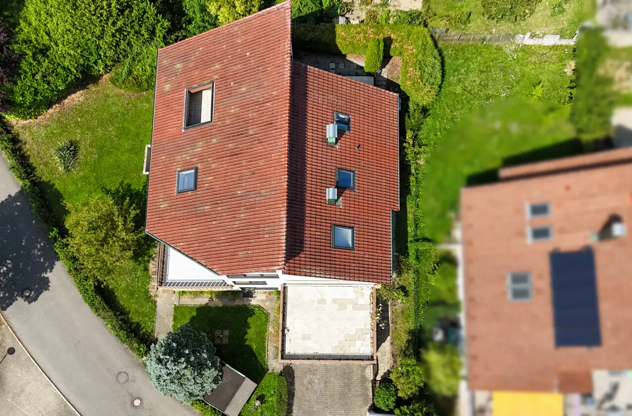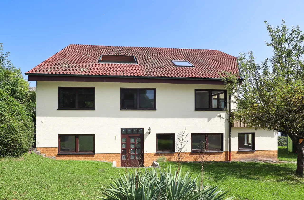 In a quiet residential area of Pliezhausen, this spacious detached house with a large granny apartment offers around 340 m² of living space on a plot of around 742 m². The property not only offers plenty of space for comfortable living, but also numerous possible uses - whether for renting, families, freelancers or multi-generational living. Built in 1984, the house boasts a well thought-out room layout over several levels and is in a well-kept condition overall. Several modernizations have taken place in recent years, such as: (replacement of oil heating approx. 12 years ago, kitchens, as well as the replacement of some windows). The separate granny apartment in the basement with approx. 90 m2 of living space consists of a kitchen, 3 bedrooms, children's room/office, a bathroom and a storage room - ideal for use as a separate residential unit or for a freelance business. The apartment has a terrace. The first floor impresses with a spacious, bright and open living area. The separate, open kitchen is directly adjacent to the dining room. A bedroom, a children's room, an office and a separate living room with an additional office round off the space on this level. There is also a bathroom, a separate guest WC and a large terrace on this floor. The converted top floor offers further living space. Here there is a small wellness area including a sauna, a bathroom and three bedrooms, one of which has a beautiful roof terrace. The property has a total of four bathrooms, ensuring maximum living comfort for families or multi-generational use. Heating is provided by oil-fired central heating, which was renewed in 2013. A double garage is also available. Come and view this beautiful detached house with separate granny apartment in an attractive location for yourself. Feel free to make an appointment - we look forward to hearing from you!