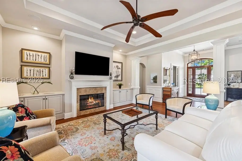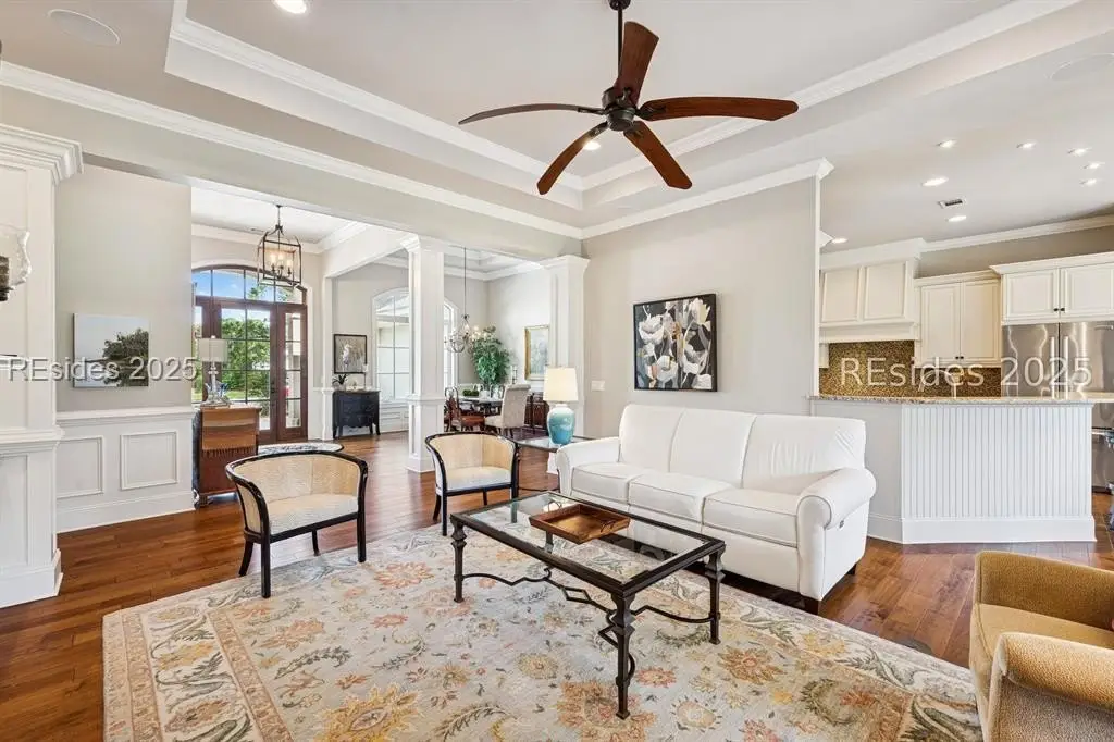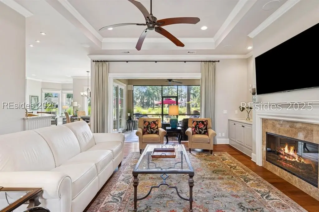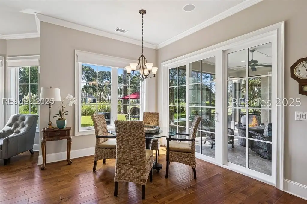 Built in 2015, this 2,800 sq ft home features 3 bedrooms, 2.5 bathrooms, and sits on a large homesite with plenty of room for a private pool. Enjoy beautiful golf-to-lagoon views from your backyard on the 2nd hole of Belfair's West Course. Inside, the open concept floor plan includes spacious living and dining areas filled with natural light. A screened porch with a wide pocket door slider extends your living space outdoors - perfect for entertaining or relaxing year-round. The home also features a multizone HVAC system, providing efficient climate control and comfort throughout. The unfinished bonus room over the 2.5 car garage offers excellent walk-in storage and can easily be finished for nearly 390 sq ft of additional heated living space. This property is ideal for buyers seeking a newer home in Belfair with golf course views, room to expand, and a private setting. Community amenities include two Tom Fazio championship courses, fitness center, tennis, pickleball, resort-style pools, walking trails, a great location within Bluffton and minutes to Hilton Head Island.