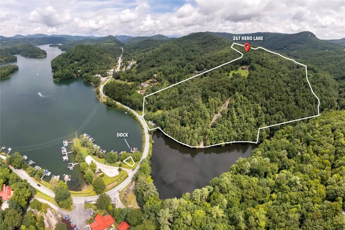 Opportunities like this don't come around every day! Owned by the same family for generations, now ready for the next chapter! Imagine living in a log cabin perched on a hill with breathtaking views of Lake Glenville, framed by the Blue Ridge Mountains. From this incredible vantage point, the home is nestled within approximately 112 acres of peaceful privacy. Designed for outdoor living, it features wraparound decking, a large grassy yard, and a patio with a fire pit. Relax on the deck and watch boats on the lake or gather with loved ones for cozy evenings by the fire. Inside, the traditional log cabin charm is highlighted by oversized windows that reveal the natural beauty of your surroundings. A stone fireplace adds warmth to the inviting great room. An upstairs loft and additional living space downstairs provide ample room to spread out and entertain guests. In addition to the exceptional views, the expansive property features pond and stream frontage. Direct access to Jenkins Lake is the perfect spot to add a dock for fishing or simply as a launching pad for your pups to enjoy the cool, refreshing water. For those looking to build a custom creation, this home is a great starting point for constructing a dream home on the property, with an excellent, flat building site located just above the house. The site is just one of many on the property, offering privacy, a usable yard, and breathtaking long-range views of the mountains and lake. Located just minutes from downtown Cashiers, this large tract of land offers endless possibilities. Whether creating a family compound, exploring development opportunities with potential homesites providing stunning views, or enjoying it as a private mountain retreat, the property delivers unmatched versatility. And with a successful vacation rental history, the home provides an immediate opportunity. It is a haven for outdoor enthusiasts, complete with hiking and UTV trails within the private property, easy access to Lake Glenville, and the cozy town of Cashiers. The home has two boat slips at Cedar Point that are not included but could be purchased. The possibilities of this property are truly limitless!