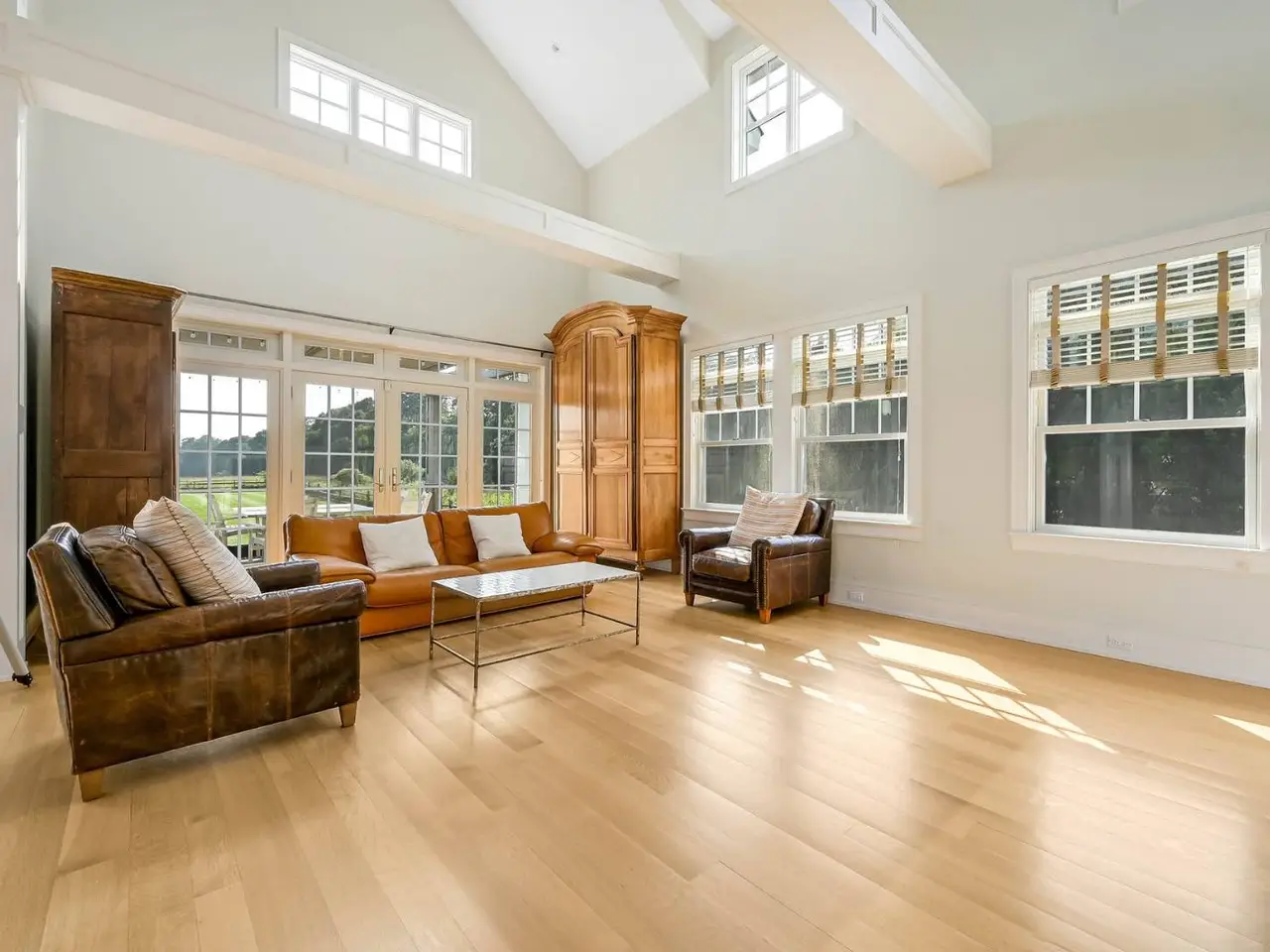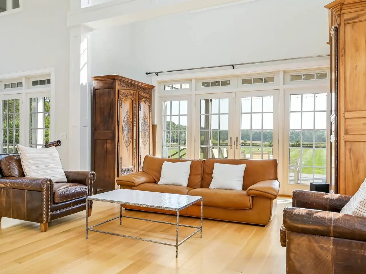 Located near Main Beach and Main Street, this 3,000 sq ft custom home (plus 2000 sq ft lower level) sits in East Hampton's coveted Dune Alpin Farm. The open floor plan includes a double-height living room, den, dining area, and kitchen-all overlooking a 17-acre equestrian reserve. Features include radiant heat floors, double fireplace, and a light-filled lower level with full bath, office, gym, den, and fireplace. Enjoy a heated gunite pool, 2-car garage, and access to common tennis. A rare offering with exceptional views.