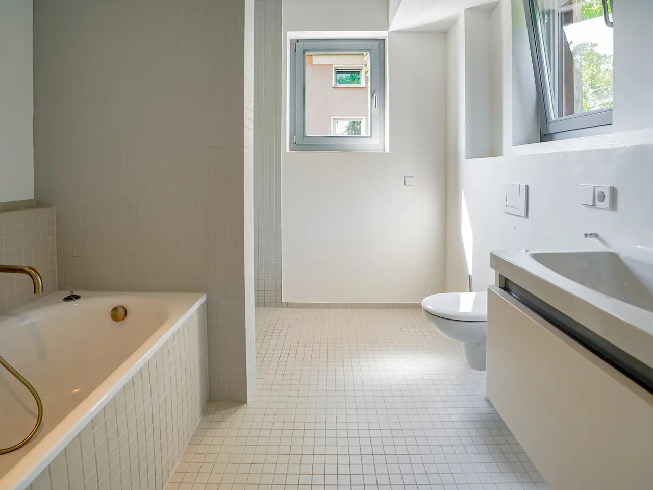 • Generously proportioned bathroom with floor-level shower and bathtub