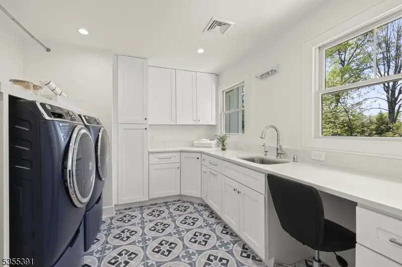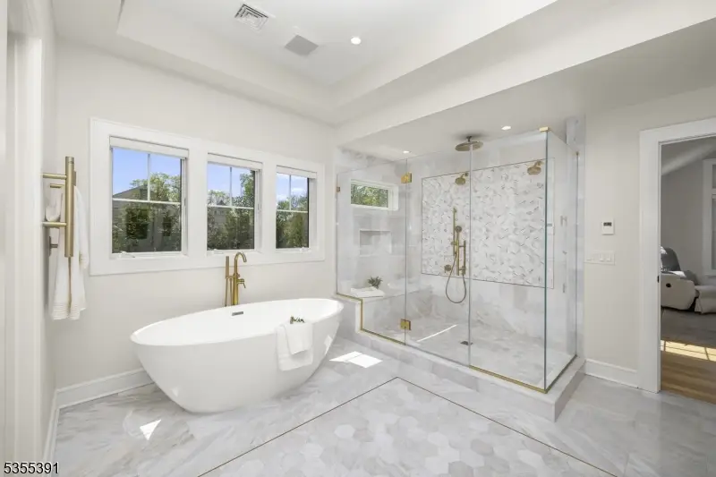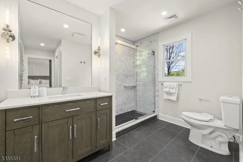 Welcome to this stunning, architect-designed luxury home in the prestigious Hartshorn section of Short Hills. Fully gut-renovated within the last two years by renowned architect Tom Baio, this 6-bedroom, 6.5-bath residence offers exceptional craftsmanship, thoughtful design, and modern amenities. The expansive floor plan includes a first-floor guest suite and ensuite baths in every bedroom. The chef's kitchen features custom Omega cabinetry with built-in inserts, an oversized quarter-sawn white oak island, quartzite countertops and backsplash, a Wolf 48 range, Sub-Zero 60 refrigerator/freezer, two dishwashers, and a large walk-in pantry with a second dishwasher and mirrored coffee bar backsplash. Enjoy indoor-outdoor living with sliding doors that open to a fully fenced, flat backyard with a bluestone patio, gas line for grill or firepit, and room for a pool. The primary suite on the offers vaulted ceilings, a private balcony, a spa-like marble bath with radiant floors, a soaking tub, and two walk-in closets with a center island and dressing area. Additional highlights include white oak floors, two fireplaces, a surround sound system (interior and exterior), 3-car heated garage, Andersen 400 series windows and doors, a circular driveway, and HardiePlank/Azek siding. Featuring heated bidet toilets, instant hot/cold filtered water in kitchen and second-floor laundry no detail is spared. Conveniently located near public transportation, Gero parks, shopping, and top-rated schools.