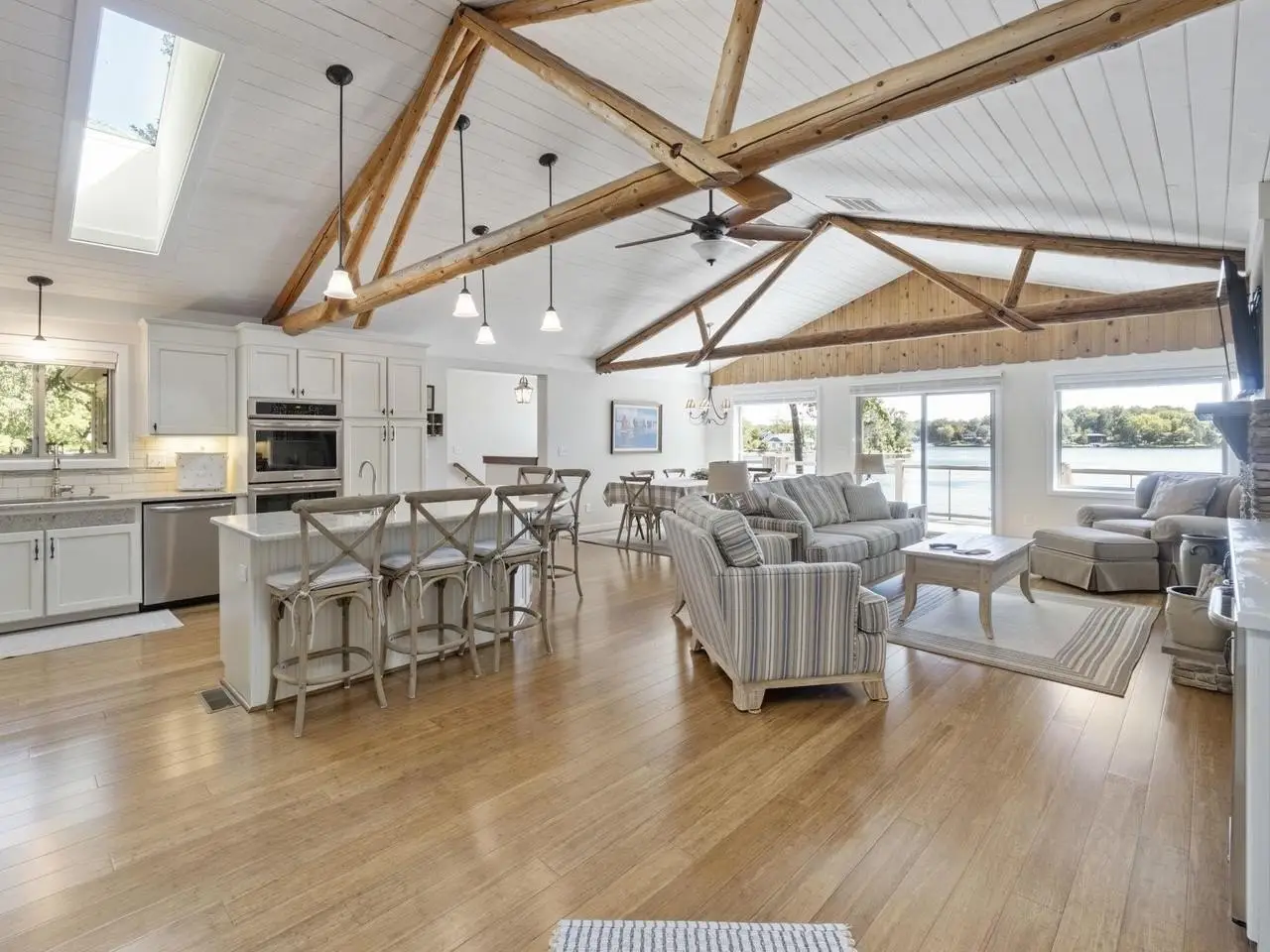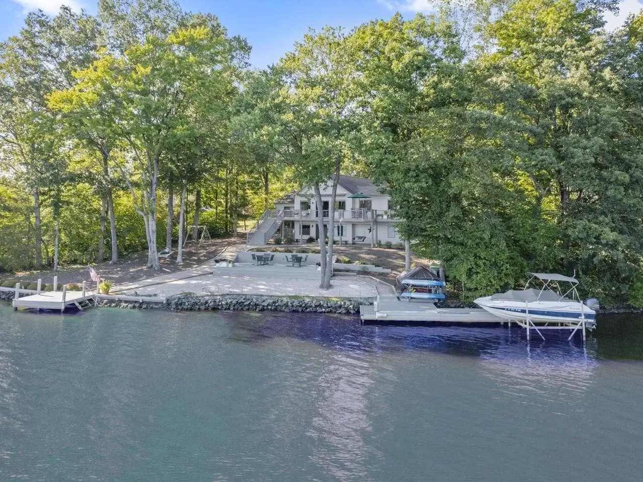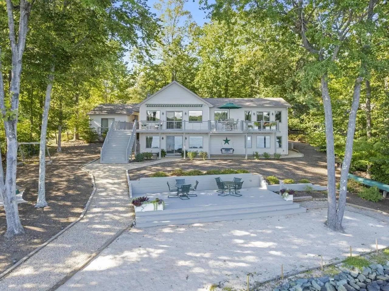 Exceptional lakefront living awaits with this beautifully remodeled and meticulously maintained residence, perfectly situated on 180 feet of pristine open water frontage. Designed for both elegance and enjoyment, the property offers breathtaking moonlit evenings from expansive outdoor living areas, including a spacious main deck, larger lower deck, and professionally landscaped grounds. The private waterfront features two docks, a boat lift, and a sandy beach ideal for recreation and gatherings. With its rare level lot, the walk to the water is effortless, enhancing both convenience and lifestyle. Inside, the home showcases thoughtful upgrades and tasteful finishes throughout, reflecting the highest standards of care and quality. Its prime location provides quick access to the main gate, clubhouse, beach, and playground?offering both privacy and proximity to community amenities. This distinguished property combines prestige, comfort, and unrivaled access to Lake Monticello?s most coveted open water setting.,Granite Counter,Fireplace in Great Room