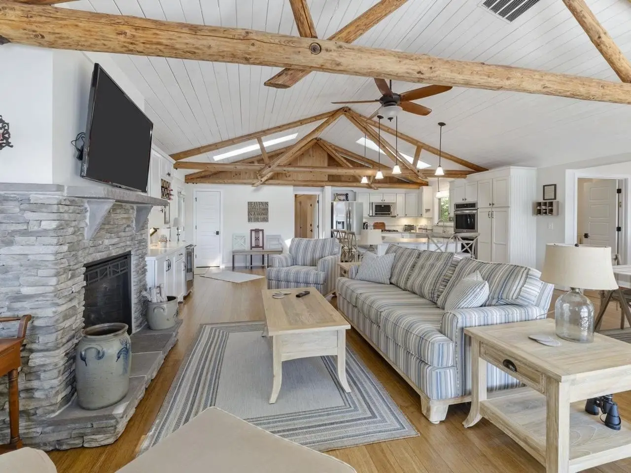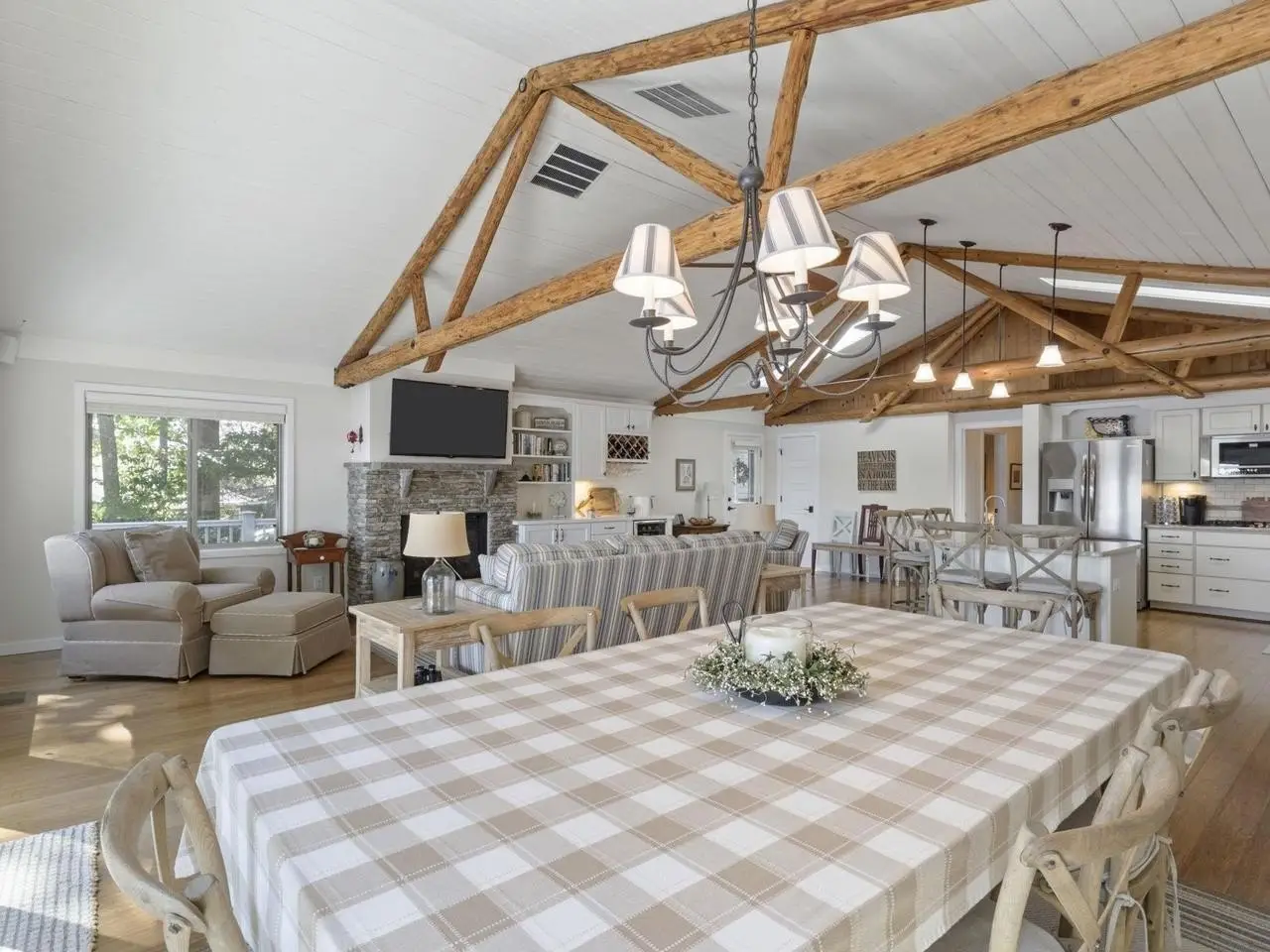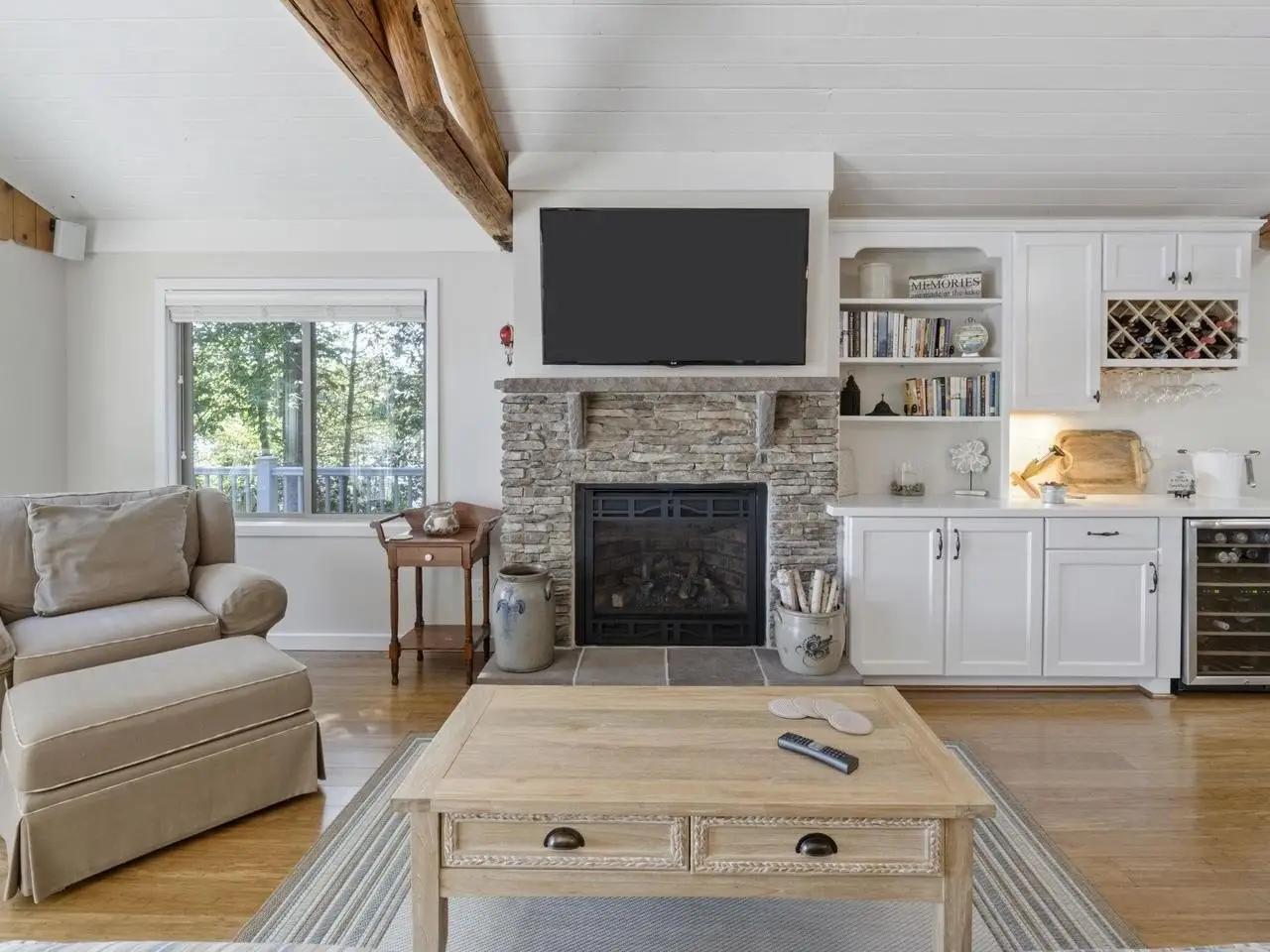 Exceptional lakefront living awaits with this beautifully remodeled and meticulously maintained residence, perfectly situated on 180 feet of pristine open water frontage. Designed for both elegance and enjoyment, the property offers breathtaking moonlit evenings from expansive outdoor living areas, including a spacious main deck, larger lower deck, and professionally landscaped grounds. The private waterfront features two docks, a boat lift, and a sandy beach ideal for recreation and gatherings. With its rare level lot, the walk to the water is effortless, enhancing both convenience and lifestyle. Inside, the home showcases thoughtful upgrades and tasteful finishes throughout, reflecting the highest standards of care and quality. Its prime location provides quick access to the main gate, clubhouse, beach, and playground?offering both privacy and proximity to community amenities. This distinguished property combines prestige, comfort, and unrivaled access to Lake Monticello?s most coveted open water setting.,Granite Counter,Fireplace in Great Room