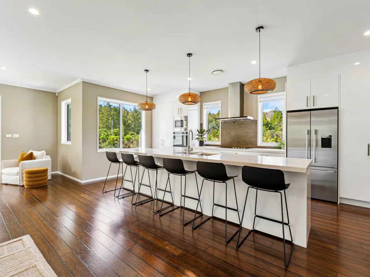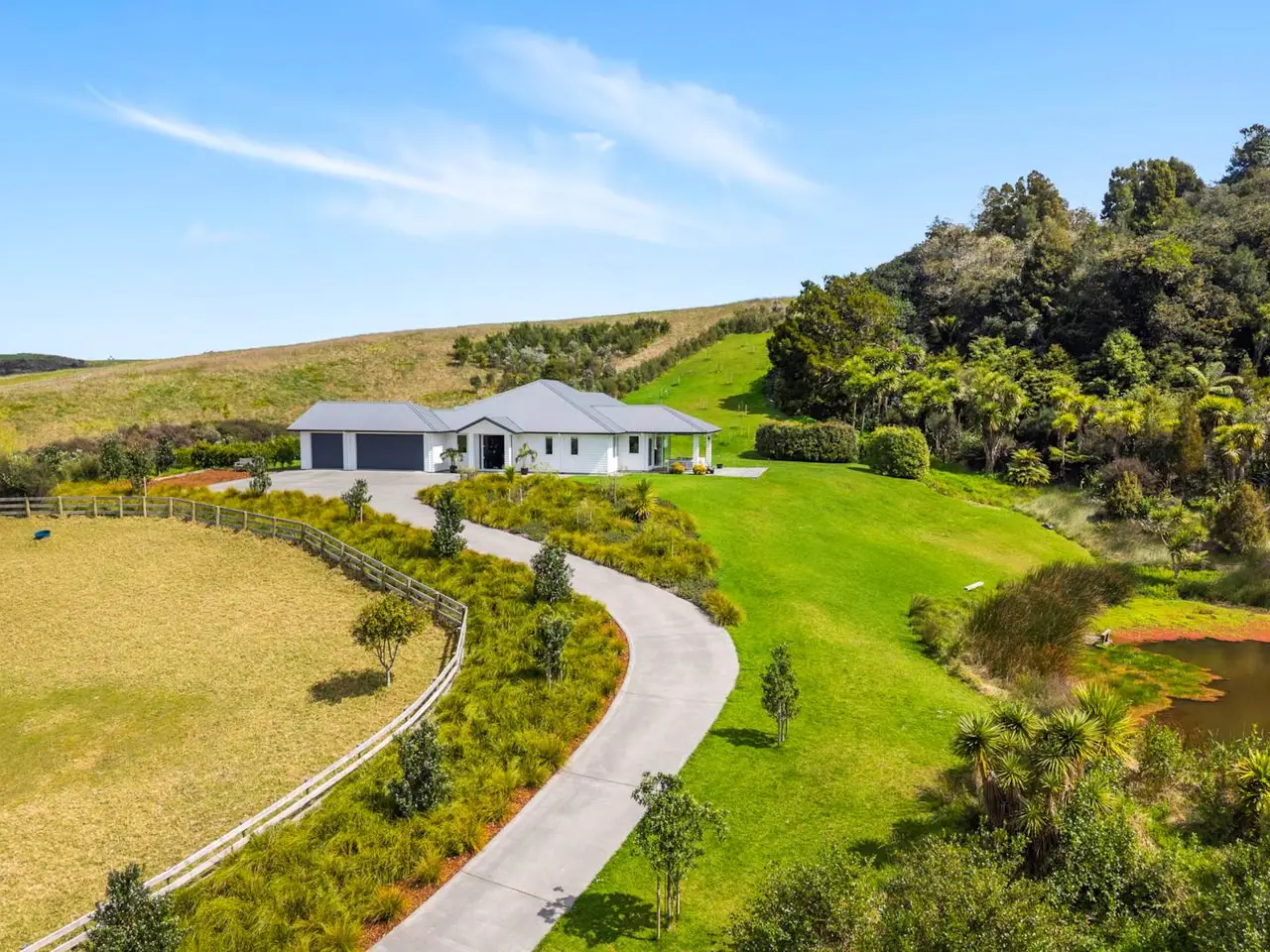 Dairy Flat is renowned for its impressive properties with generous sized sections whilst being moments from state highway one. 108 Tender Road is no exception. Escape the chaos of a busy working day with a drive that restores wellbeing and calm. The beguiling approach builds anticipation, knowing that your arrival will quench your thirst for a luxury retreat for yourself, your family and friends. This magnificent home does not disappoint, built in 2015 set on a pristine 2.7168 ha block, every inch of this 335m² abode affords expansive rooms with panoramic rural views on every aspect. Crafted for effortless living, this single level residence boasts high-stud ceilings, rich wooden floors, and a huge open plan living, kitchen, dining area with an island large enough to seat all of the family. This expansive room spills outdoors to a covered patio and deck overlooking your own private lake surrounded by native bush, wetlands and birdsong all in glorious north facing sunshine. Two more spacious living rooms, four double bedrooms, including a sumptuous master suite are accompanied by two large fully tiled bathrooms, triple-car garaging, and a separate laundry. The layout is both generous and practical. And that’s not all.... down the drive is a show-stopping ‘man cave’, perfect for more cars, hobbies, storage for sports equipment, or even a home gym. Elevated and private, fully fenced with gated entry, rolling lawns, wetlands and wildlife, a paddock for livestock or pets, and incredible indoor-outdoor flow. This is more than just a property, 108 Tender Road radiates mana, a spiritual sense that will resonate with everyone who comes to visit. Deadline sale: Closes on Wednesday 22 October 2025 at 1:00PM (unless sold prior)