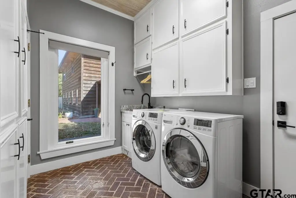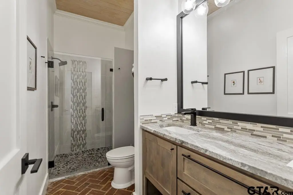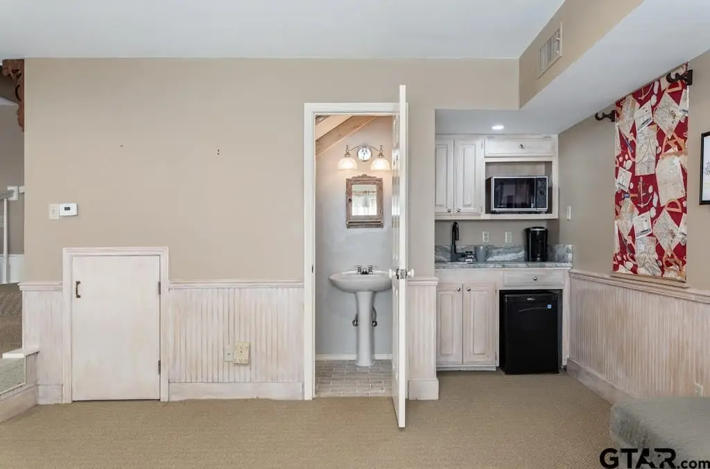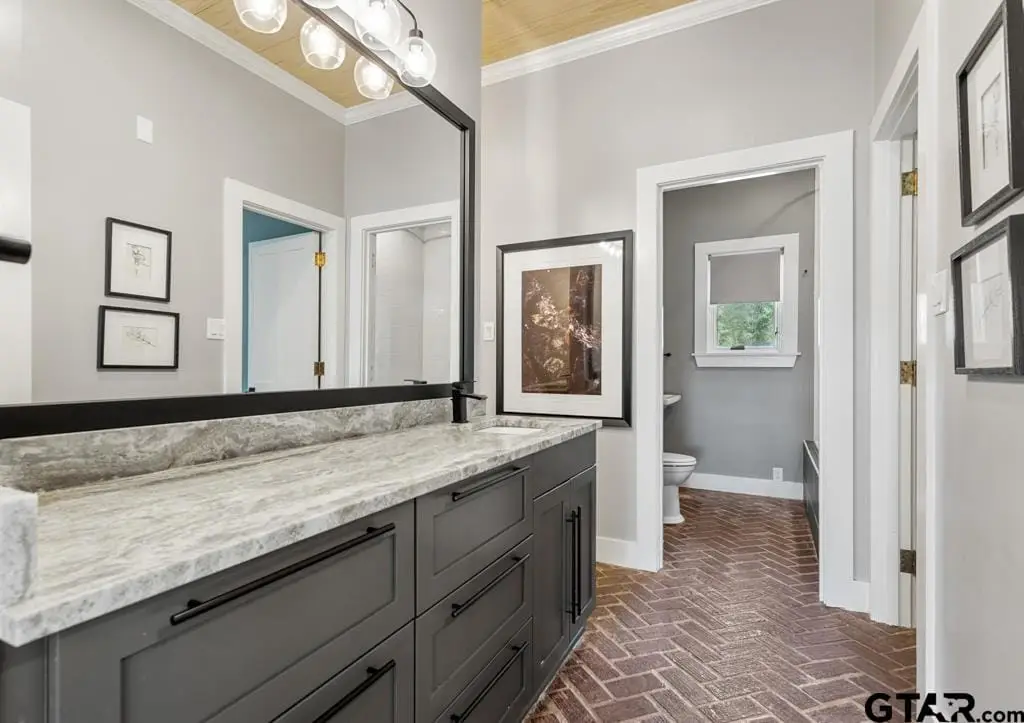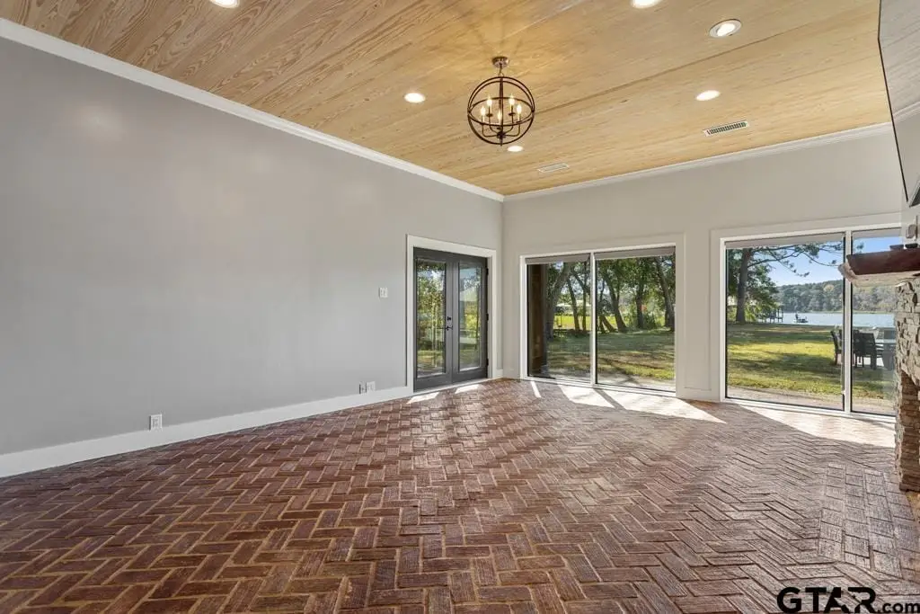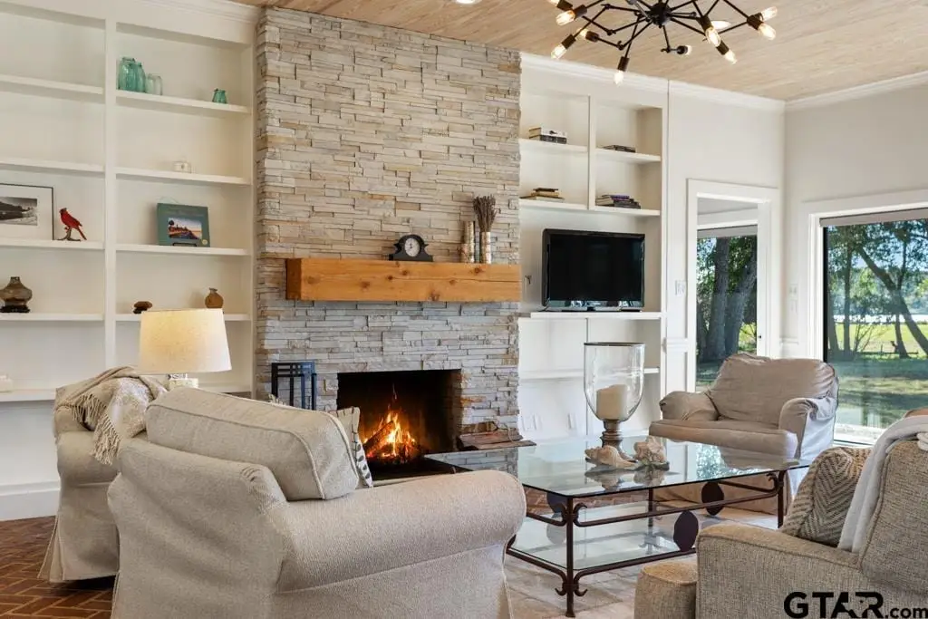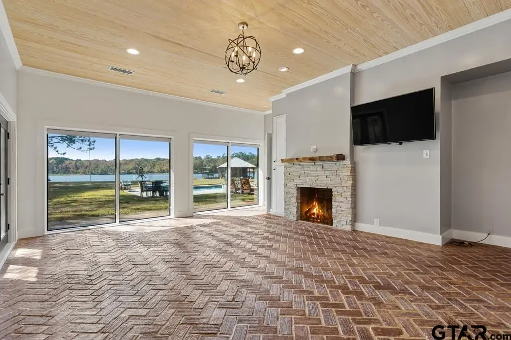 Fabulous gated Lake Tyler dream property offering deep water, a quiet dead-end cul-de-sac location, and a beautifully level lot with exceptional outdoor amenities. Enjoy a gunite pool and hot tub, plus an impressive boathouse with storage, double lifts, and generous covered and open lounging areas'perfect for lake living. The one-level main home features a huge primary suite with fireplace, his-and-hers private baths, and an open living, kitchen, and dining layout'each showcasing big water views. The living area includes a fireplace, custom built-ins, brick floors, wood ceilings, and custom fixtures throughout. The dream kitchen offers extensive workspace and cabinetry, double Bosch convection ovens, built-in refrigerator, wine fridge, ice maker, and a warming drawer, creating outstanding flow for entertaining. A private guest suite offers comfort and privacy, while the separate guest house connected by a covered walkway'adds three additional bedrooms and three and a half baths, ideal for multi-generational living or extended stays. Quality construction shines throughout with 2x6 insulated walls, custom 4-panel doors, tall ceilings, and Pella windows. A rare opportunity to own a truly exceptional Lake Tyler retreat designed for comfort, luxury, and unforgettable lakeside living.