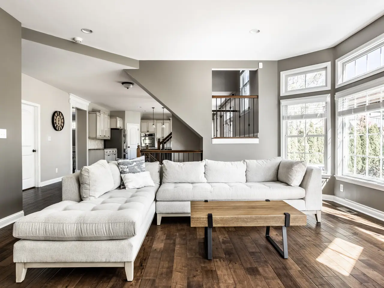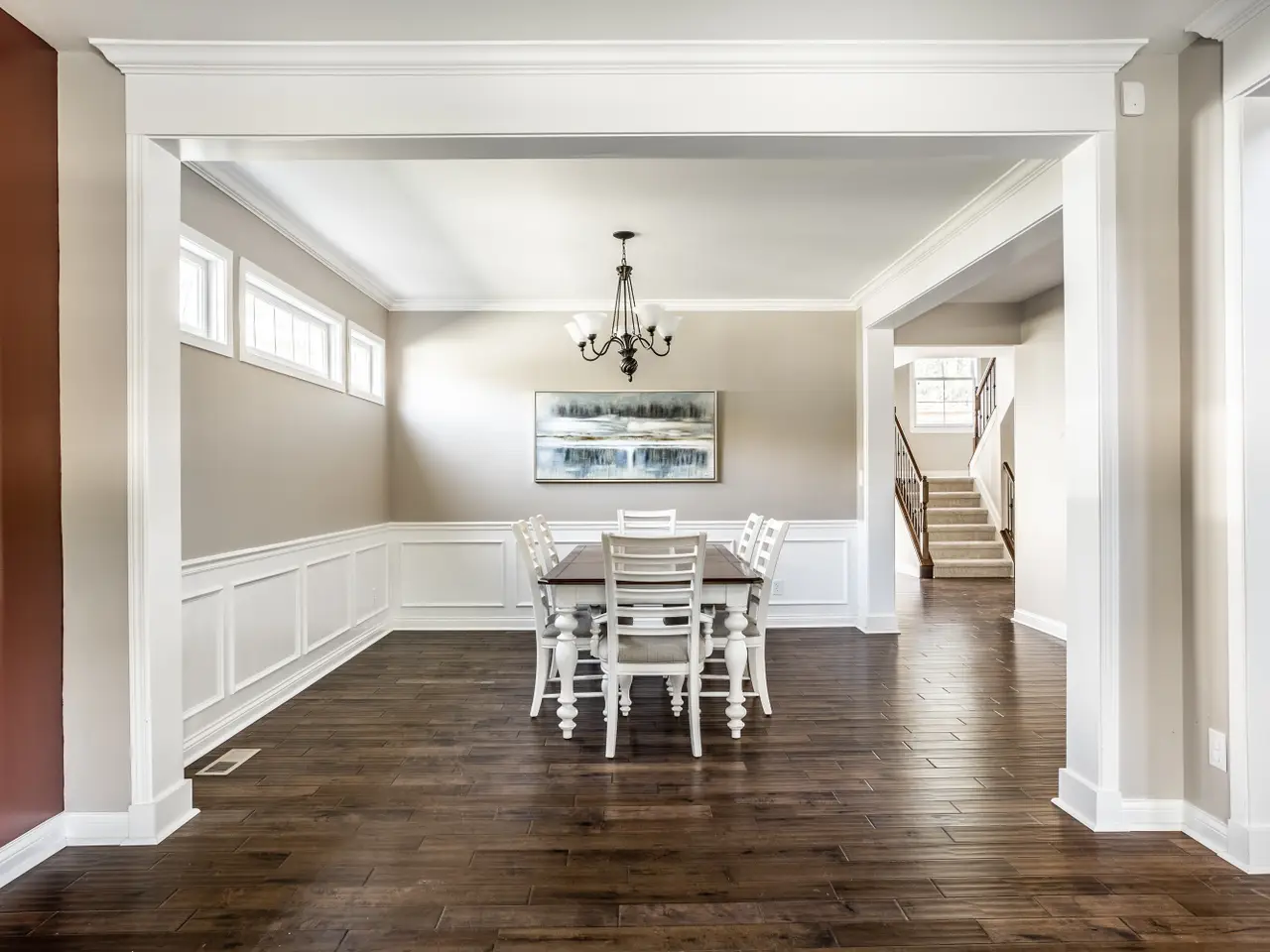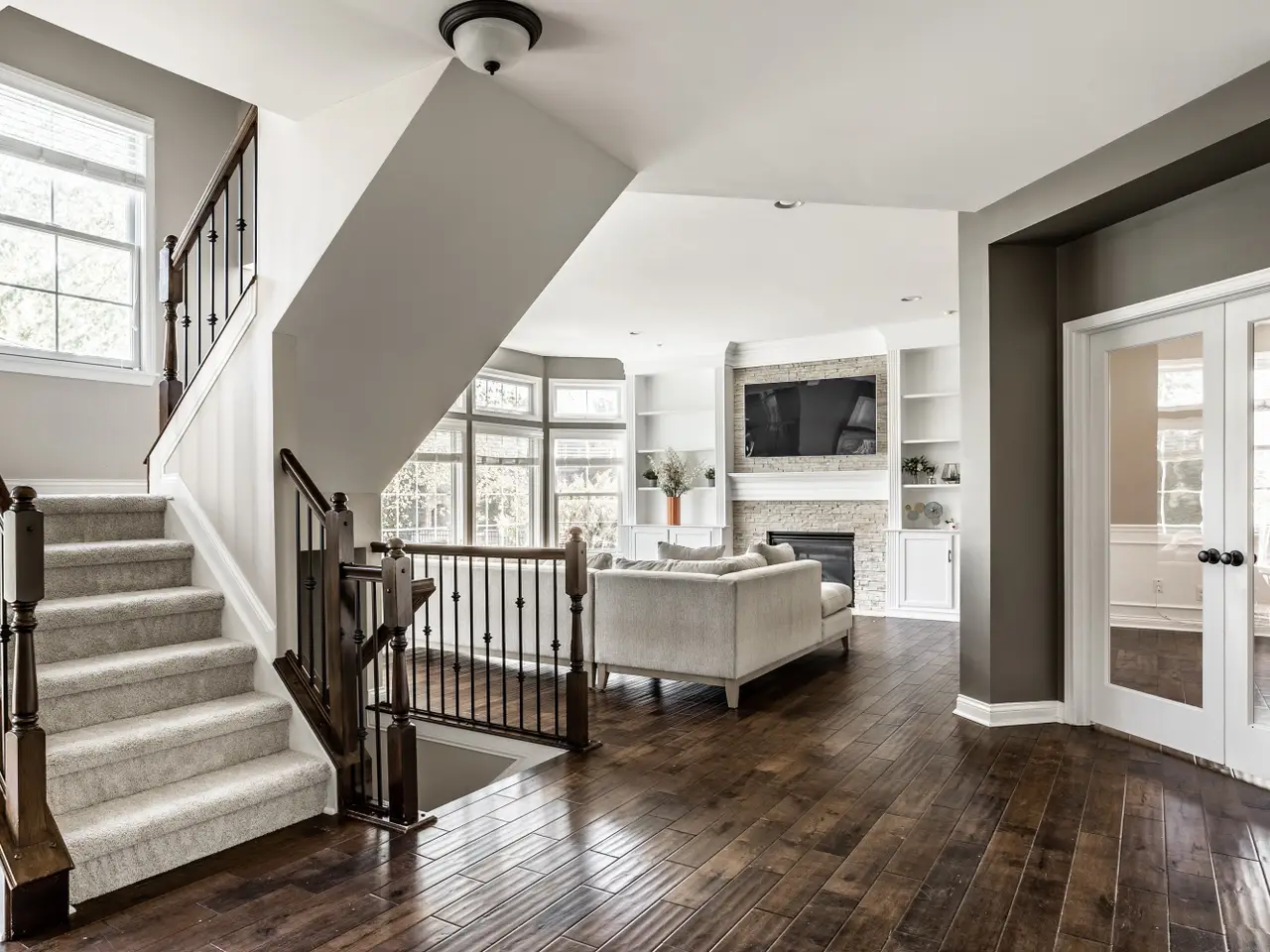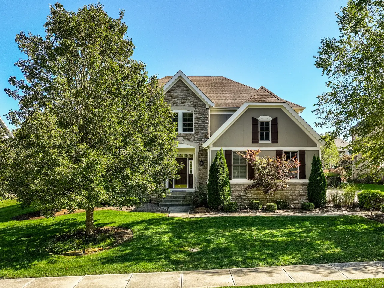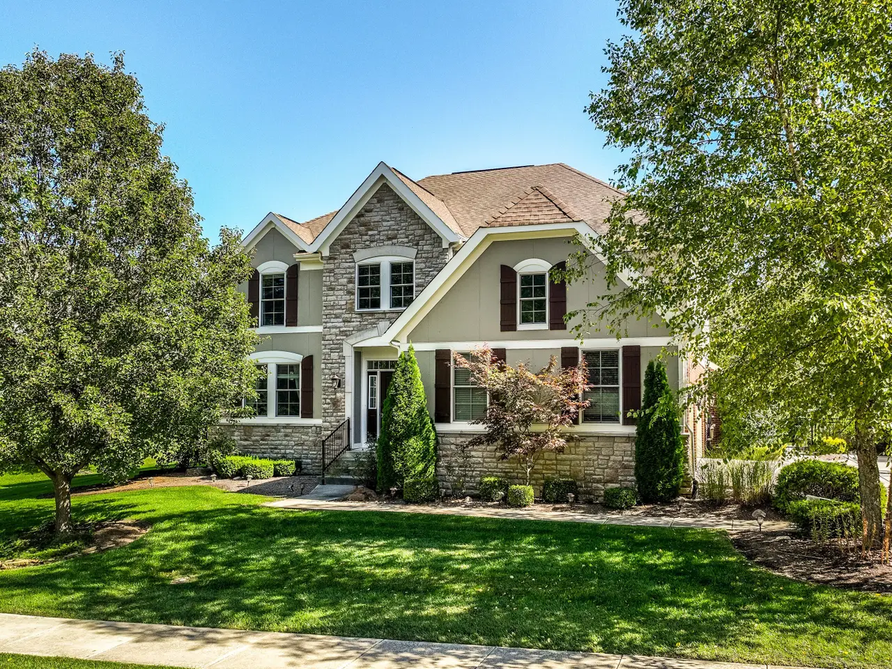 Exceptional curb appeal welcomes you to this rare 5-bedroom, 4.5-bath home on the desirable west side of Carmel. Step through the grand two-story entry into a bright, open layout that perfectly blends elegance and comfort. The formal dining room with wainscoting and transom windows opens to a versatile living or flex room, ideal for entertaining or quiet conversation. Throughout the main level, 9-foot ceilings and hand-scraped maple hardwood floors create warmth and sophistication. The gourmet kitchen impresses with antique white cabinetry, granite countertops, a large center island, stainless steel appliances (including double ovens), and a breakfast nook that flows into the sun-filled great room with a stone gas fireplace, custom built-ins, and a wall of windows overlooking the private backyard. A spacious home office with French doors offers privacy while staying connected to the main living area. Upstairs, new carpet leads to a loft with built-ins-perfect for a second office or study area. The luxurious primary suite features a cozy sitting area, while the spa-inspired bath offers dual vanities, a garden tub, glass shower, and his-and-hers walk-in closets. Three additional bedrooms include a Jack-and-Jill bath and a private en suite. The finished basement boasts 9-foot ceilings, luxury vinyl plank flooring, a wet bar with granite countertops and wine rack, stone fireplace, and barn doors-plus and a pool table. A movie room, fifth bedroom, full bath, and ample storage complete the lower level. Step outside to a large open patio overlooking a fully fenced backyard, perfect for outdoor dining or entertaining. Located in award-winning Carmel school district, close to restaurants, shopping, and major highways for an easy commute to downtown Indianapolis. Don't miss your chance to own this stunning Carmel home-schedule a showing today! This is the one you've been waiting for!