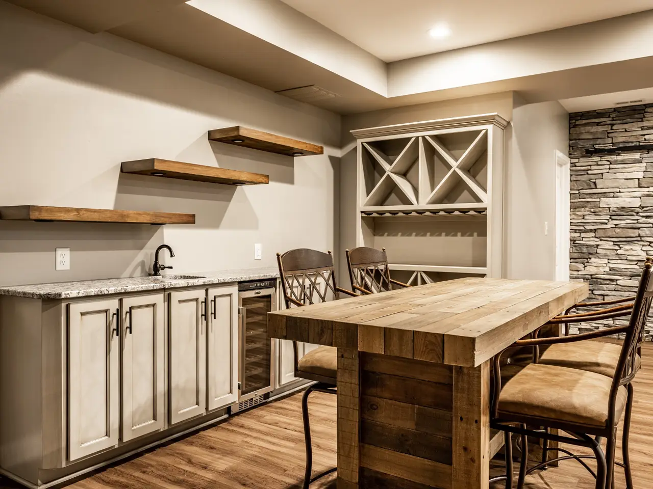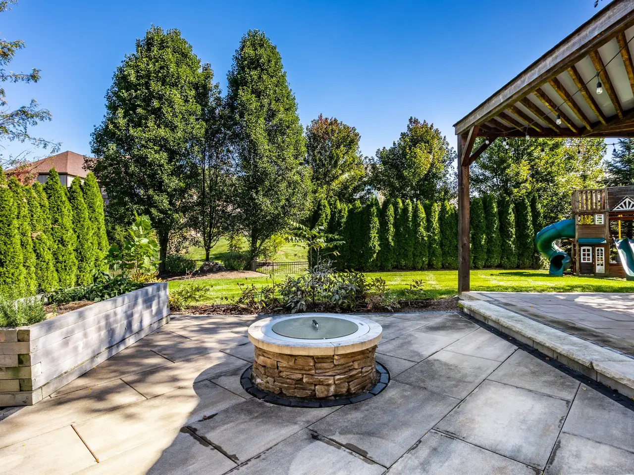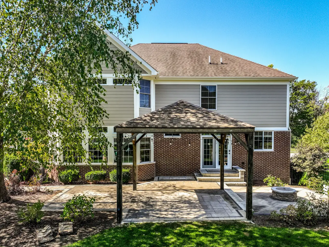 • Finished basement with wet bar and stone fireplace