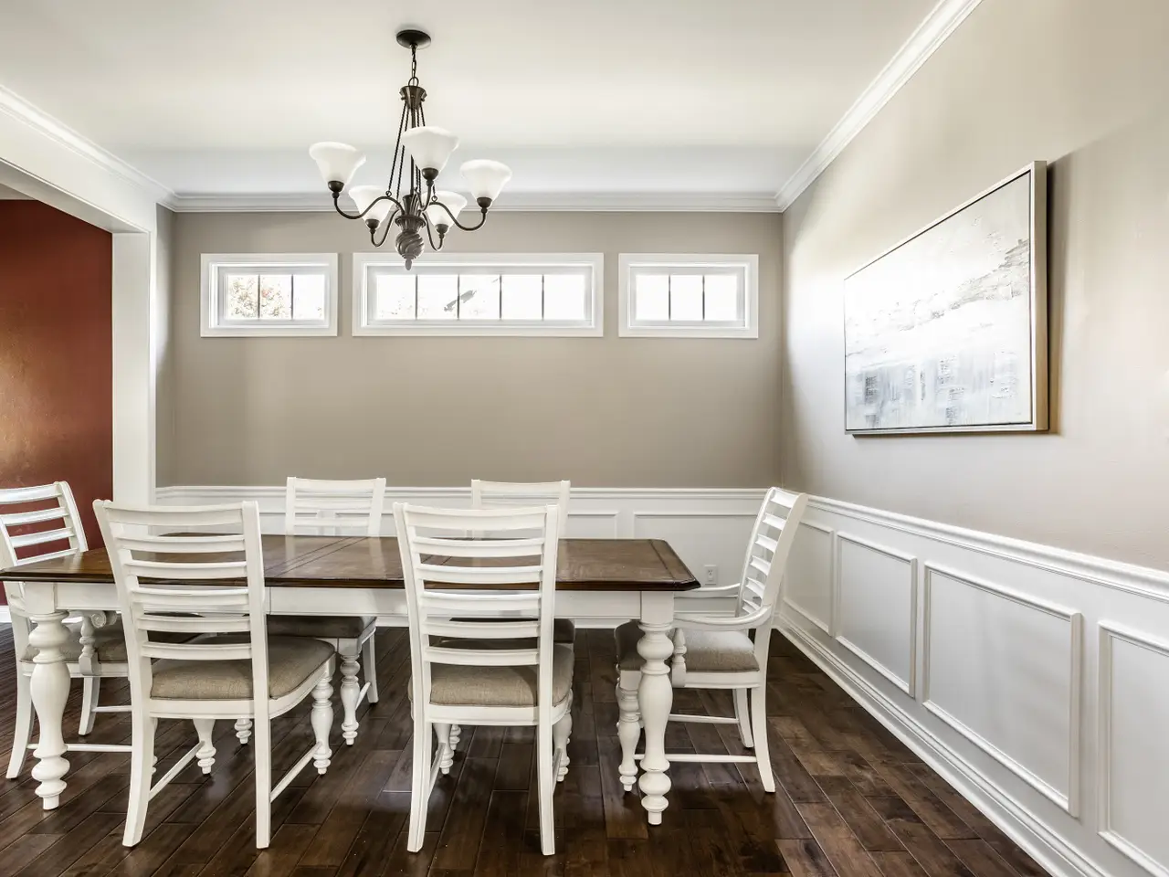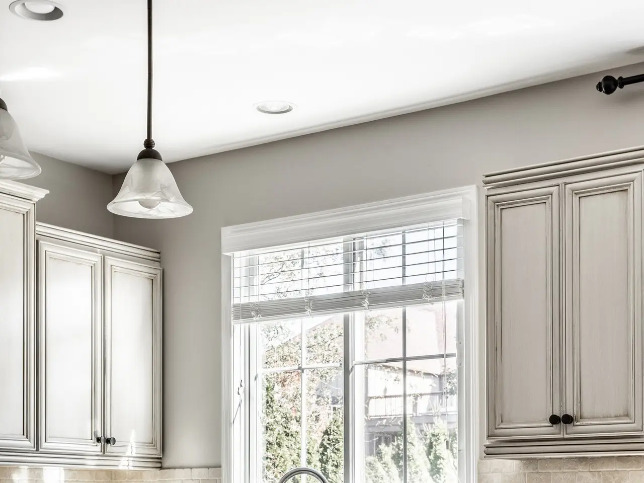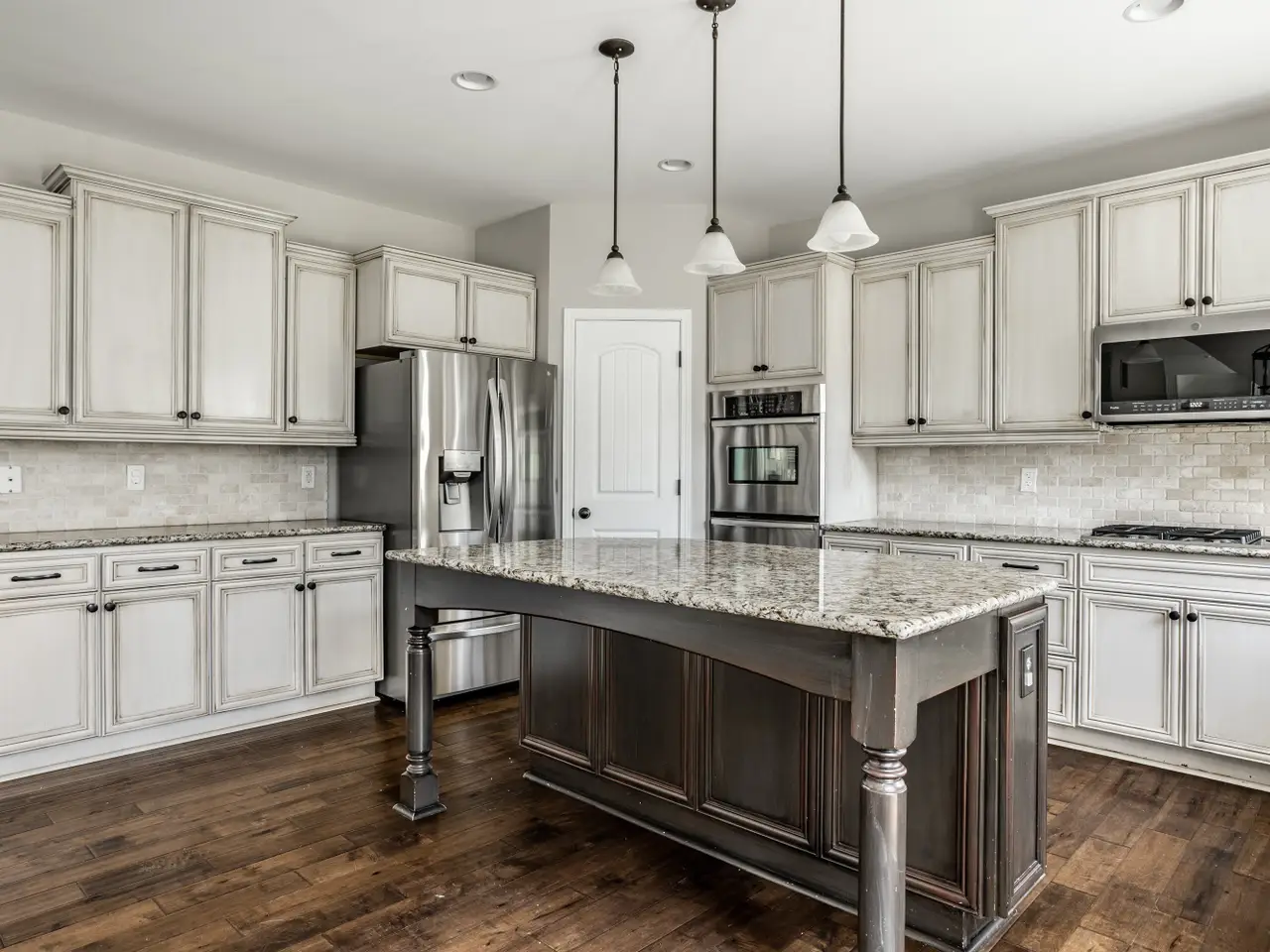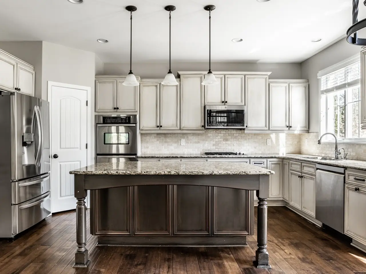 • Antique white cabinetry