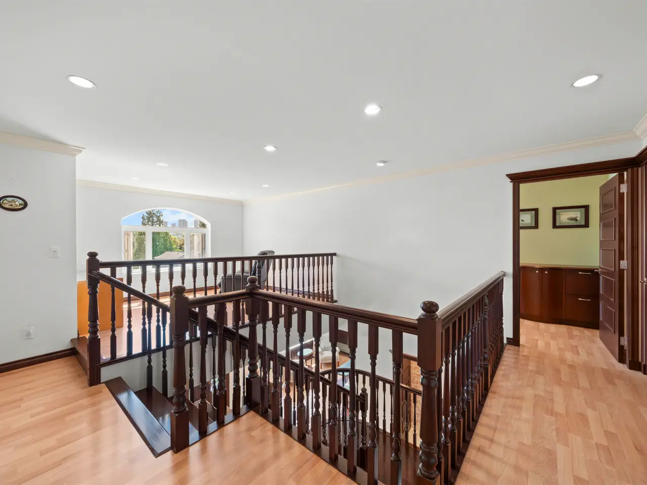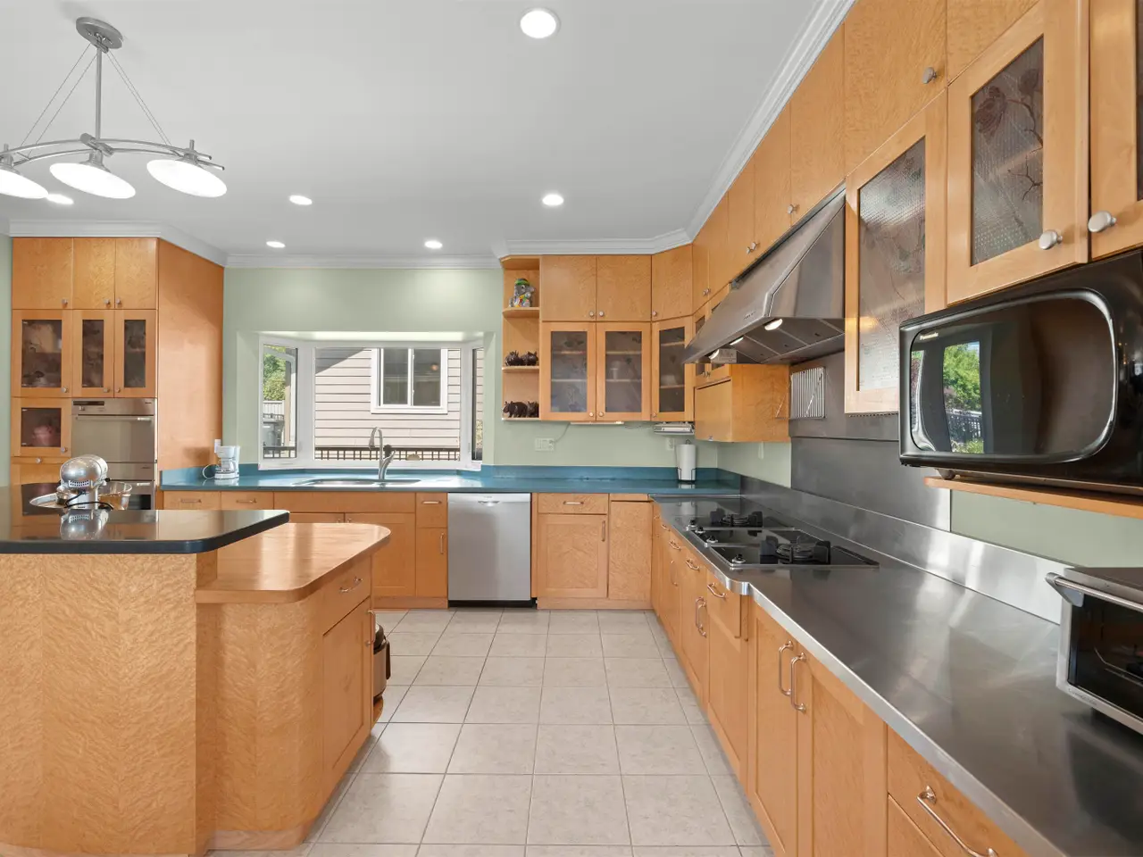 Custom-built home in Deer Lake Place! This spacious 4,733 sq ft, 5 bed, 7 bath home features Hardie board exterior and cedar shingle roof and sits on a 66 X 125 Ft (8,250 sq ft) lot with views of Deer Lake Park & Metrotown from the upper level. Ideal for growing families with a loft above, rec room below and potential 1-bed rental suite with separate basement entrance. Gourmet kitchen with Miele appliances, 2 wok gas burners with electric cooktop, secondary bar sink and walk-in pantry. Radiant in-floor heat throughout the home with 3 gas fireplaces. Luxurious primary suite above with double vanity, steam shower, large bath tub & laundry chute. North-facing fenced yard and double garage. Walk to Deer Lake, Gilpin Elementary, Deer Lake School & Burnaby Central. Open House Sun Sep 14 2-4pm.