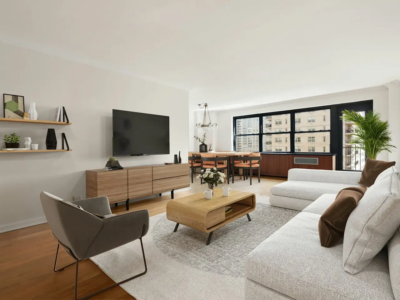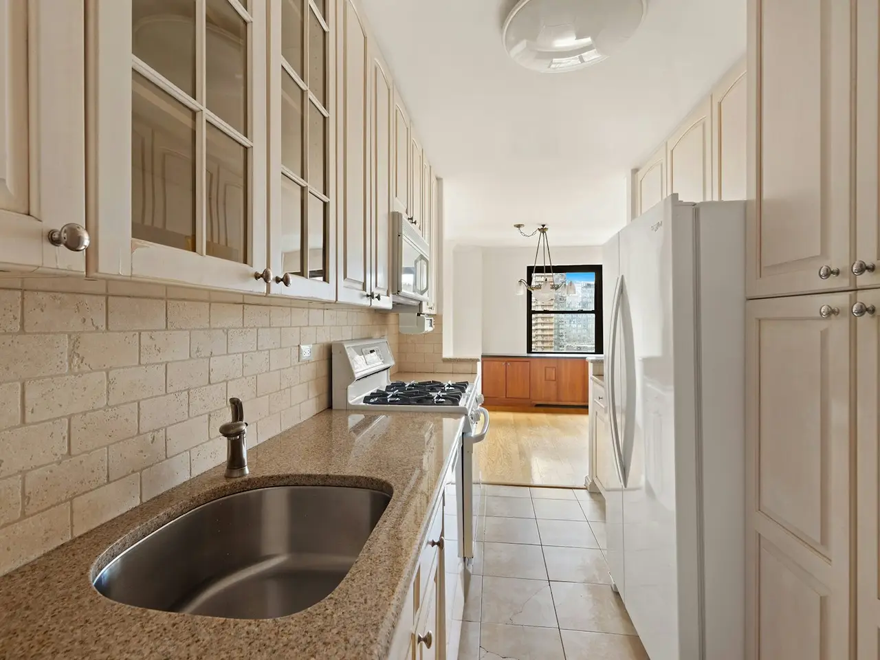 High Above It All at Lincoln Towers - Spacious 2BR/2BA with Private Balcony & Panoramic Views Perched on the 17th floor of 165 West End Avenue, this light-filled, corner two-bedroom, two-bath home offers sweeping eastern views over the city skyline by day and a twinkling city landscape by night. The expansive 26-foot living and dining space is flooded with natural light from four oversized east-facing windows. A sunny over sized gracious living area with a separate large windowed dining alcove which is perfect for entertaining. A large private balcony-stretching almost 27 feet-invites you to start your mornings with coffee above the treetops or unwind in the evening as the city comes to life. The updated galley kitchen features stylish cabinetry, generous counter space, and a large pantry, with room to expand into a chef's dream. A tucked-away workspace and abundant storage-four closets including a massive walk-in-add comfort and convenience to daily life. The king-sized primary suite is a true retreat, offering dual exposures, a full wall of custom closets, and a renovated, windowed en-suite bath. The second bedroom is equally generous, with southern light, a large walk-in closet, and flexibility to serve as a guest room, second bedroom or home office. Additional highlights include hardwood floors, custom built-ins with under-window storage, and tasteful updates throughout. Oversized windows bathe every room in natural light, creating an inviting and uplifting atmosphere. Residents of this full-service co-op enjoy a beautifully renovated lobby, 24-hour doorman, live-in superintendent, fitness center, community room, central laundry, on-site dry cleaner, storage (waitlist), bike room (waitlist), and an on-site parking garage. A circular driveway provides convenient pickup and drop-off. 165 West End Avenue is part of the desirable Lincoln Towers complex, with direct access to a private park featuring landscaped gardens, picnic areas, playgrounds, basketball and pickleball courts, and a ping pong table. Located in the heart of the Upper West Side, you're moments from Lincoln Center, Riverside and Central Parks, Fairway, Trader Joe's, and the Time Warner Center. Enjoy world-class dining at nearby favorites like Caf Luxembourg, Boulud Sud, Per Se, The Smith, and Harry's Table. Excellent transportation options include the M66, M57, and M72 buses, and the 1, 2, 3 subway lines close by. Monthly maintenance includes all utilities (gas, electric, heat, and water), offering true peace of mind and exceptional value. Assessment in place through May 2027 for 564.59 monthly. Private parking space available for an additional $150,000 with a monthly maintenance of $203.00.