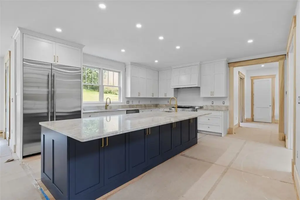 A spectacular new construction home in the Fox Chapel School District on nearly 1 acre. This 5BR, 4.5BA home offers timeless design, exceptional craftsmanship, and luxurious finishes throughout. The heart of the home is a stunning gourmet kitchen featuring shaker-style soft-close cabinetry, gorgeous quartzite countertops, stainless steel appliances, Jennair Pro-Style Range with chrome-infused griddle, built-in under counter beverage center, and an extra-large island with second sink and overhang for barstools. Red oak hardwood floors flow throughout. The expansive owner's suite features a spa-inspired bath with heated floors, dual rain showers, freestanding soaking tub, dual vanities, and a custom walk-in closet system. A spacious 3-car garage, premium trim work, and custom staircase complete the home. Paint, trim, decking, and railings are in progress. Outdoor space offers privacy, room to entertain, and future pool potential. Minutes to shops, dining, and parks!