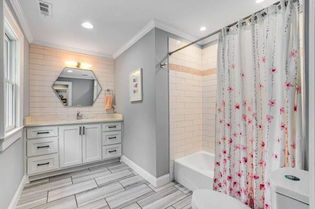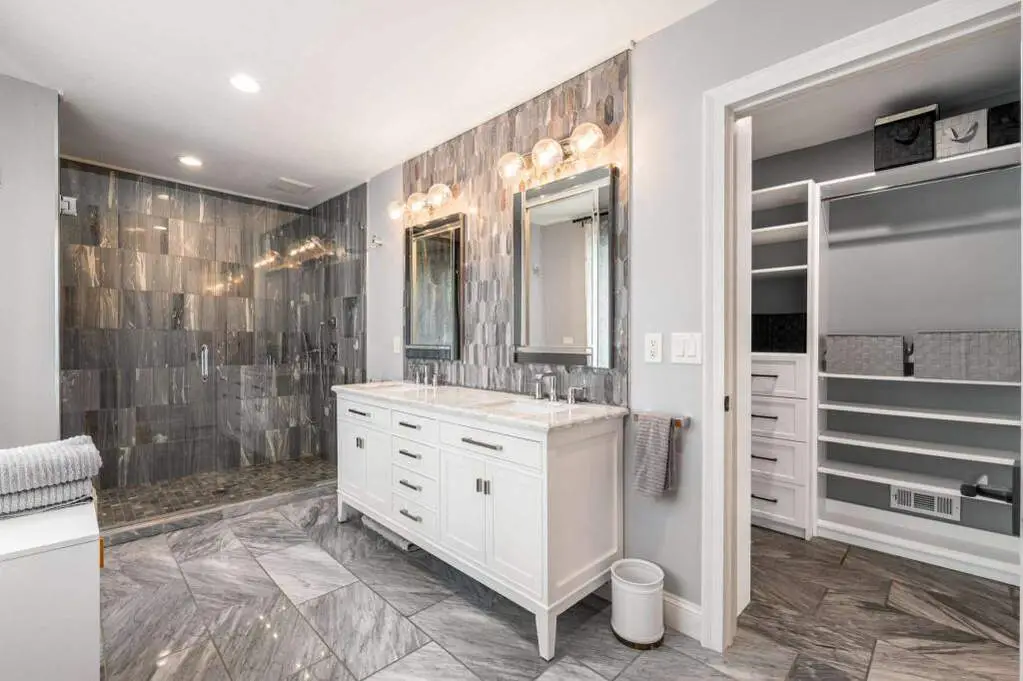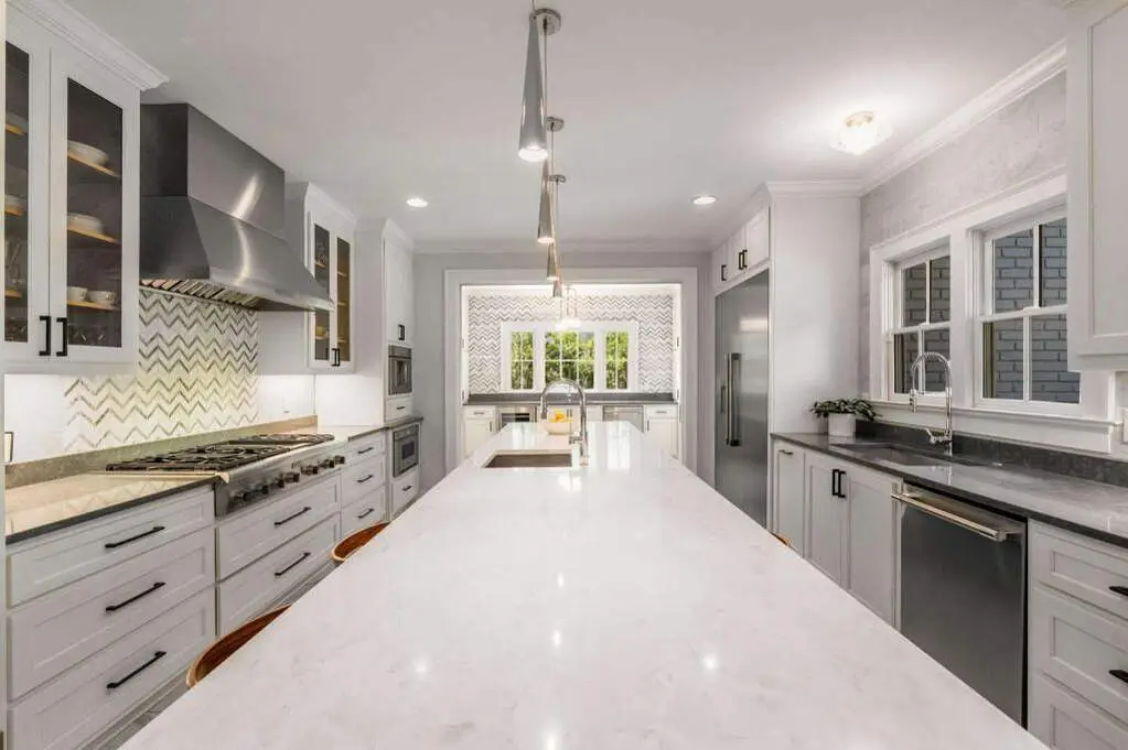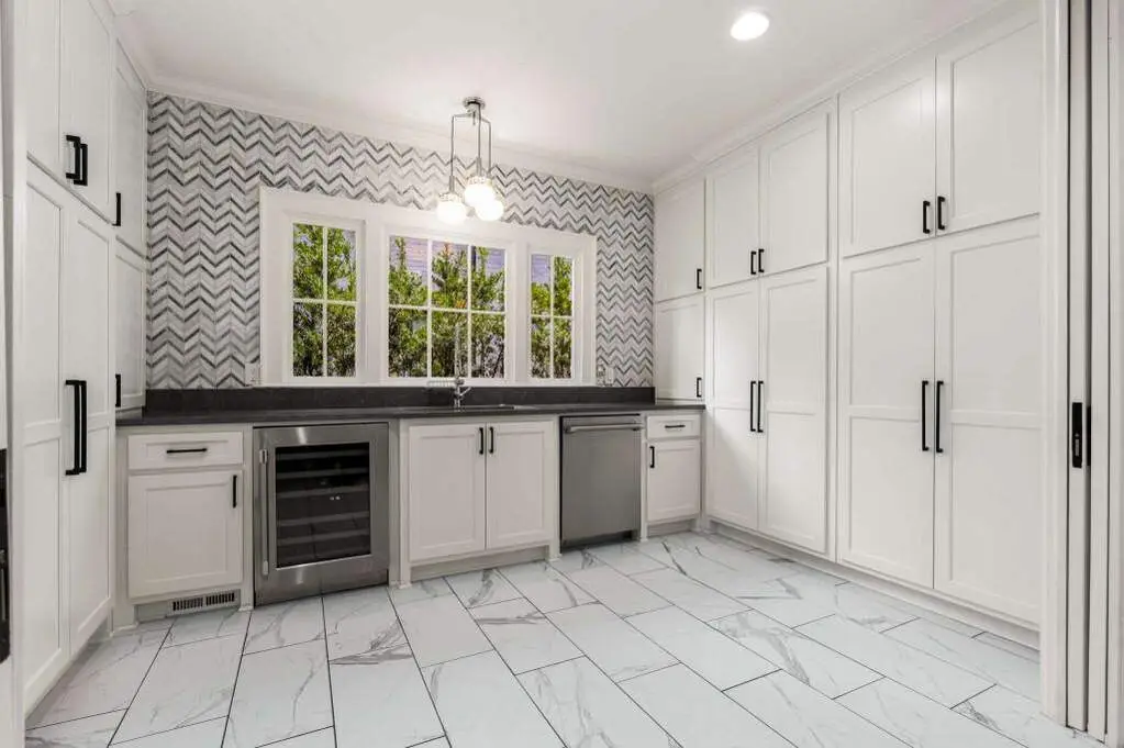 • Custom white cabinetry