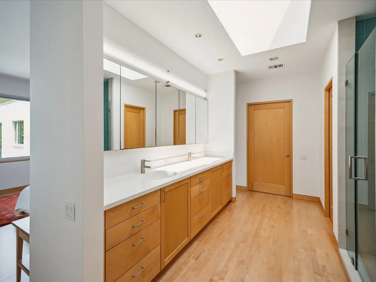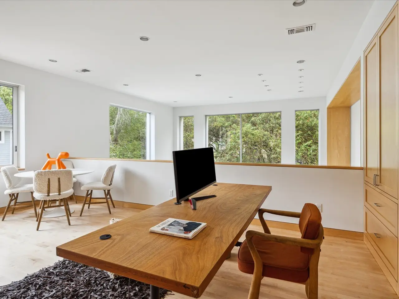 Tree top views from this lovely soft contemporary in Southampton Place. Three car garage/workshop, elevator, open living and dining, and courtyard with fountain and mature trees. Close proximity to Rice Village, Rice University and the Texas Medical Center. Well respected custom builder’s own home, this clean contemporary with extensive architectural millwork and a carefully designed floor plan, provides an easy living low-maintenance lifestyle. Sub-Zero refrigerator and freezer, wine refrigerator, Wolf range, tankless water heater, steam shower and climate-controlled storage closets in the garage for gear. Also featuring, two story ceilings, expansive windows that open to a courtyard, concrete floors throughout first floor and maple hardwoods on 2nd floor. The large study/project room has an amazing view for working at home. This home is one of kind and an exceptional offering. Per Seller