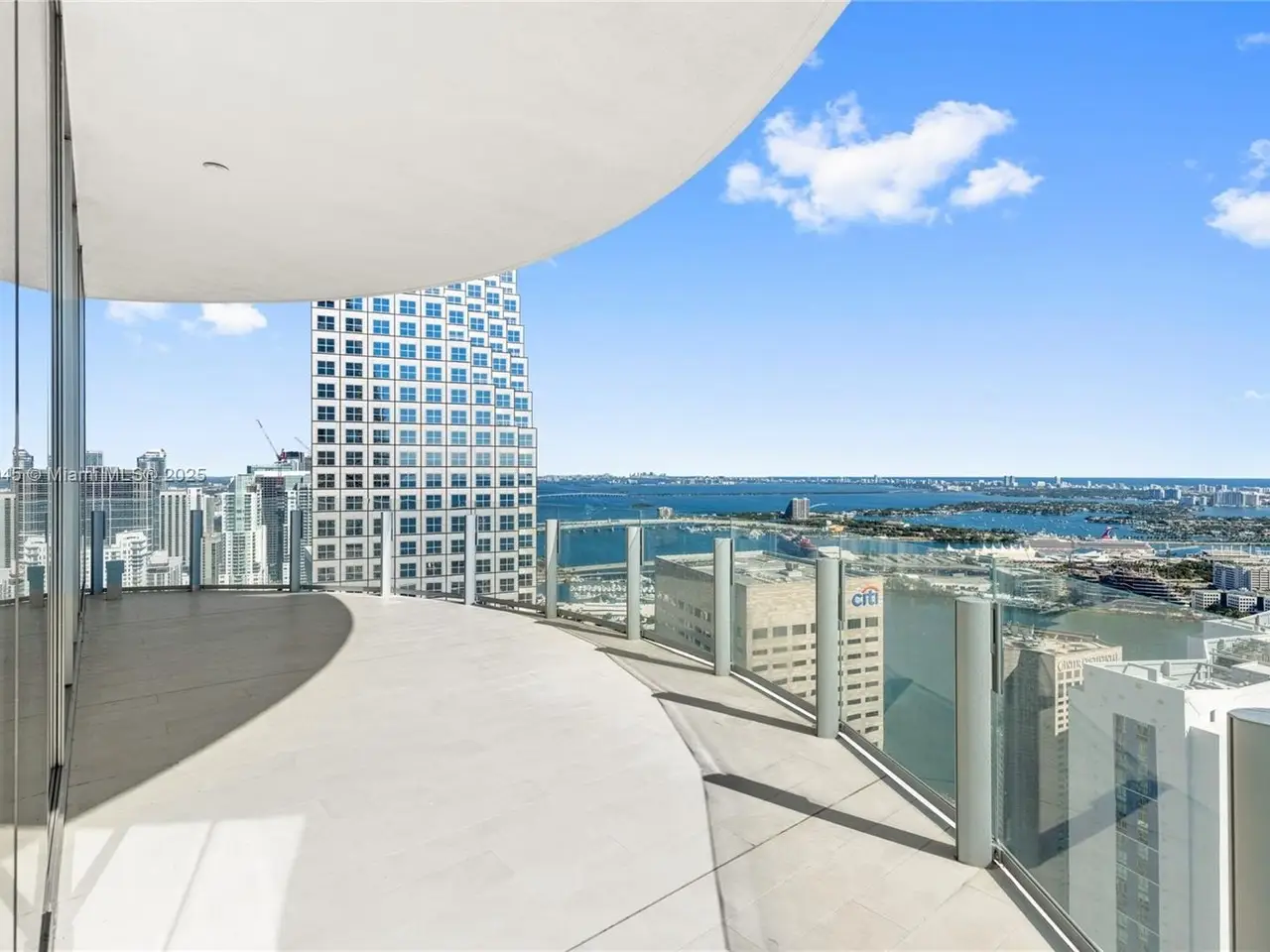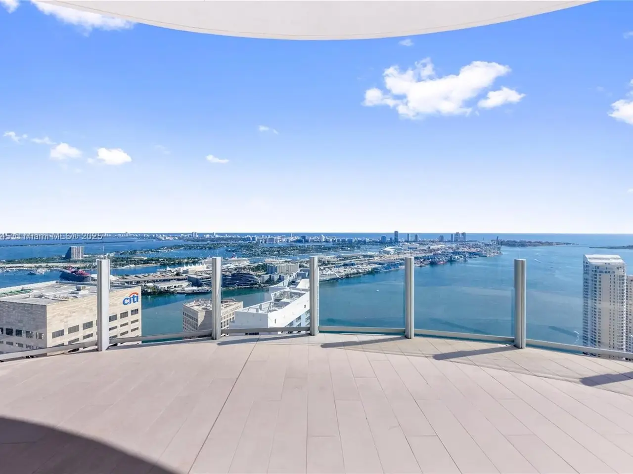 360° views of Miami skyline, Biscayne Bay, and ocean