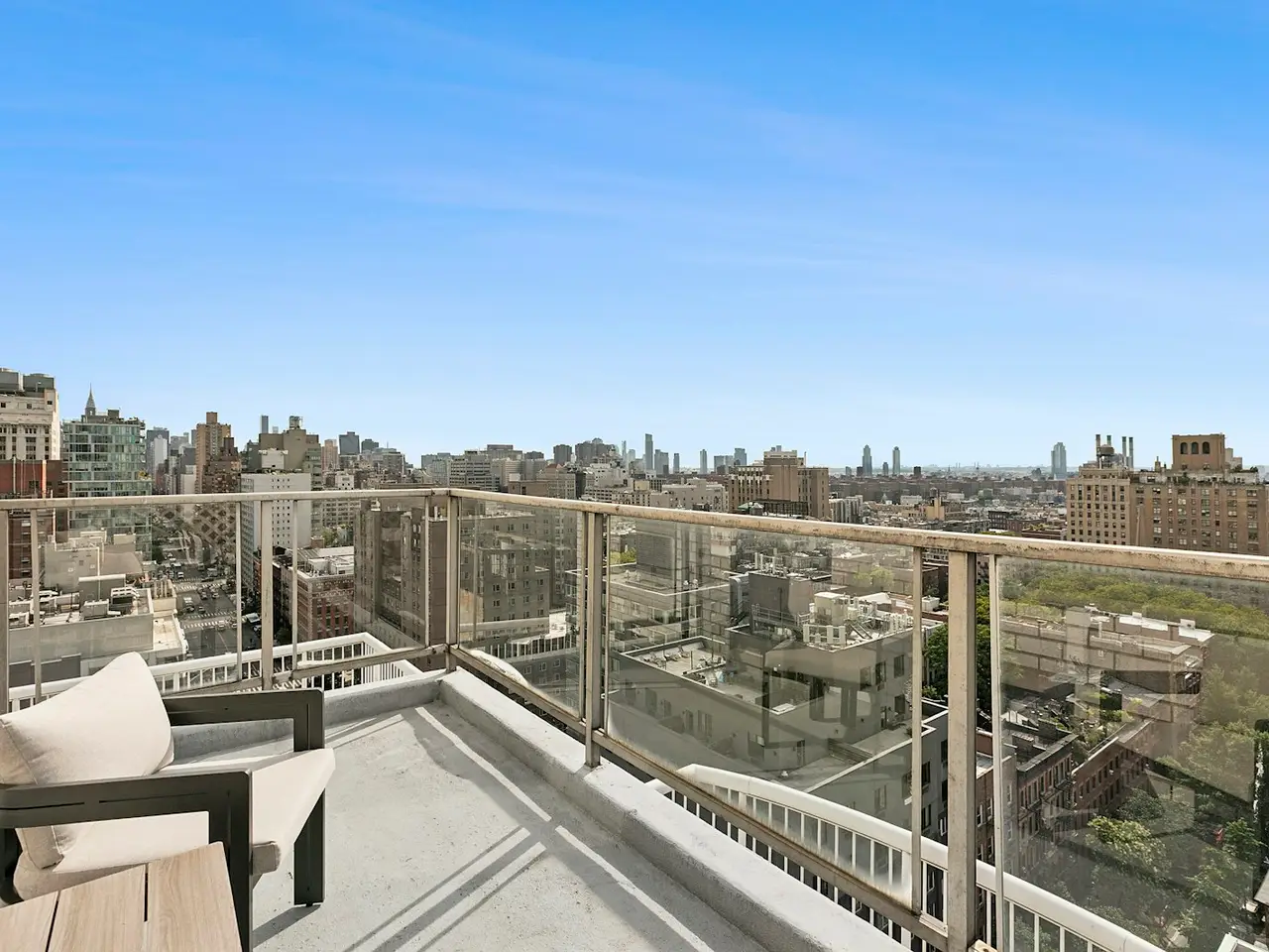 Light, Views, and Outdoor Space in the Heart of Downtown Soaring over the cityscape in a coveted corner line at the full-service St. Mark, this bright and airy Two bedroom, Two bathroom home offers an exceptional layout, two private balconies and sweeping open views that stretch for miles. With exposures spanning 180 degrees, natural light floods the space throughout the day as you enter the sprawling living area featuring a grand seating area and dedicated dining area adjacent to the kitchen. The expansive windowed open kitchen is the heart of the home, completely re-imagined creating an inviting space for casual meals and gathering on the corner breakfast bar countertop with stainless steel appliances and pantry. Savor the al fresco lifestyle and ever-changing skyline colors on the first balcony accessed off the living room for dazzling outdoor dining and relaxing. The king-sized primary suite is conveniently private from the living space, highlighted by its own outdoor terrace showcasing stunning nighttime views of Manhattan's landmark buildings. The bedroom is complete with a plethora of closet space along the wall and an en suite bath with stone tile, pedestal sink and soaking tub to add to the retreat-like feel. A second bedroom -flexible in use and currently open to the living area configured as an oversized one bedroom -features northern exposures, a large closet and in-unit washer/dryer, a rare and grandfathered perk in this building. Nearby, a renovated full bathroom with walk-in shower doubles as a stylish guest bath which can function with en suite access to suite your needs. Seven closets and custom recessed lighting combined with a generous and versatile layout await in this high floor special home. Located in The St. Mark, a premier full-service pet-friendly building in prime central village, residents enjoy access to a host of amenities, including a playroom, bicycle storage, central laundry room, private storage, resident manager and a parking garage with direct building access. This coveted location is at the heart of it all - Wegmans, Whole Foods, Trader Joe's and Westside Market, local and acclaimed restaurants, Astor Place, Washington Square Park, Union Square and easy transit (4, 5, 6, N, Q, R, W, L). Capital Assessment of $260 per month until December 2025. Home is currently configured as a large One bedroom. Alternative floor plan has been provided for illustrative purposes only and has not been reviewed nor approved by the coop board. Alterations are subject to approval and applicable rules, regulations and approval by the coop board and New York City Department of Buildings. All measurements and square footages are approximate and all information should be confirmed by customer.