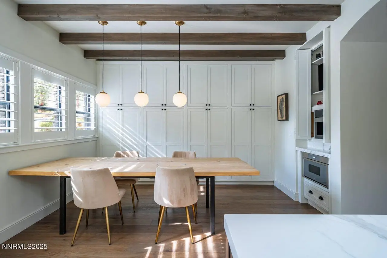 Modern Living with Timeless Tahoe Charm Nestled within the private, gated, and waterfront community of Uppaway Estates in Glenbrook, Nevada, this fully updated, move-in-ready residence offers the ideal blend of modern luxury and classic mountain style. Built in 1992 and inspired by the historic Fleischmann estate and gatehouse, this rare Lake Tahoe gem combines craftsmanship, comfort, and convenience in one of the region's most exclusive enclaves. Positioned on Tahoe's sunny east shore, Uppaway Estates features only 30 homes and provides residents with exceptional amenities - including a private tennis and pickleball court, a lakeside park with fire pit and outdoor grilling and dining areas, a community pier with boat moorings, and storage for kayaks and paddleboards. It's the perfect setting to enjoy Tahoe's panoramic views and unforgettable Sierra sunsets with family and friends. This carefully renovated five-bedroom, four-bath home showcases vaulted ceilings, an open and airy floor plan, southern exposure and expansive windows that fill each room with natural light while framing the surrounding pines and views o Shakespeare Peak. The main residence includes four spacious bedrooms and three full baths, while a large, detached suite with full bath above the garage offers a private guest retreat or ideal home office. The primary suite features vaulted ceilings, dual closets, a tandem shower, jetted soaking tub, separate water closet, and serene forest views. Designed for both entertaining and everyday living, the professional-grade kitchen includes Thermador appliances: built-in refrigerator, double ovens, five-burner gas range, dishwasher, microwave, and warming drawer. A built-in Miele espresso machine enhances your morning routine, while a centrally located wet bar with beverage and wine fridge adds a perfect touch for entertaining. Enjoy Tahoe's outdoor lifestyle from the spacious paver patio complete with a granite rock gas fire feature and spa tub nestled beneath towering Jeffrey pines - ideal for relaxing under the stars. Additional highlights include a heated driveway, whole-home generator, air conditioning in both the main home and detached suite, and an electric lift in the high-ceiling two-car garage - perfect for a golf cart or seasonal storage. Discover the perfect balance of luxury, comfort, and lakeside tranquility in one of Lake Tahoe's most coveted communities - just 20 minutes from Heavenly Valley, Carson City shopping, and Incline Village.