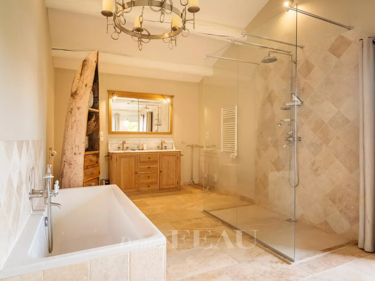 This superb 18th century “bastide” located just a few minutes from l’Isle-sur-la-Sorgue has been restored throughout highlighting period charm and authenticity with contemporary comfort. About 550 sqm of bright living space, it includes a spacious living/reception room with a fireplace, a dining room, a modern kitchen, and six suites each with a bath or shower room including a master suite with an adjacent study. The annexes include a self-contained gite with a living room, a kitchen, a shower room and a further multi-purpose room, as well as a studio apartment with a compact sitting room and a mezzanine bedroom. The perfectly maintained 5000 sqm of landscaped grounds feature majestic plane trees and rose bushes. With a 10 x 5 metre overflow swimming pool, an elegant pool house and several shady terraces. A delightful property near the shops and the picturesque Luberon villlages.