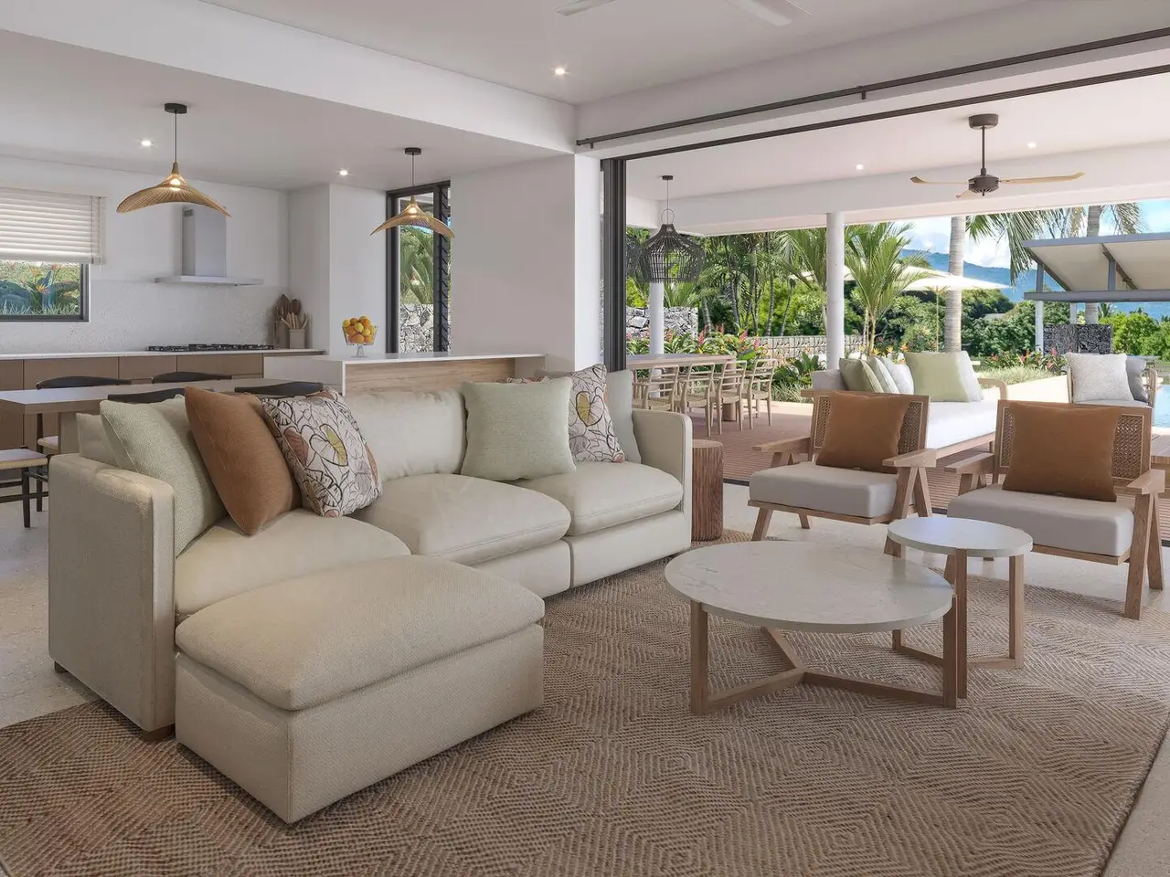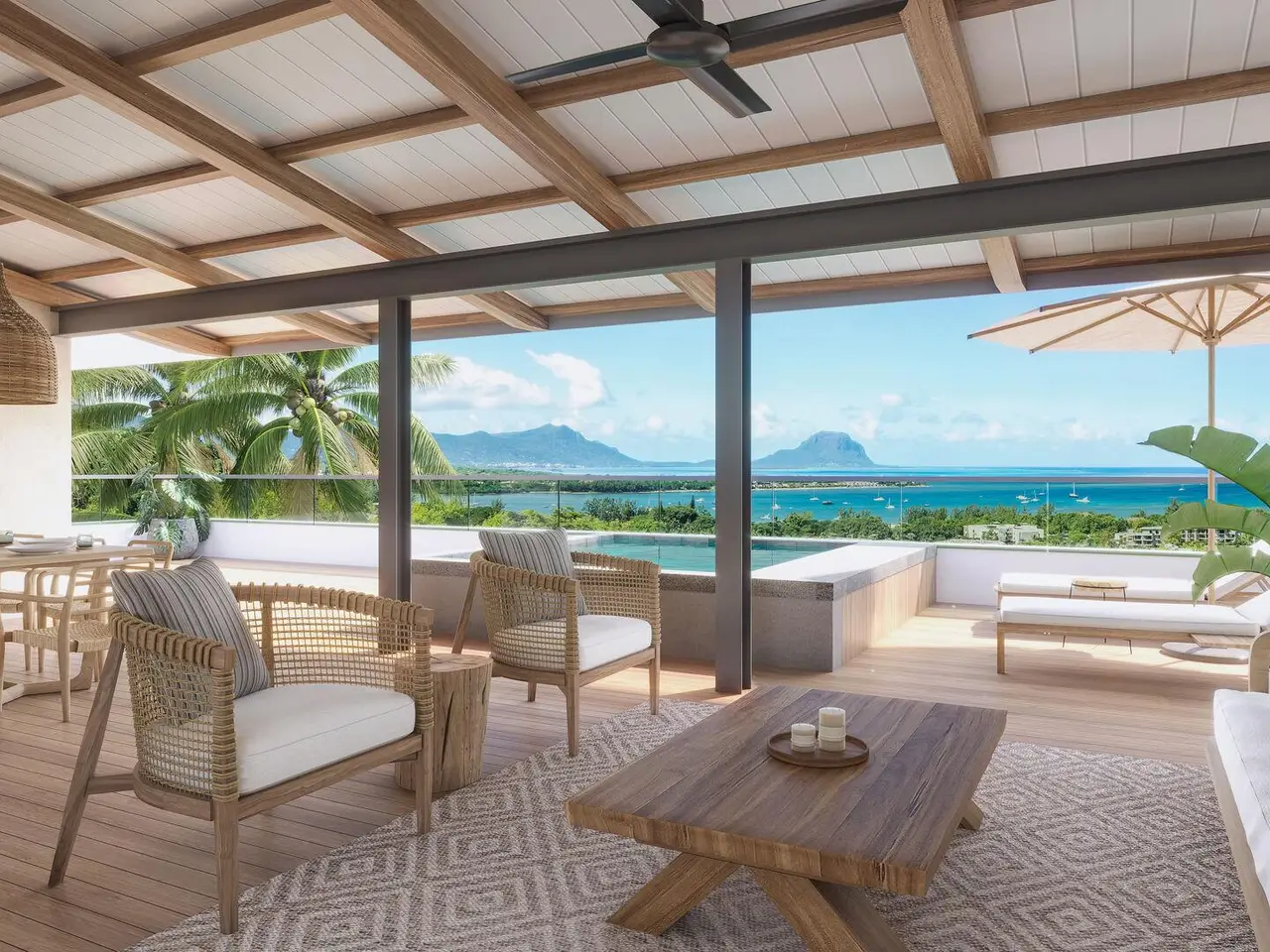 Discover Blue Vista, an exclusive address nestled between the lagoon and the western mountains, in the heart of Black River Bay. This small fishing village, rich in history, offers an idyllic living environment, perfectly located in the most sought-after area of Black River and Tamarin. Blue Vista enjoys a privileged location at the top of Plantation Marguery, with panoramic views of the ocean and the majestic Le Morne mountain. This part of the island has something for everyone: whale and dolphin diving, kitesurfing, sailing, hiking and more. Golf enthusiasts will love the five courses in the immediate vicinity, with the option of joining an 18-hole golf course just a five-minute drive from the development. The Blue Vista residences, perfectly integrated into their natural surroundings, offer an exceptional living environment where luxury and tranquillity meet. At the heart of Plantation Marguery, the homes benefit from large windows that flood the spaces with natural light and offer breathtaking views of the surrounding landscape. Every architectural detail has been designed to harmonise modern comfort with the authenticity of the island. Blue Vista is located in the immediate vicinity of the Ruisseau Créole shopping centre, which offers a variety of shops, restaurants and services to meet all your daily needs. Whether you want to go shopping, enjoy a meal in a quality restaurant, or simply enjoy an afternoon of relaxation, everything is within easy reach. Blue Vista's outdoor spaces are designed to provide a haven where residents can relax and enjoy the natural beauty of the island. Landscaped gardens with local plants create a soothing and charming atmosphere. The private swimming pools, with their green and blue highlights, add a touch of luxury and serenity to each residence. Living at Blue Vista means choosing an exceptional lifestyle in secure surroundings, where every day is an invitation to escape and relax. The open spaces, natural light and spectacular views make this a luxury retreat for the privileged few. Blue Vista is much more than a residence, it's a unique living experience, where modern comforts meet the natural beauty and authenticity of the island. Come and discover this haven of peace and let yourself be seduced by the elegance and tranquillity of this exceptional place. APARTMENTS : The light-filled flats will amaze you with their clean lines. Each of the private pools reflects shades of green and the blue of the ocean. PENTHOUSES The two penthouses open onto a wider panorama, each with a discreet, elegant pool. They exude a warm, friendly atmosphere, ideal for evenings out with family and friends. VILLAS Boasting breathtaking views, the 4 villas offer residents an idyllic living environment, blending harmoniously with the surroundings and exuding an atmosphere that is both relaxing and peaceful. Blue Vista, where luxury meets nature to create an exceptional and unforgettable living environment.