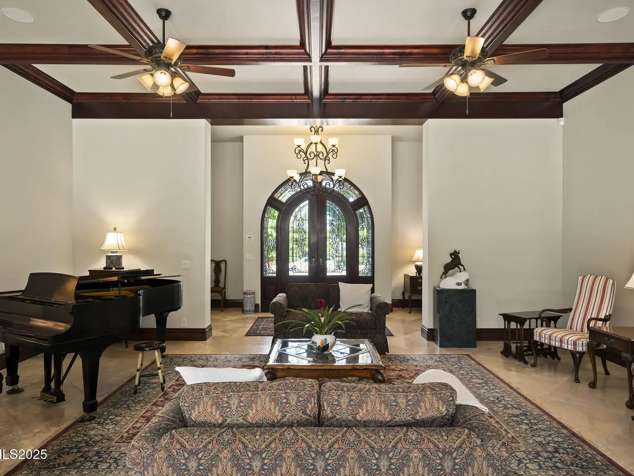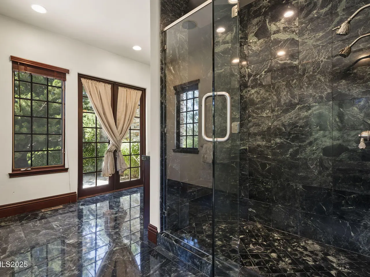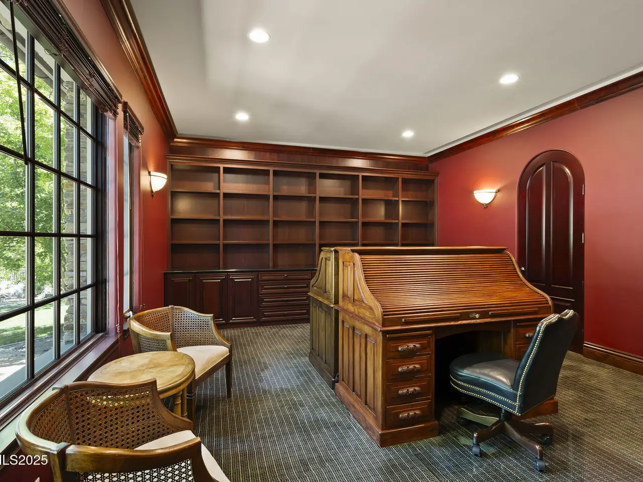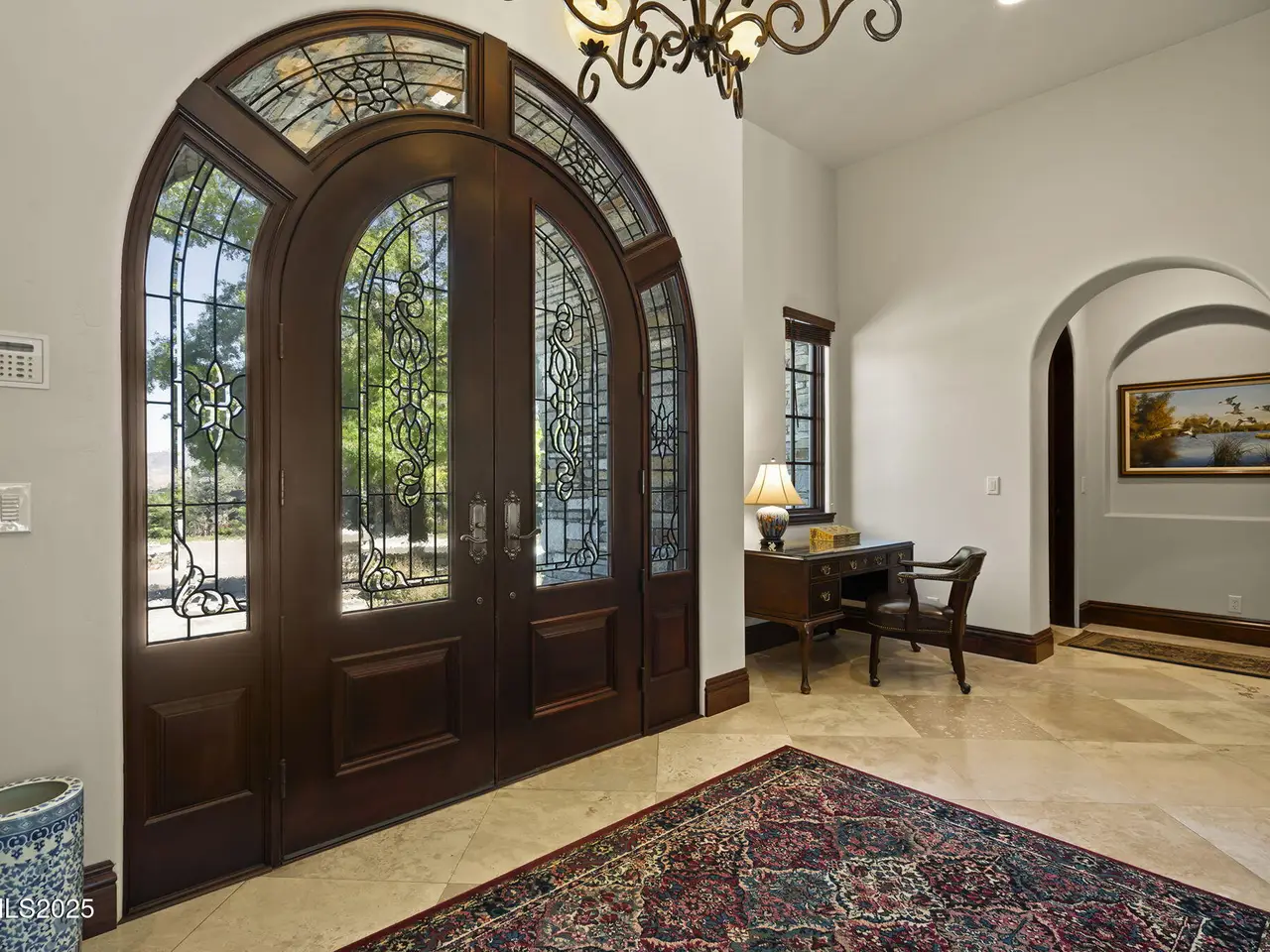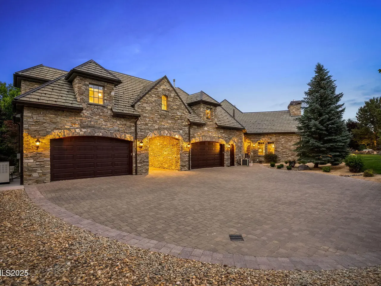 Rare and stunning property on 2.47 acres in coveted SW Suburban Reno Lakeside/Holcomb area. Down a long driveway and through the private gated entry, you will immediately be impressed by the mature landscaping and stunning exterior of this exquisite country manor with full hand-laid stone exterior. Wonderful curb appeal with beautiful entry, circular drive with water feature, and carriage breezeway between two 2-car garages. Additionally, there is a detached fully insulated and heated garage/car barn with soaring 18' ceilings, 3 doors including RV door. Steamboat ditch irrigation rights, domestic well plus AG water rights. The comfortable yet elegant floorplan features 4 ensuite bedrooms and 3 separate half baths. Large office with beautiful built-ins and the primary suite located on the main level feature a fireplace, luxurious bath, and huge walk in closet. The magnificent gourmet kitchen is open to the family room featuring 20 foot ceilings and extraordinary floor to ceiling stone fireplace and hearth. The grand formal dining room and separate living room with wall of windows overlook the grounds. Upstairs has 3 large bedrooms with private baths, a 1/2 bath, and beautiful landing open to the family room below and leading to expansive game room with walk-in wet bar, plenty of room for seating, dining, or extra office space! Other features include 8' solid Mahogany doors, water processing system, Control 4 lighting and Mesh Network Wi-Fi system. New insulated steel garage doors on attached garages, Generac whole house generator, extensive lighting and much more! Please see features list for more. Very close to all amenities .and airport yet very secluded country lifestyle Must see this extremely special home, location, and property!