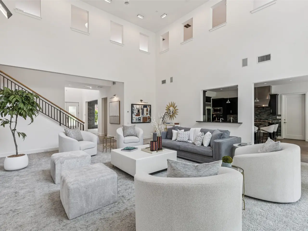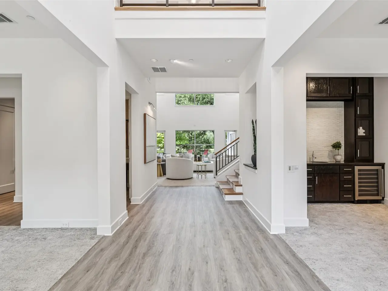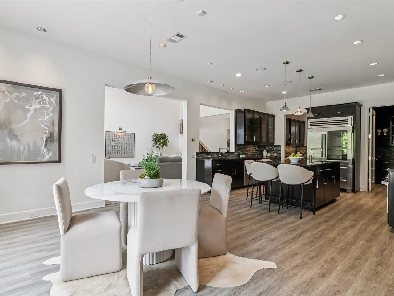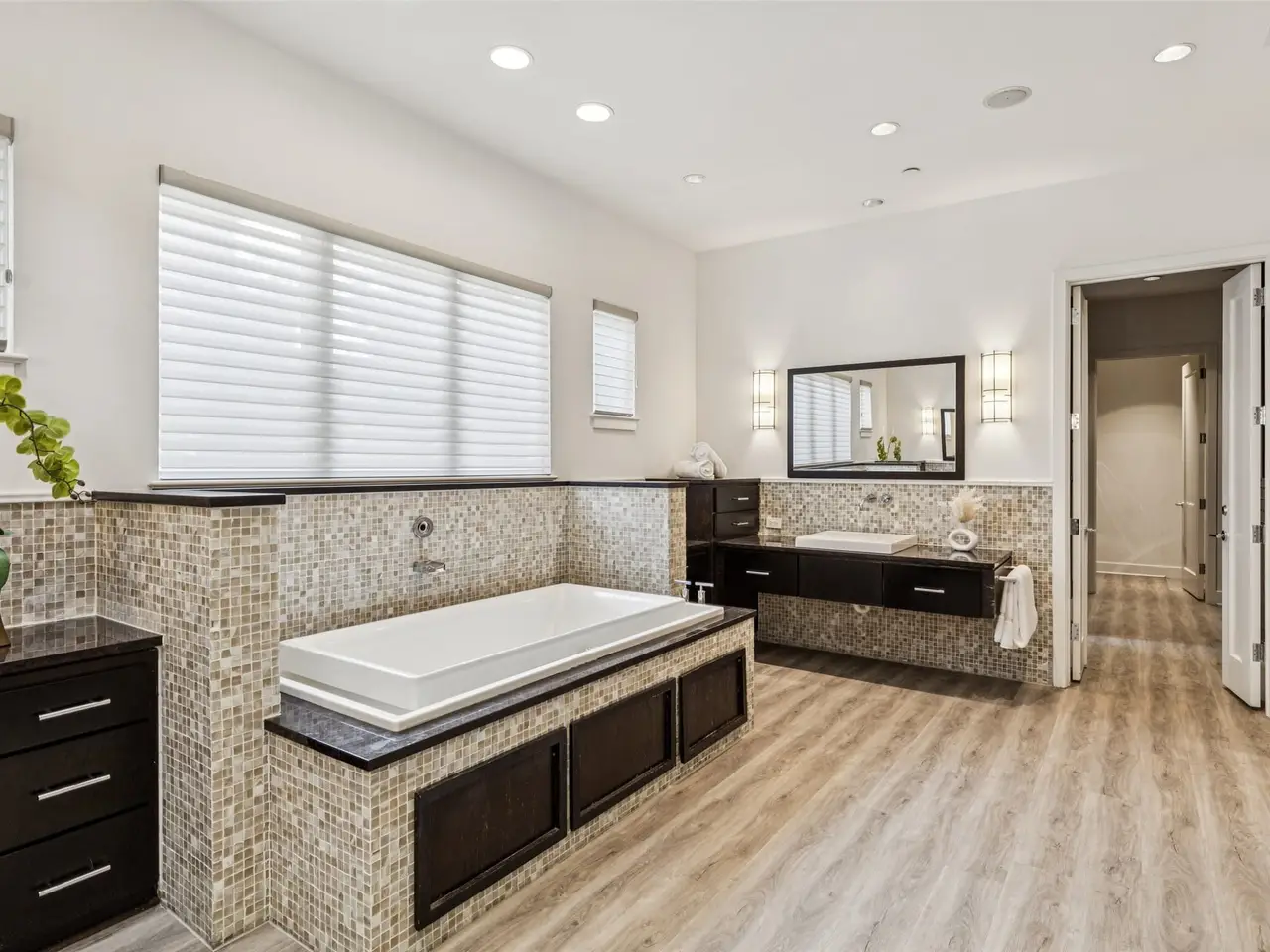 Perfectly positioned on the 16th hole of Bent Tree Country Club, this exceptional custom home offers over 7,100 square feet of luxury living on a 0.379-acre golf course lot. A circle drive, mature trees, lush landscaping, and two water features create a striking first impression, while the interior showcases thoughtful design, refined finishes, and modern functionality. The expansive layout includes five living areas, four bedrooms with en suite baths and custom walk-in closets, and three additional half baths. The gourmet kitchen is a chefs dream with Sub-Zero refrigerator freezers, Thermador gas range with grill, griddle, and double ovens, double Thermador dishwashers, a Miele built-in coffee system, oversized island, custom cabinets, walk-in pantry, and built-in desk. Entertaining is effortless with three wet bars, a 700-bottle climate-controlled wine room, media room with built-in speakers, and multiple gathering spaces. The luxurious primary suite features a gas fireplace, spa-inspired bathroom with dual vanities, frameless shower, SOK soaking tub, smart bidet, and a boutique-style closet with built-in Viking safe and ironing board. A private laundry room and coffee bar with beverage fridge offer added convenience. Hunter Douglas automatic window treatments are found throughout the home. Enjoy panoramic golf course views from the backyard oasis with a sparkling pool, spa, covered patio, and a gourmet outdoor kitchen. Additional highlights include a metal roof with gutters and leaf guards, Lutron lighting, smart home systems including Nest and iAquaLink, Flo by Moen water shutoff, two tankless water heaters, updated HVAC units, fire suppression system, and a spacious three-car garage with built-ins.