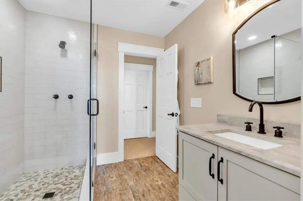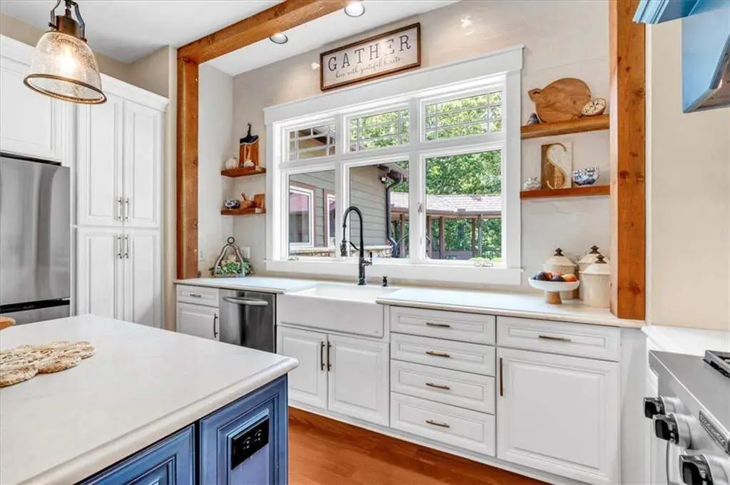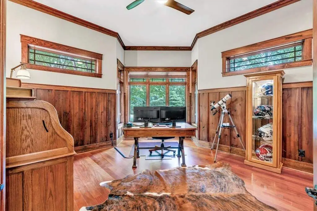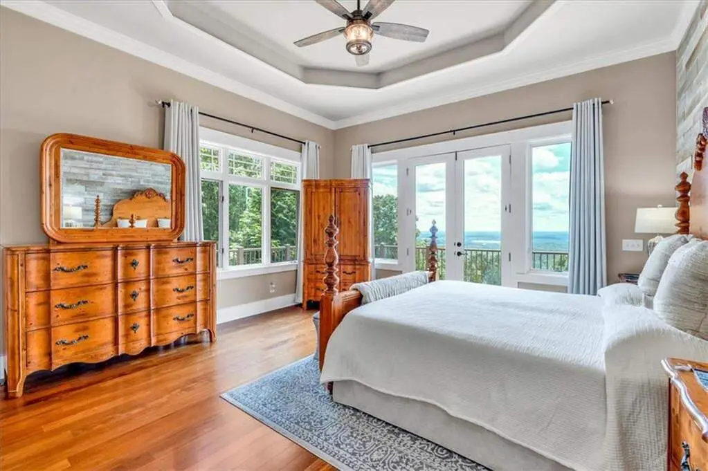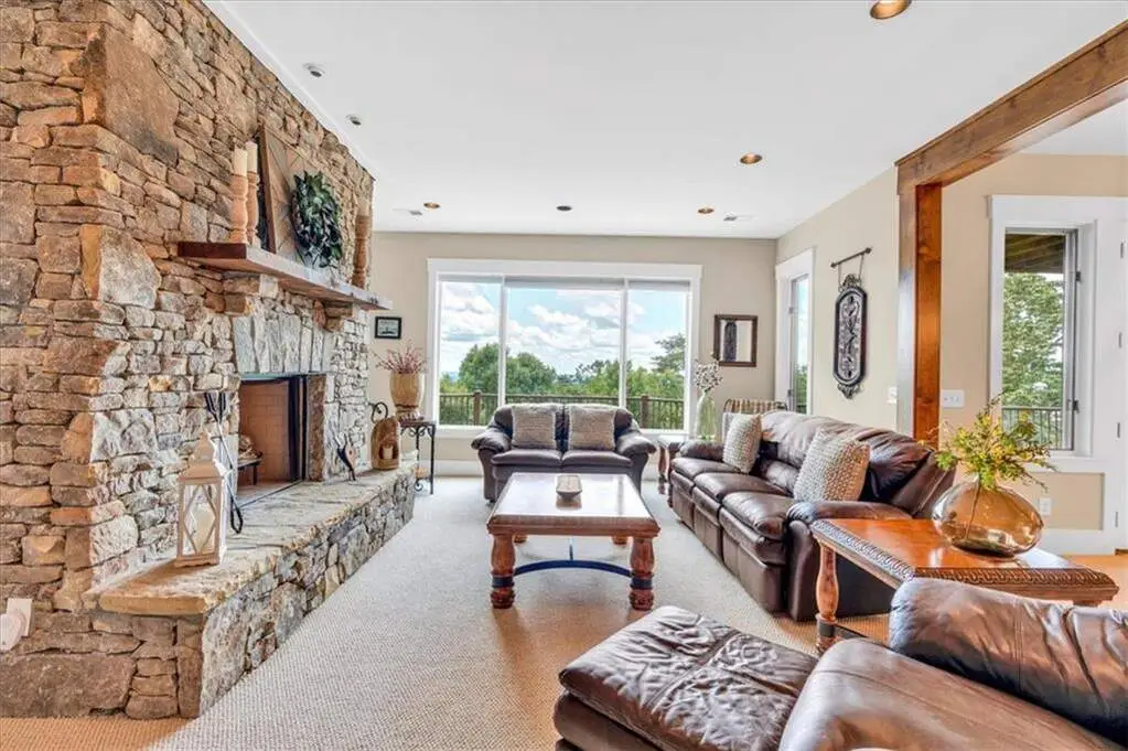 Experience elevated mountain living in this breathtaking Craftsman-style home, offering PANORAMIC views from every level. With THREE expansive decks, each floor seamlessly blends indoor and outdoor living. The updated kitchen is a showstopper with freshly painted cabinetry, new hardware, stunning ceiling-height tile backsplash, wood beams, open shelving, and beautiful new countertops. A custom walk-in pantry provides ample storage with built-in cabinetry and shelving. The kitchen opens to a breakfast area with direct access to a view-filled deck, and a formal dining room featuring elegant coffered ceilings. The MAIN-LEVEL living room is highlighted by a floor-to-ceiling stone fireplace with gas logs and framed by picture windows showcasing the SCENIC backdrop. The owner's suite is also on the main level, offering mountain views and a luxurious en-suite with HEATED tile floors throughout the bathroom and California closet, a freestanding soaking tub with views of the mountains, tile shower, and custom vanity with generous storage. A private office with custom wood-paneled walls and built-ins, plus a mudroom and laundry area off the side entry, complete the main level. UPSTAIRS, a cozy loft offers mountain and seasonal water views. Two guest bedrooms each feature private, updated en-suite baths. The LOWER LEVEL includes a fourth bedroom with views and deck access, an additional updated full bath, a spacious den with a dramatic wall-to-wall stone fireplace, a game room with wet bar, a gym, and a media room that can serve as a fifth bedroom. Two oversized storage rooms provide abundant space for seasonal decor and more. This BEAUTIFULLY landscaped home is part of a DESIRABLE community with access to a pool, tennis courts, and clubhouse-perfect for those seeking LUXURY, COMFORT, and VIEWS at every turn-and it's less than 5 minutes from I-75 and approximately 10 minutes to the Park Marina, Allatoona Beach, Lakepoint Station, and Red Top Mountain State Park. The home is also equipped with a whole-house generator, providing peace of mind during power outages. DON'T MISS your chance to tour this beautifully remodeled home-featuring stunning updates throughout, including the kitchen, bathrooms, closets, mudroom, shiplap walls, and so much more. Come see it for yourself and fall in love with all the fresh, modern touches! (The seller also has a boat with an assigned slip at Park Marina available for purchase separately. This could be an incredible added bonus to complement the home. Additional details are available upon request)